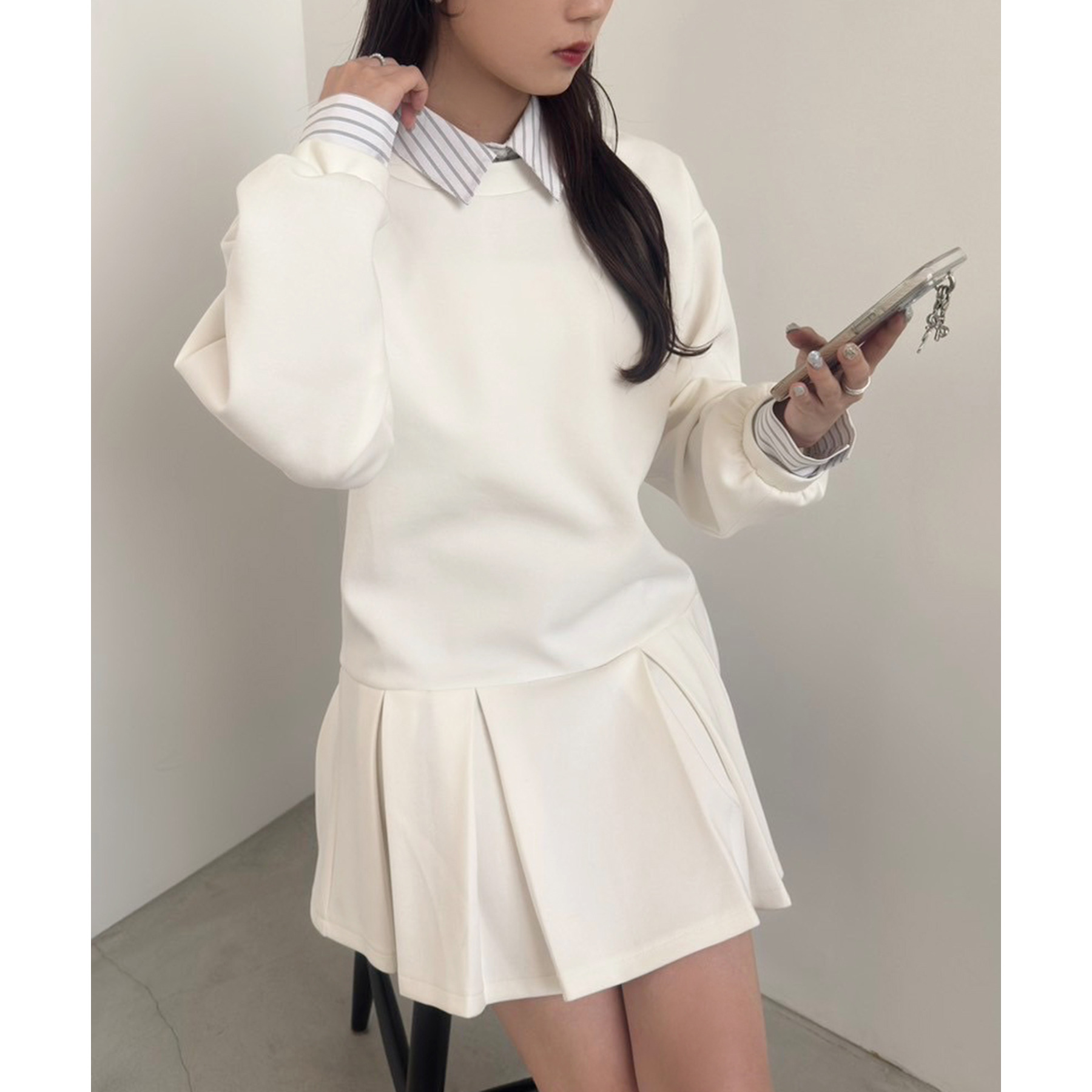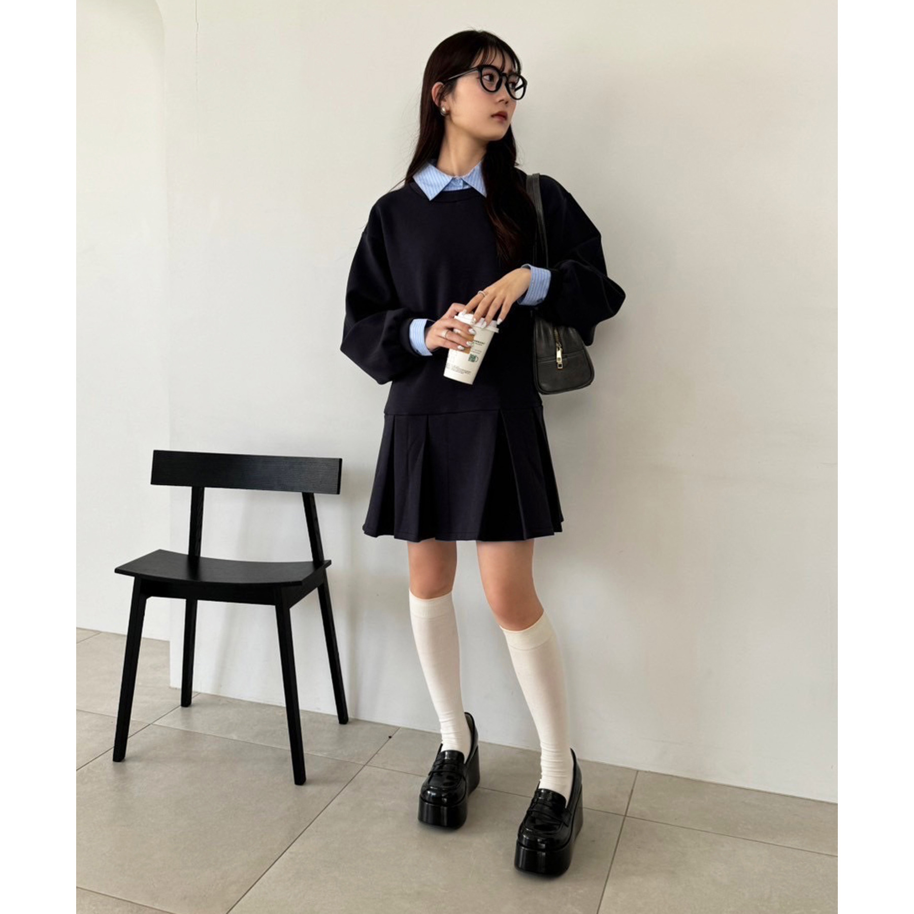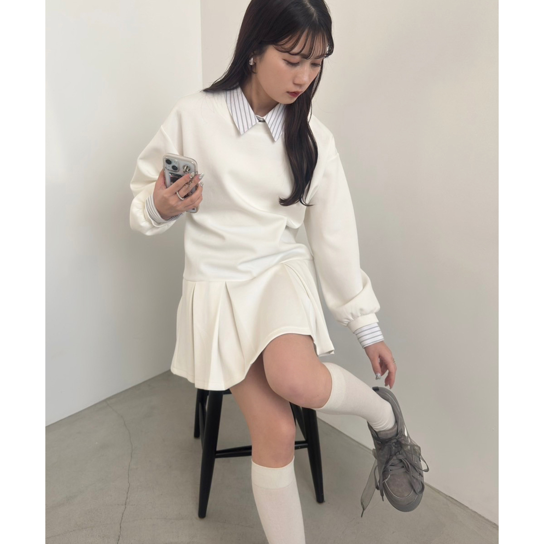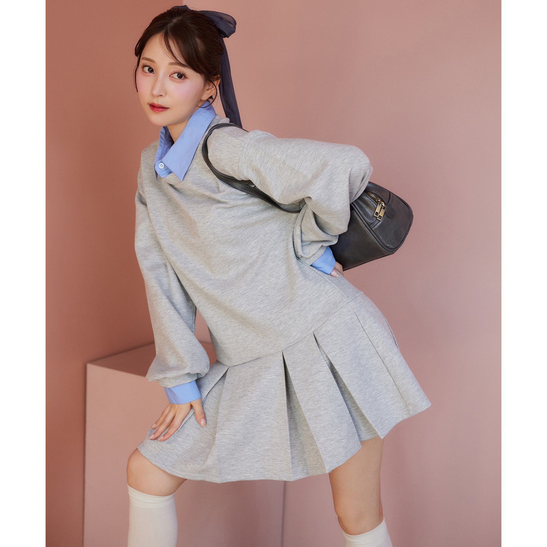 ビッグスウェットとシャツをレイヤードしたようなデザインのワンピース。