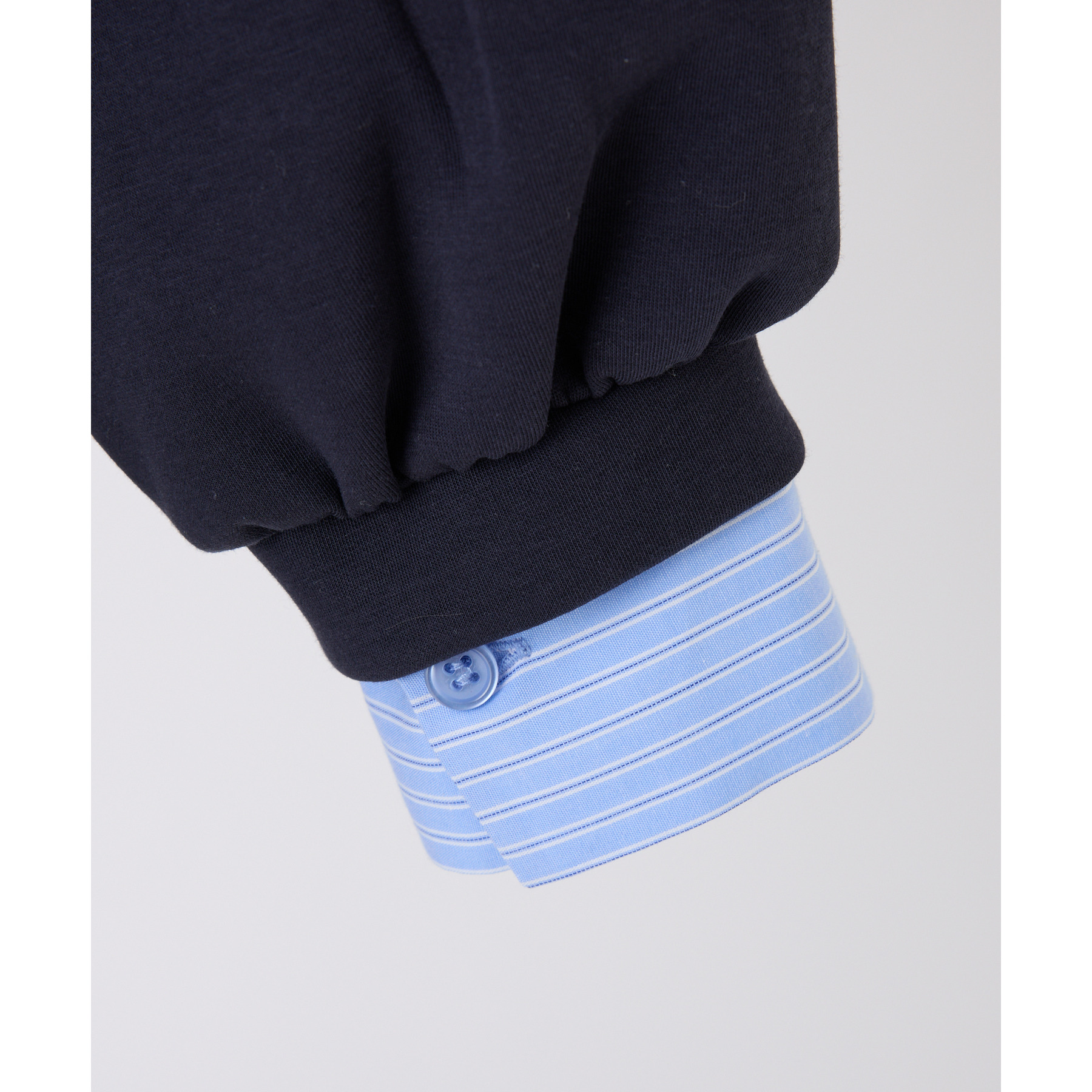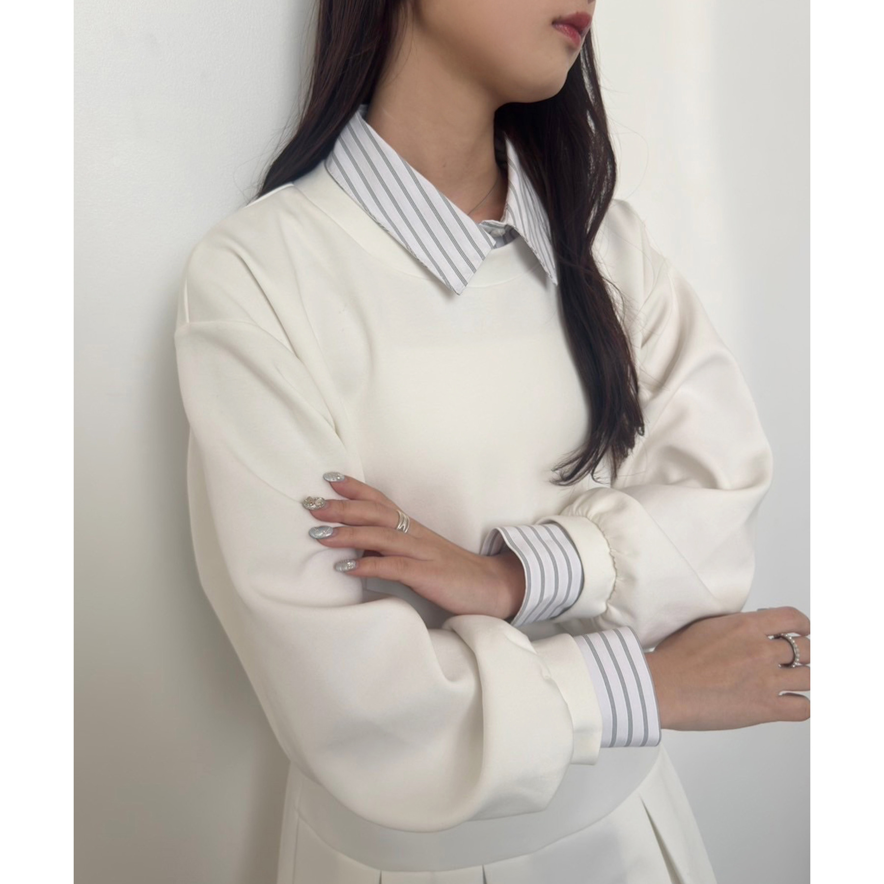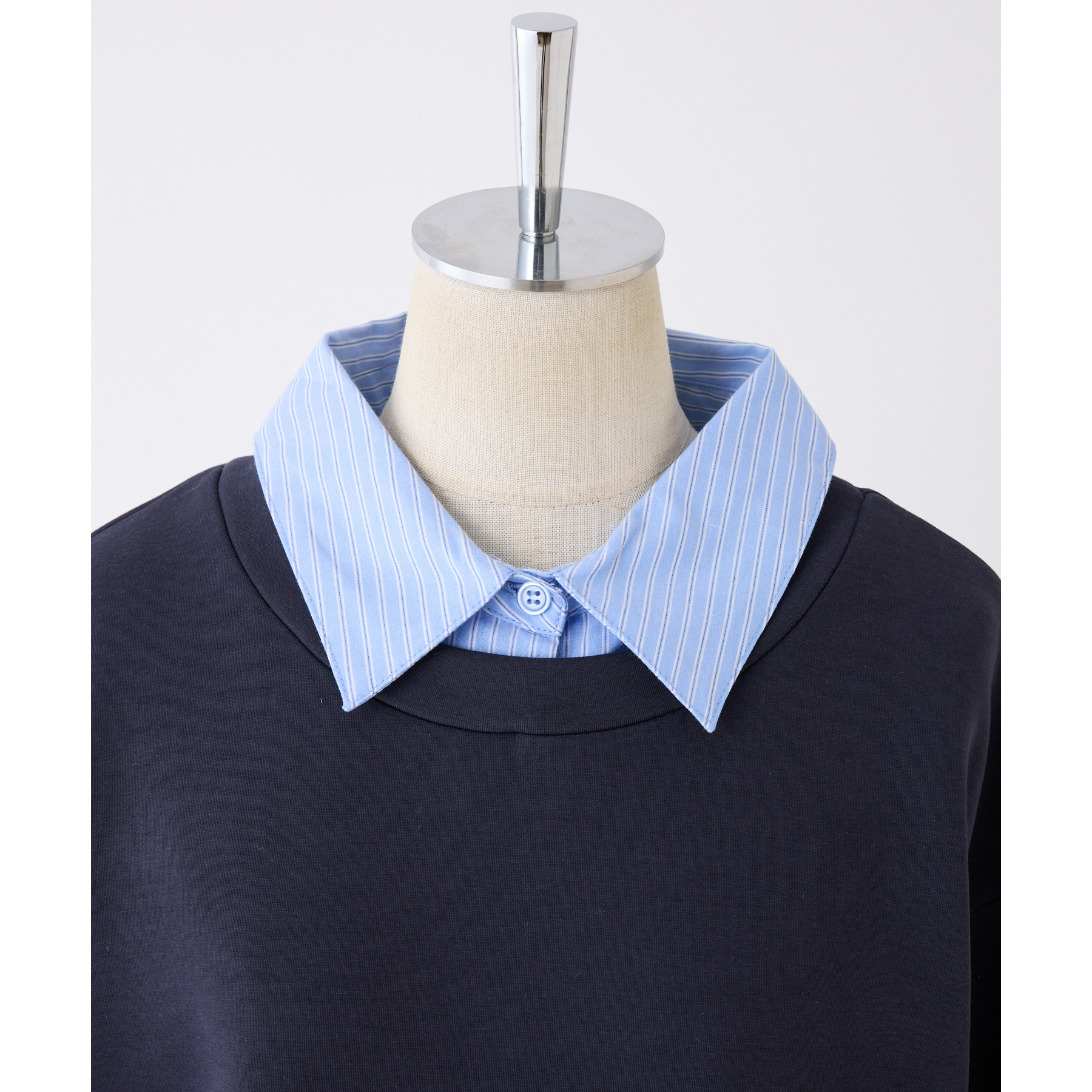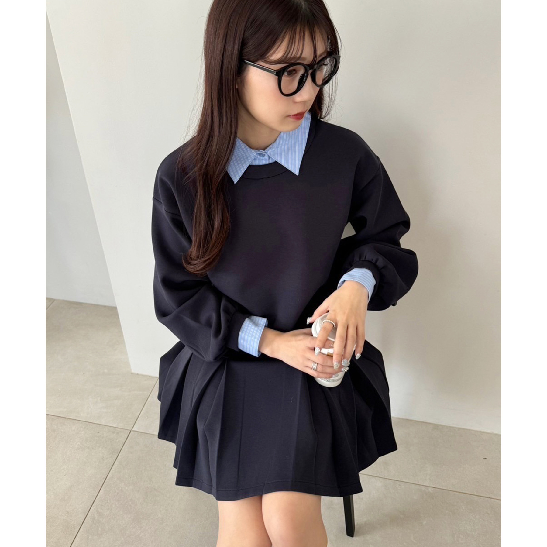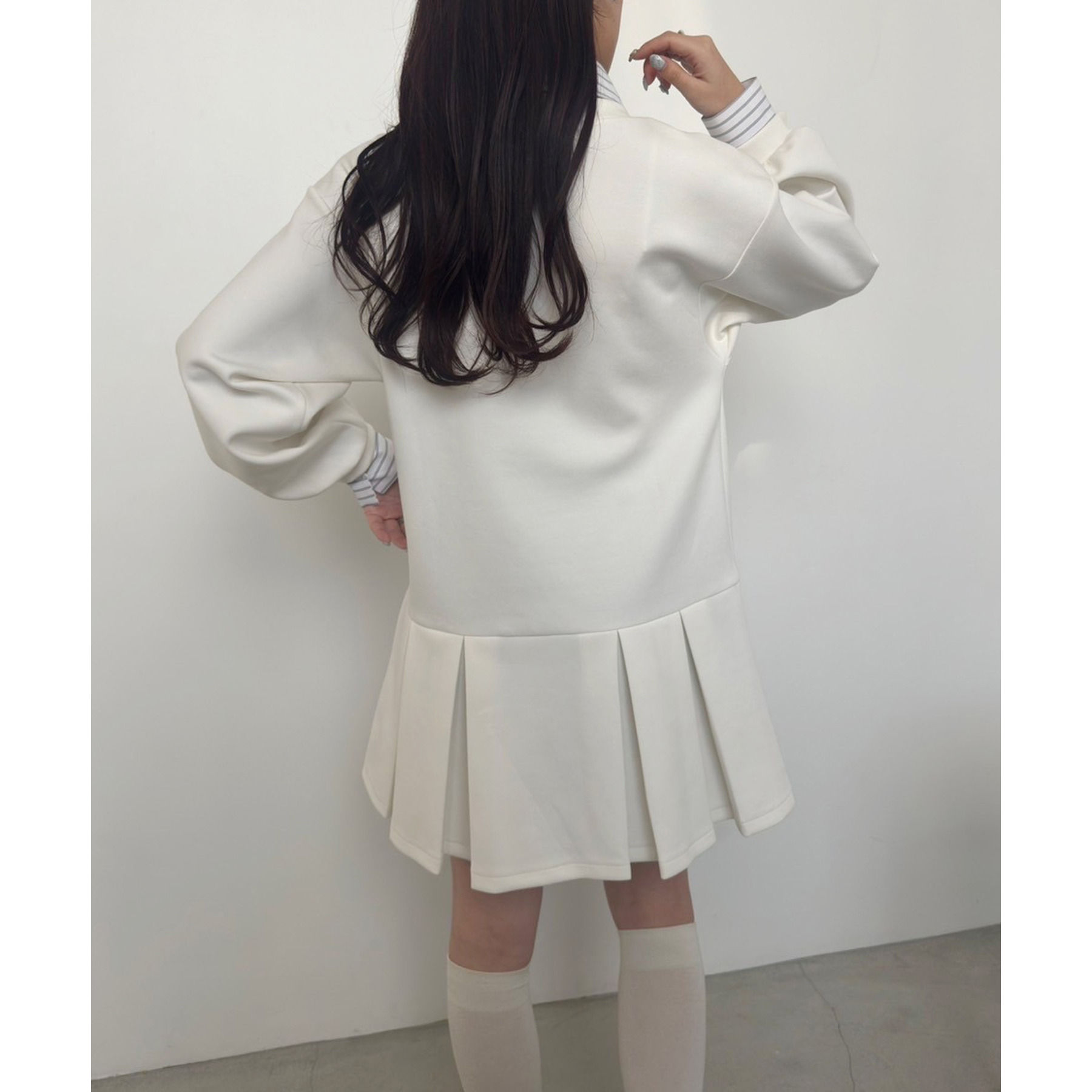 ビッグスウェットとシャツをレイヤードしたようなデザインのワンピース。