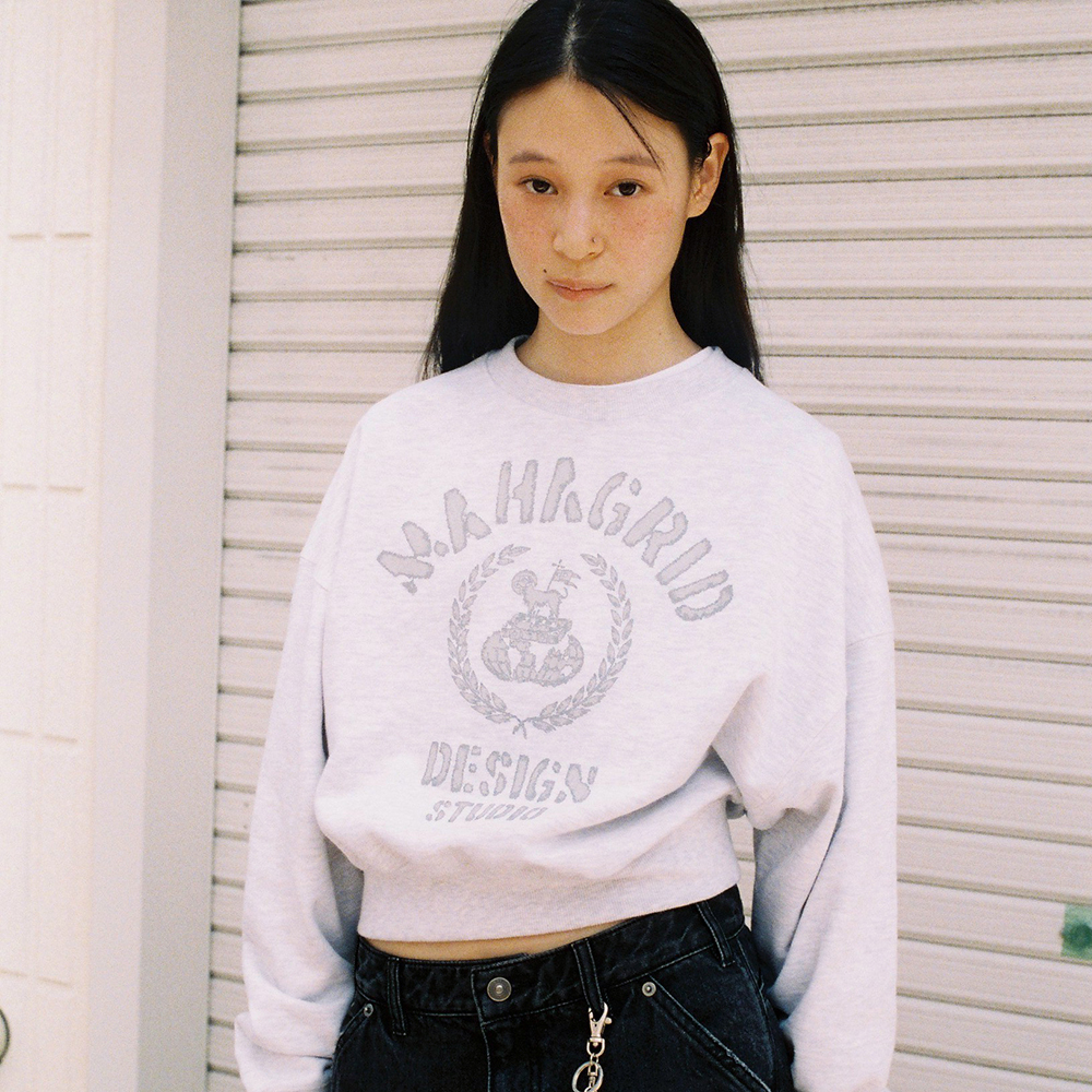 VINTAGE COLLEGE CROP SWEATSHIRT [LIGHT GREY]