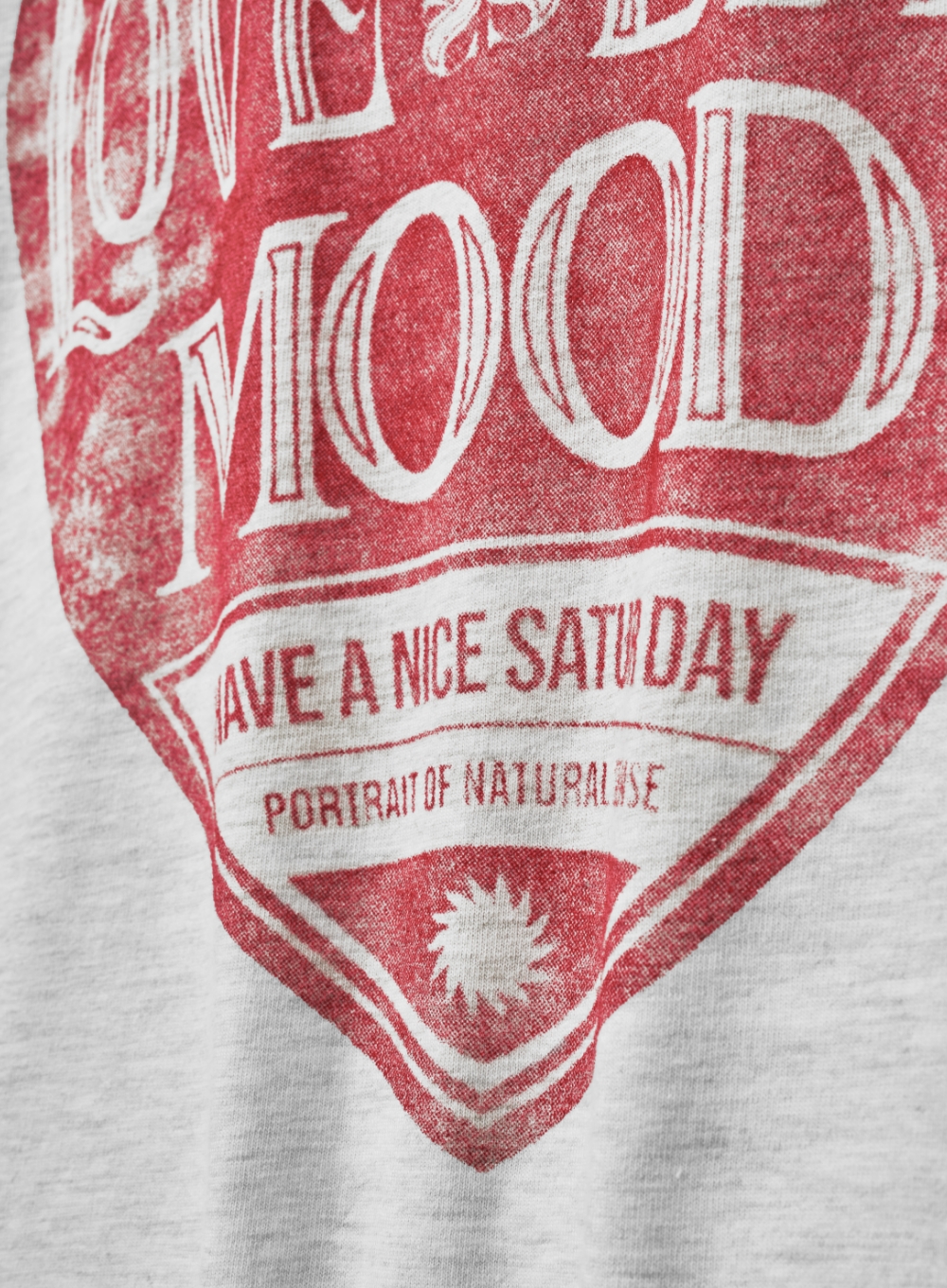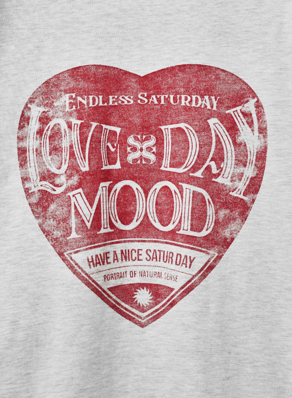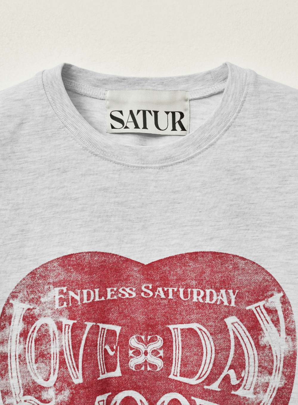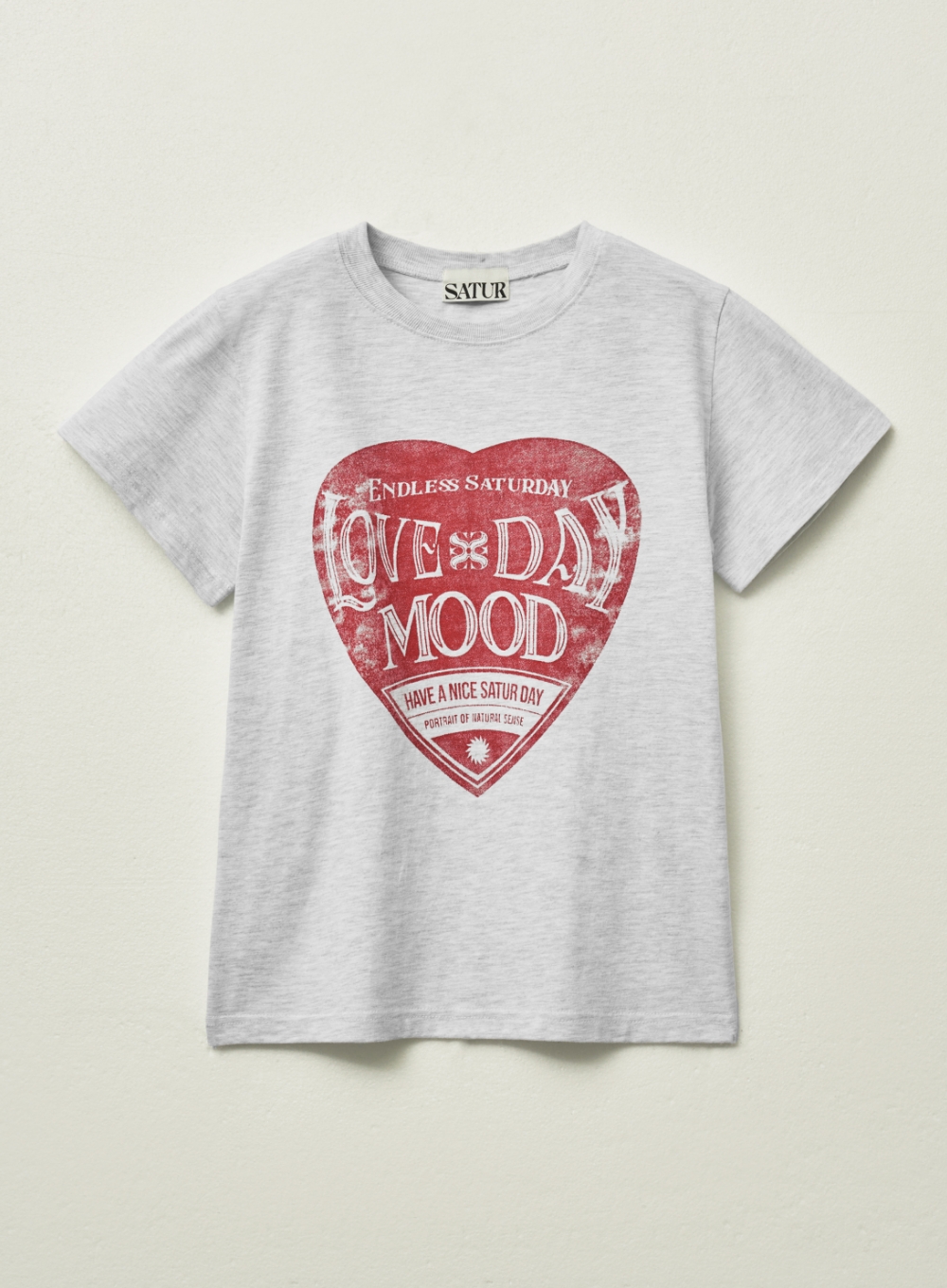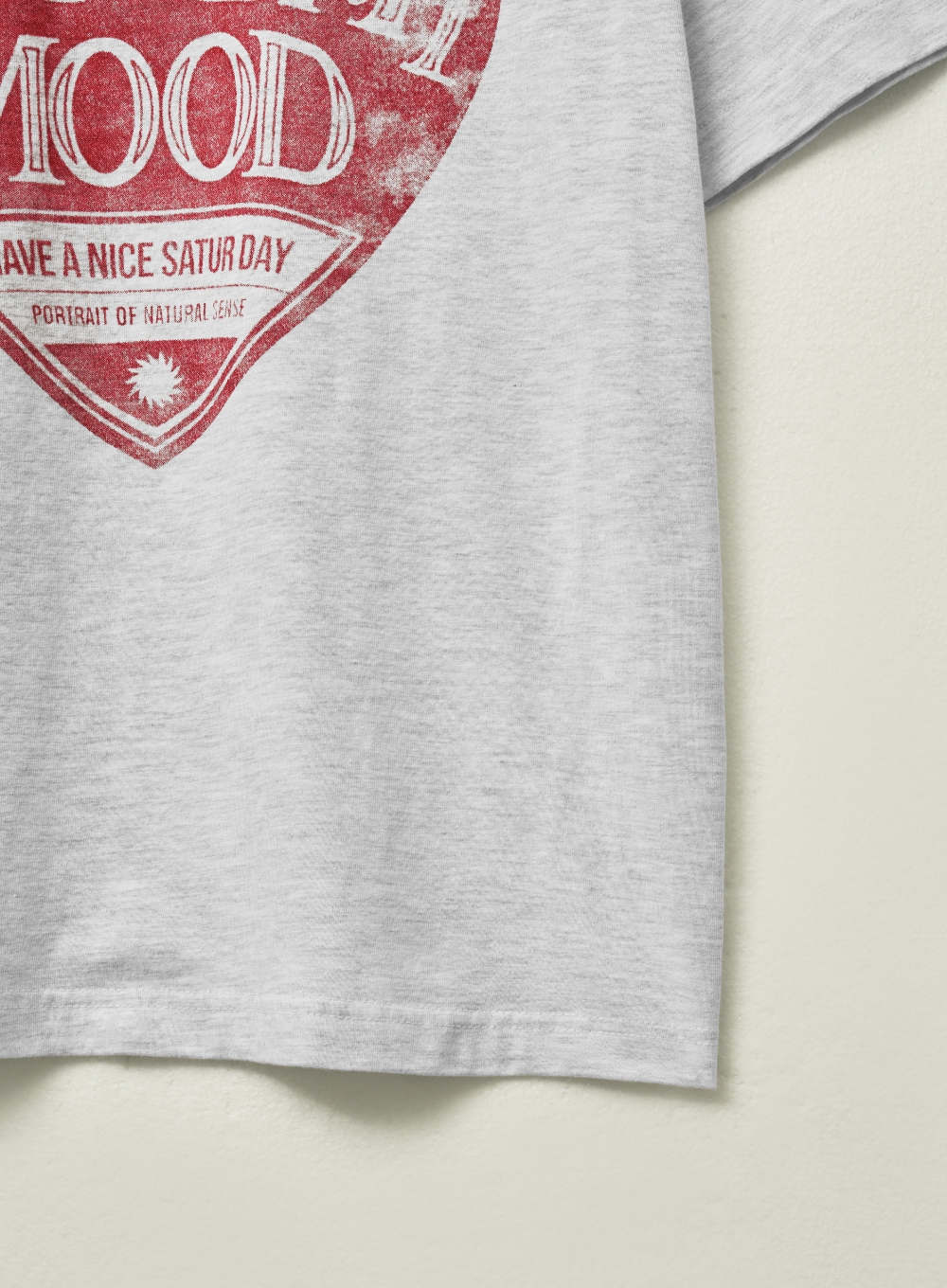 (W) Saturday Retro Mood Graphic T-Shirt - Melange White