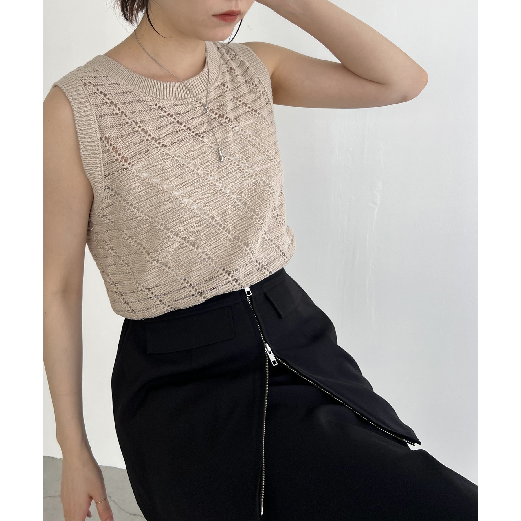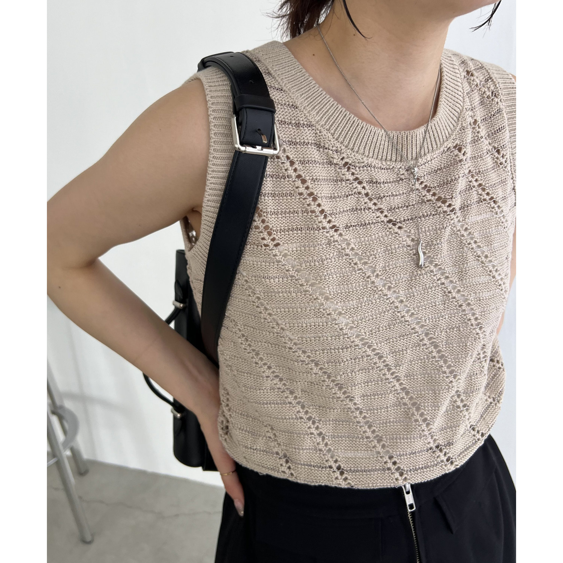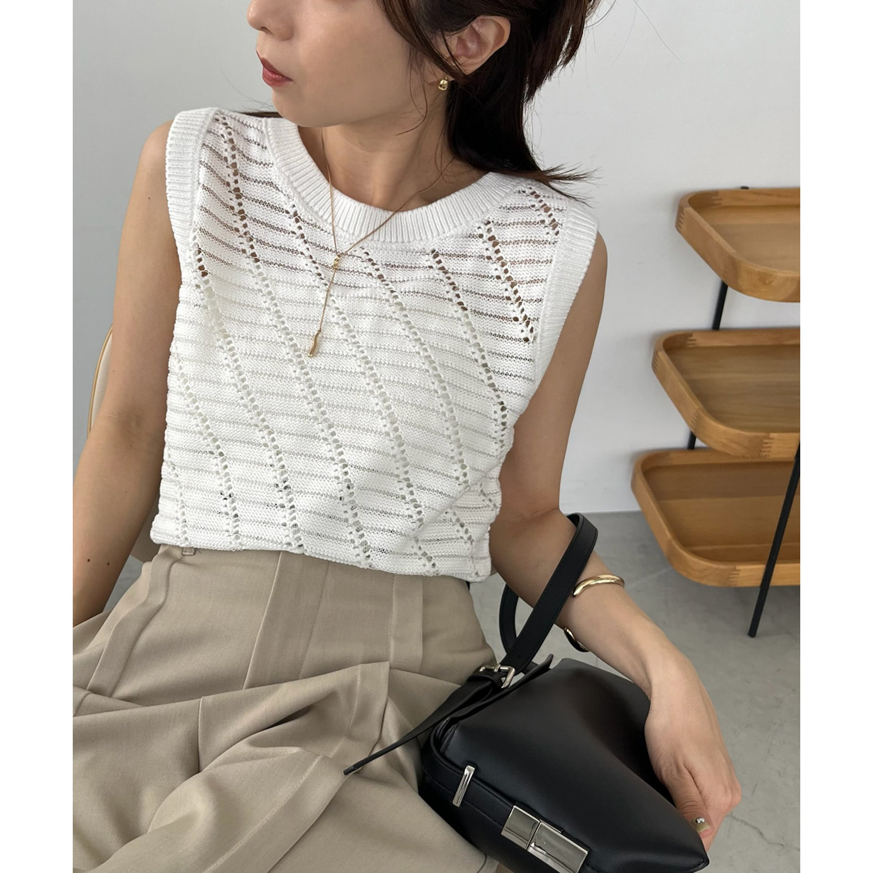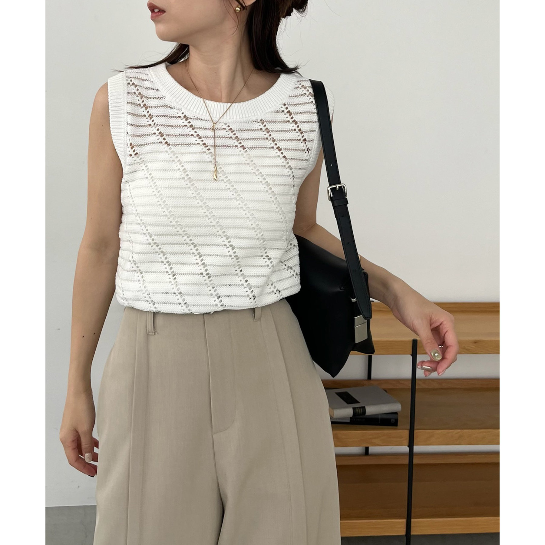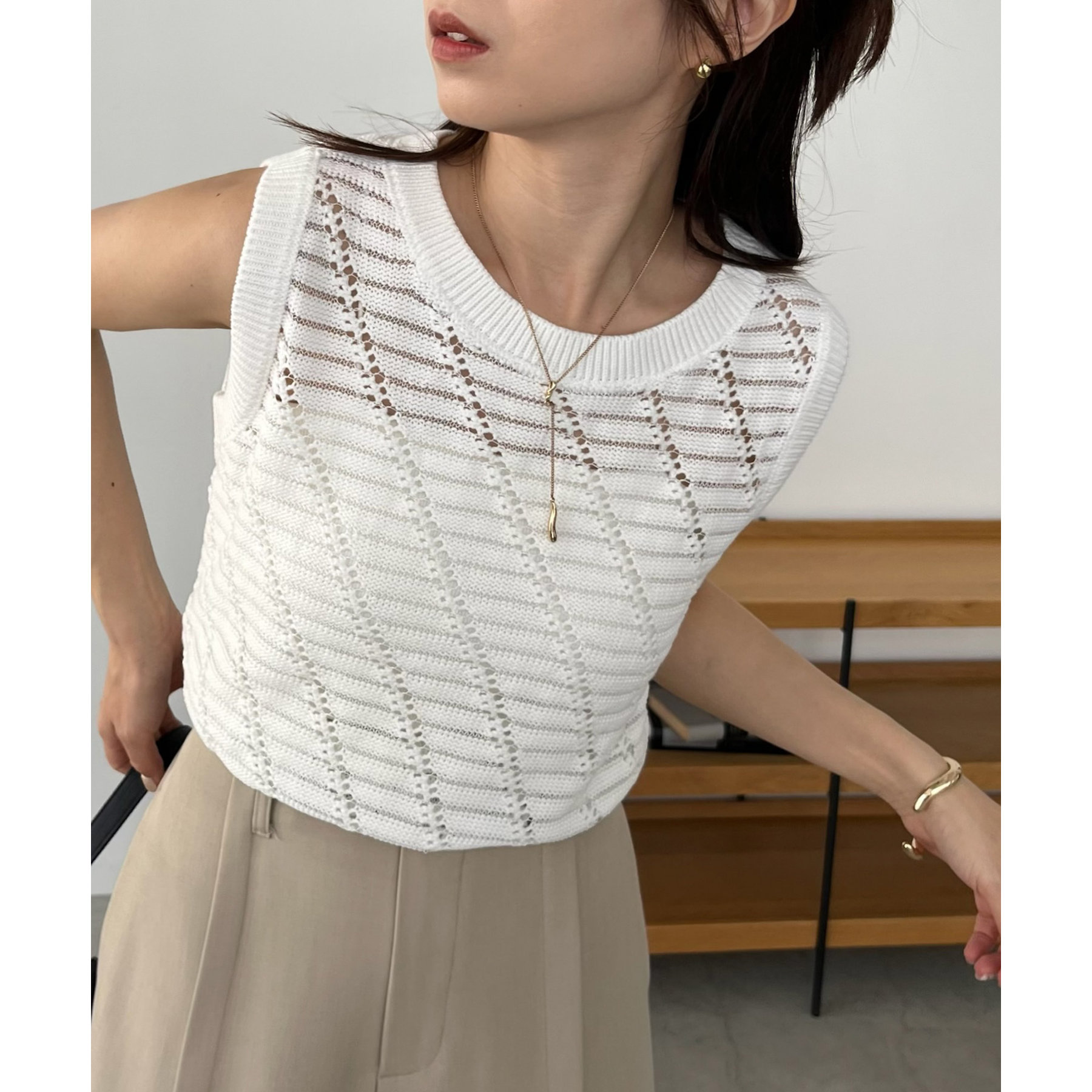大人カジュアルに決まるシアーニットタンク