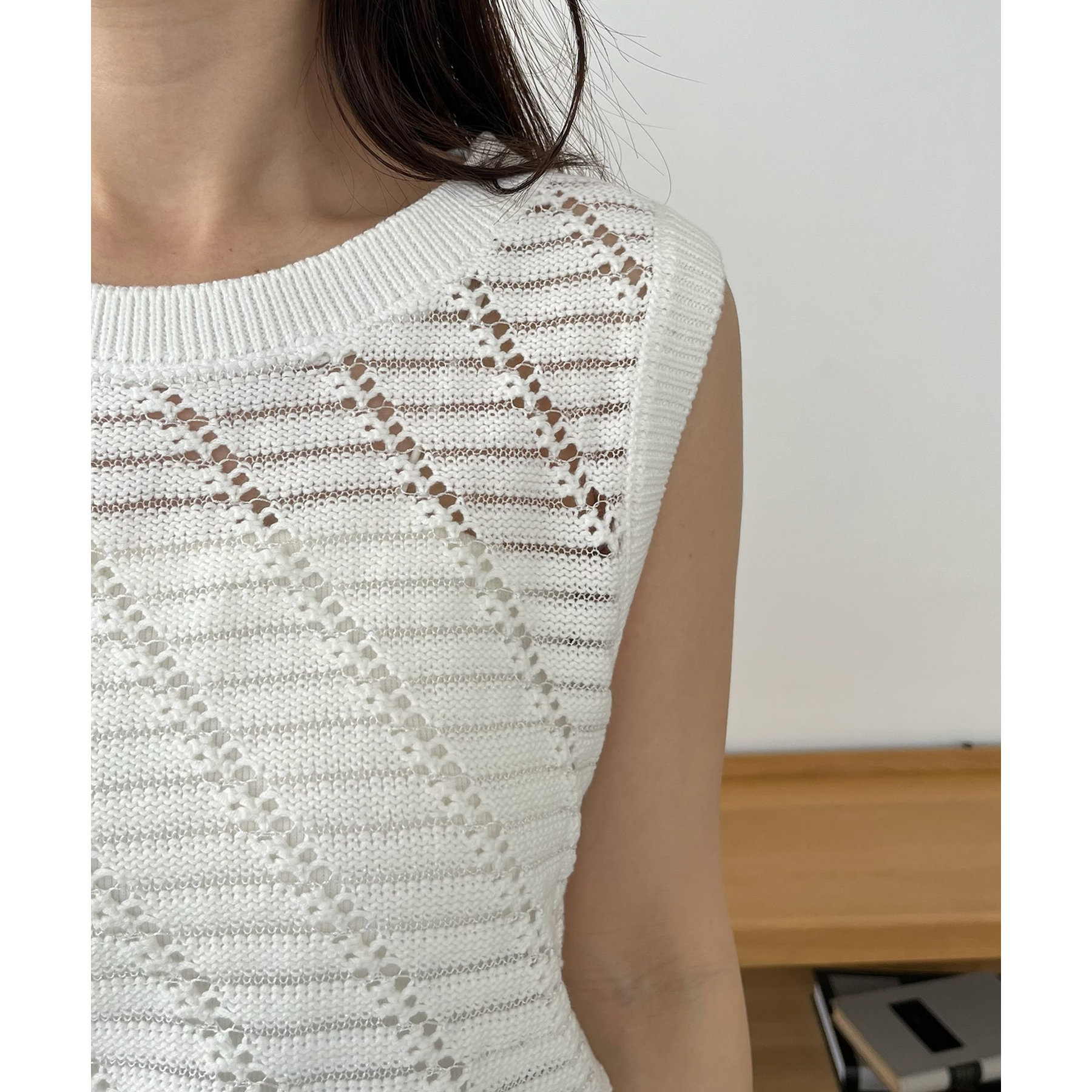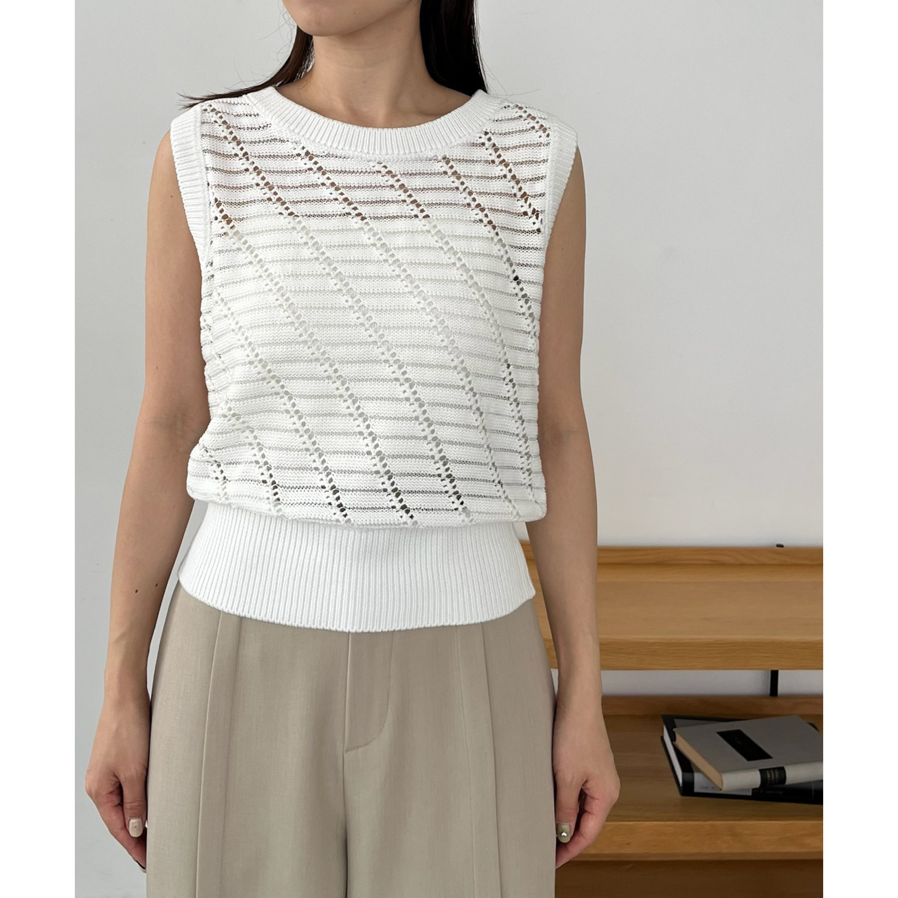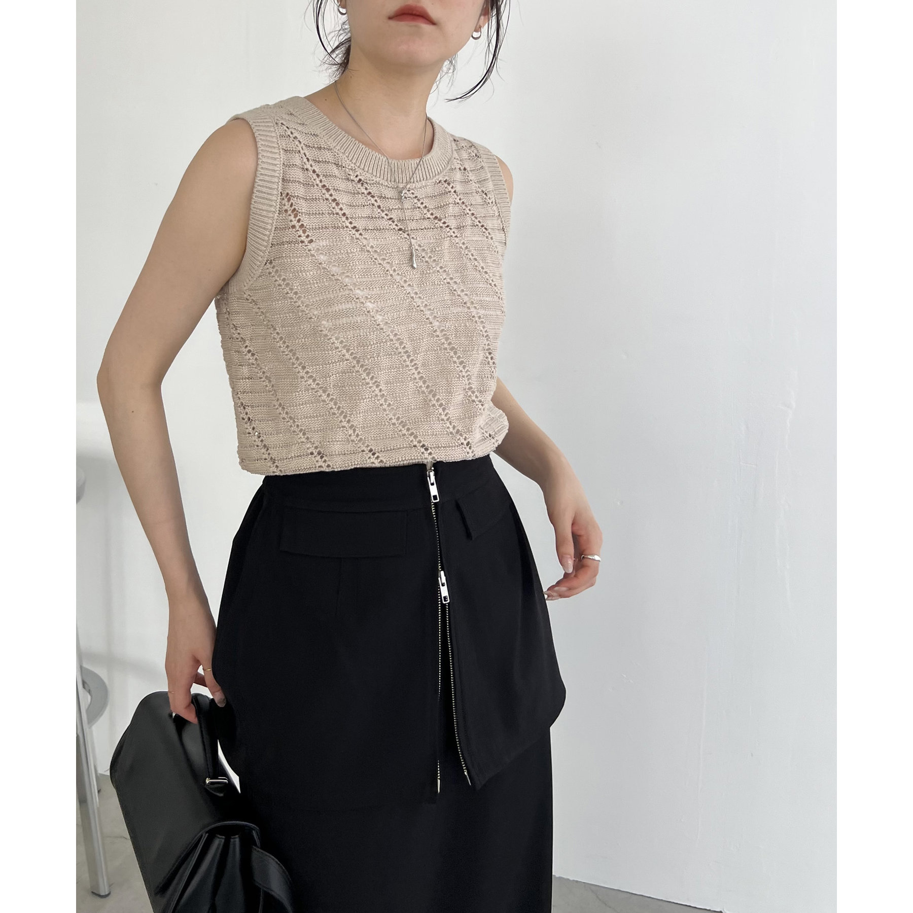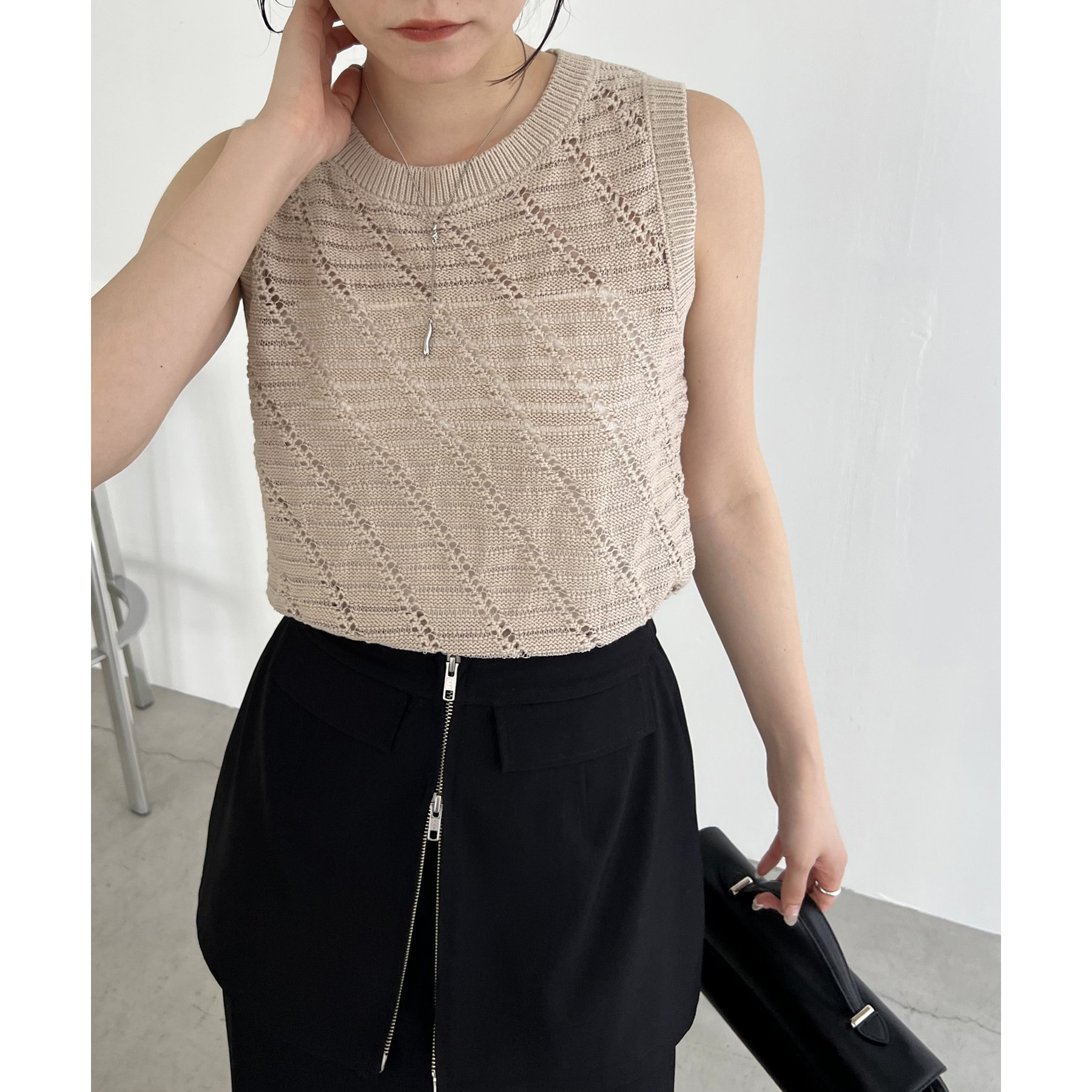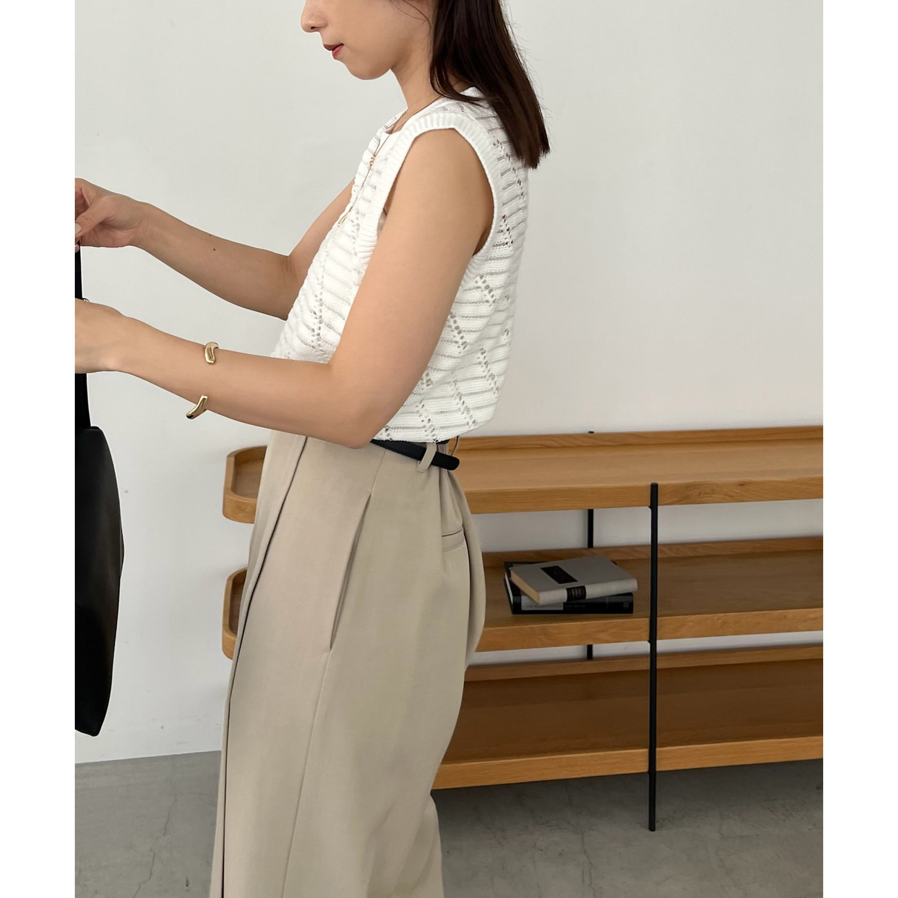 大人カジュアルに決まるシアーニットタンク