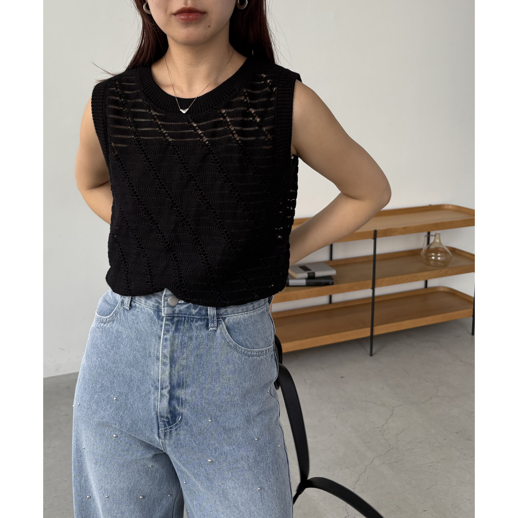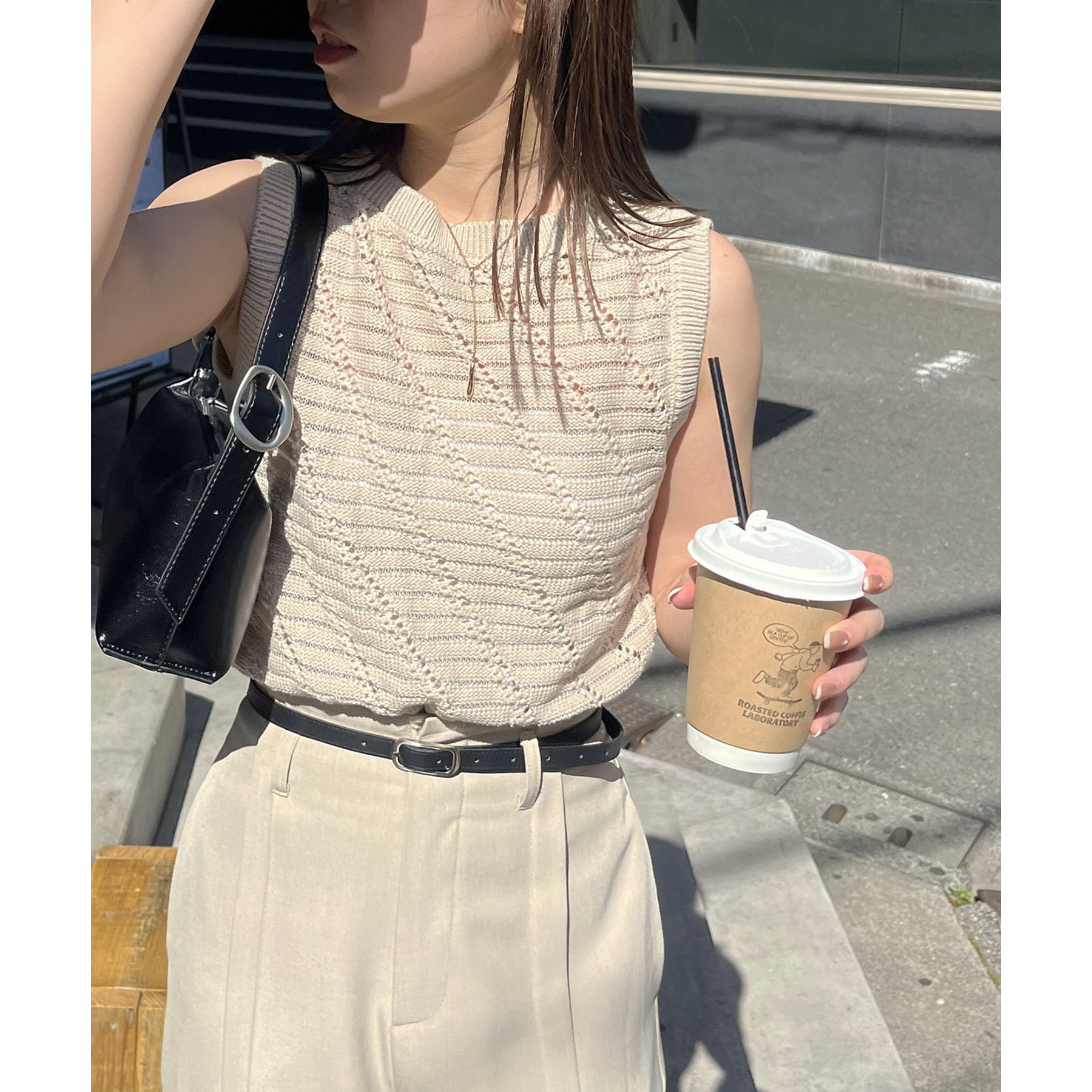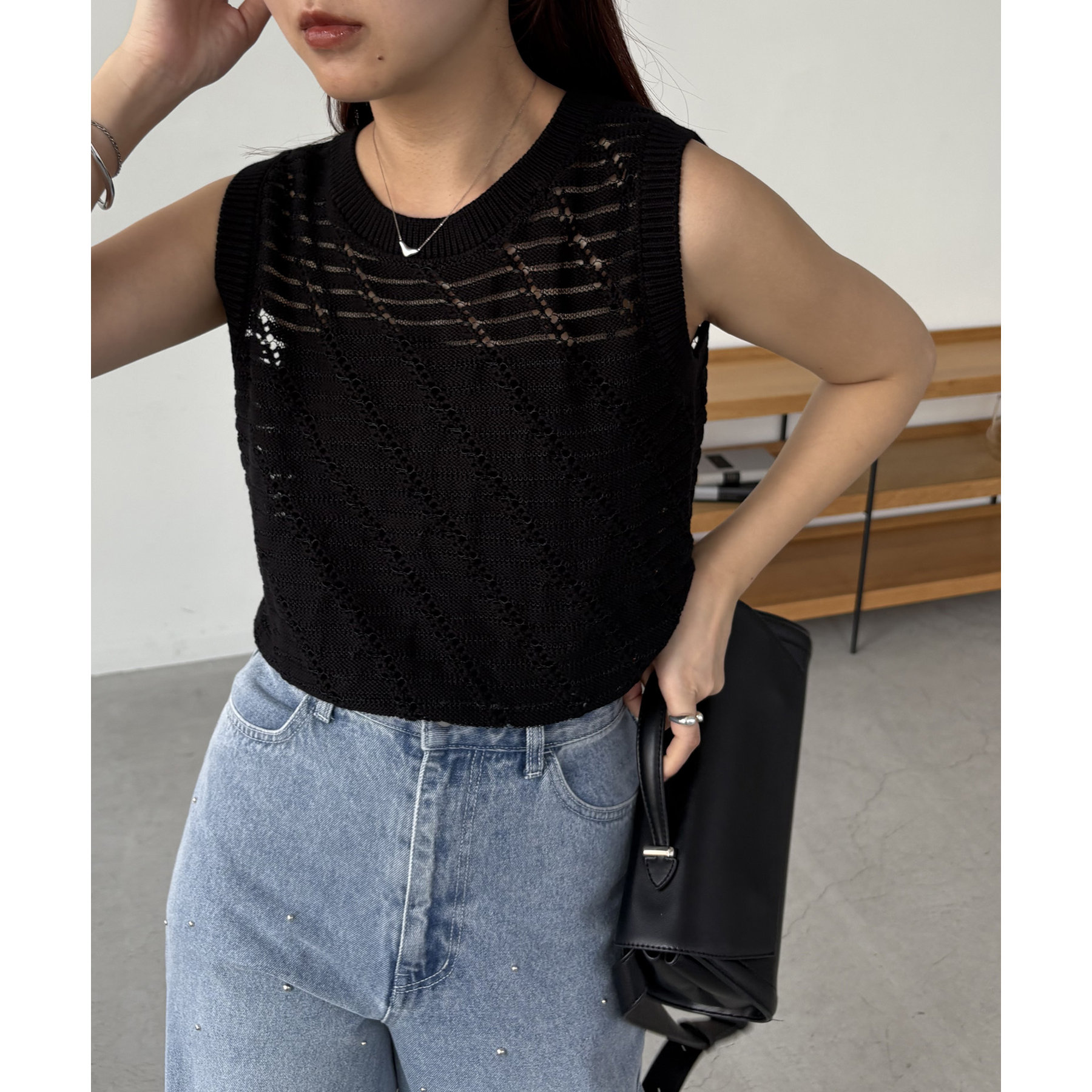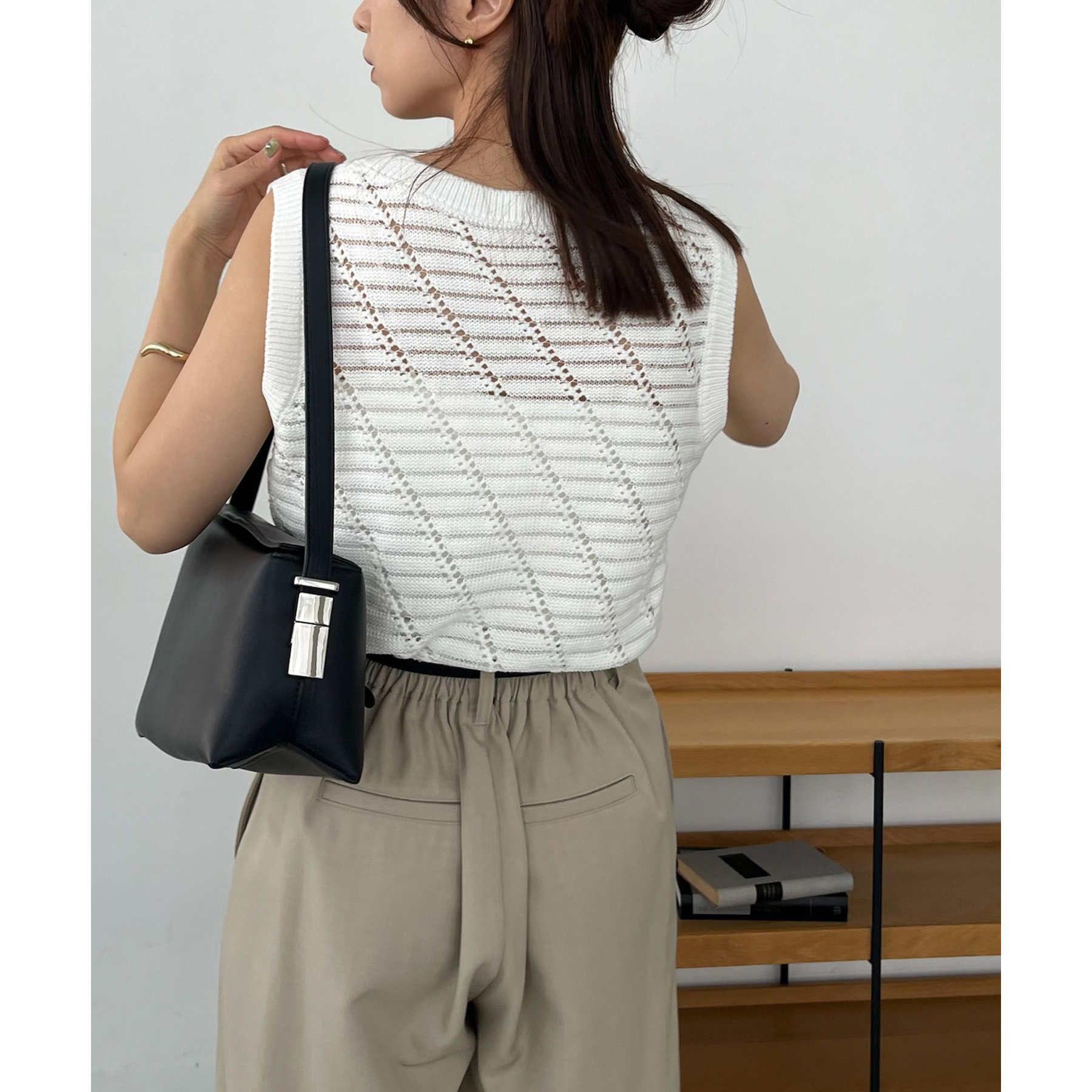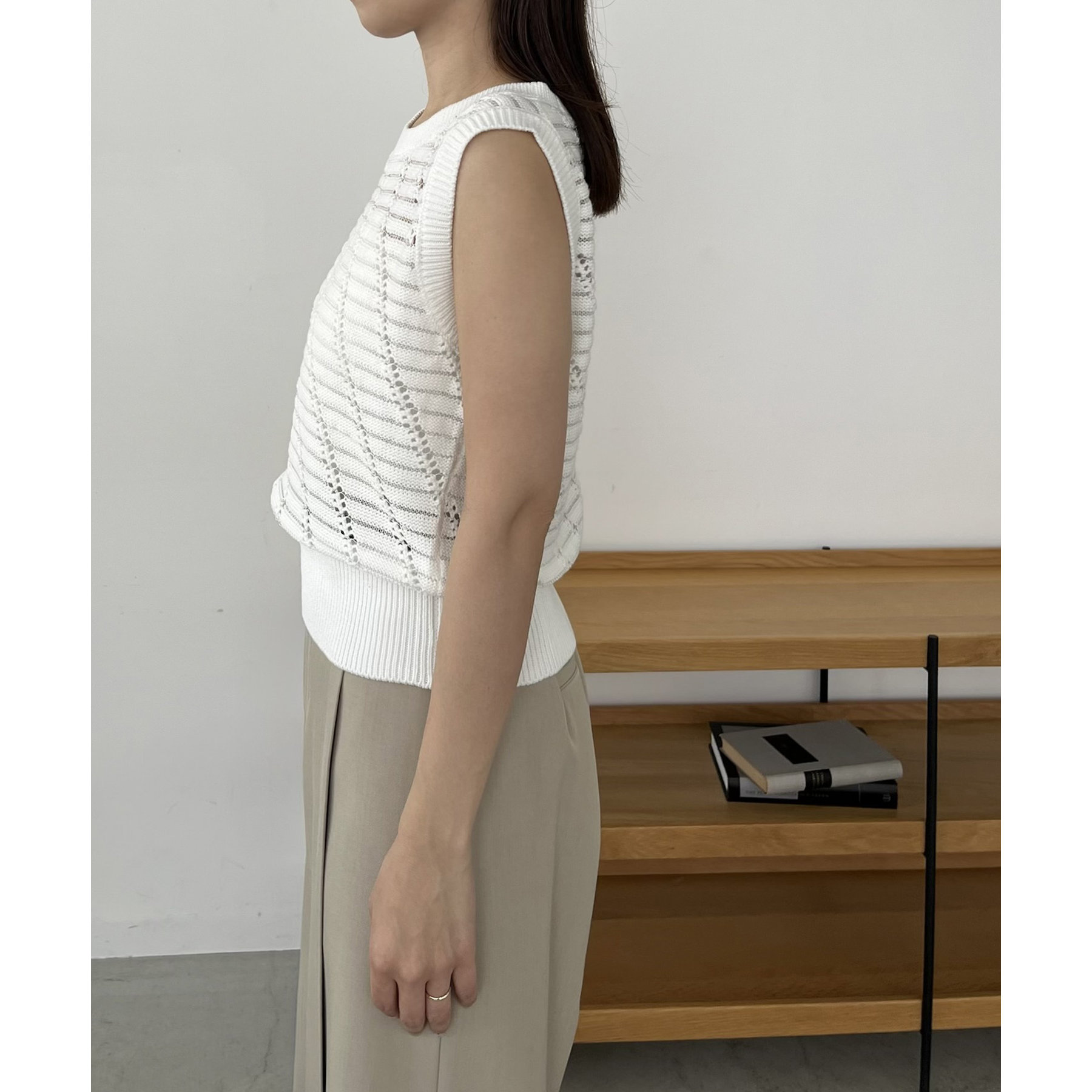 大人カジュアルに決まるシアーニットタンク