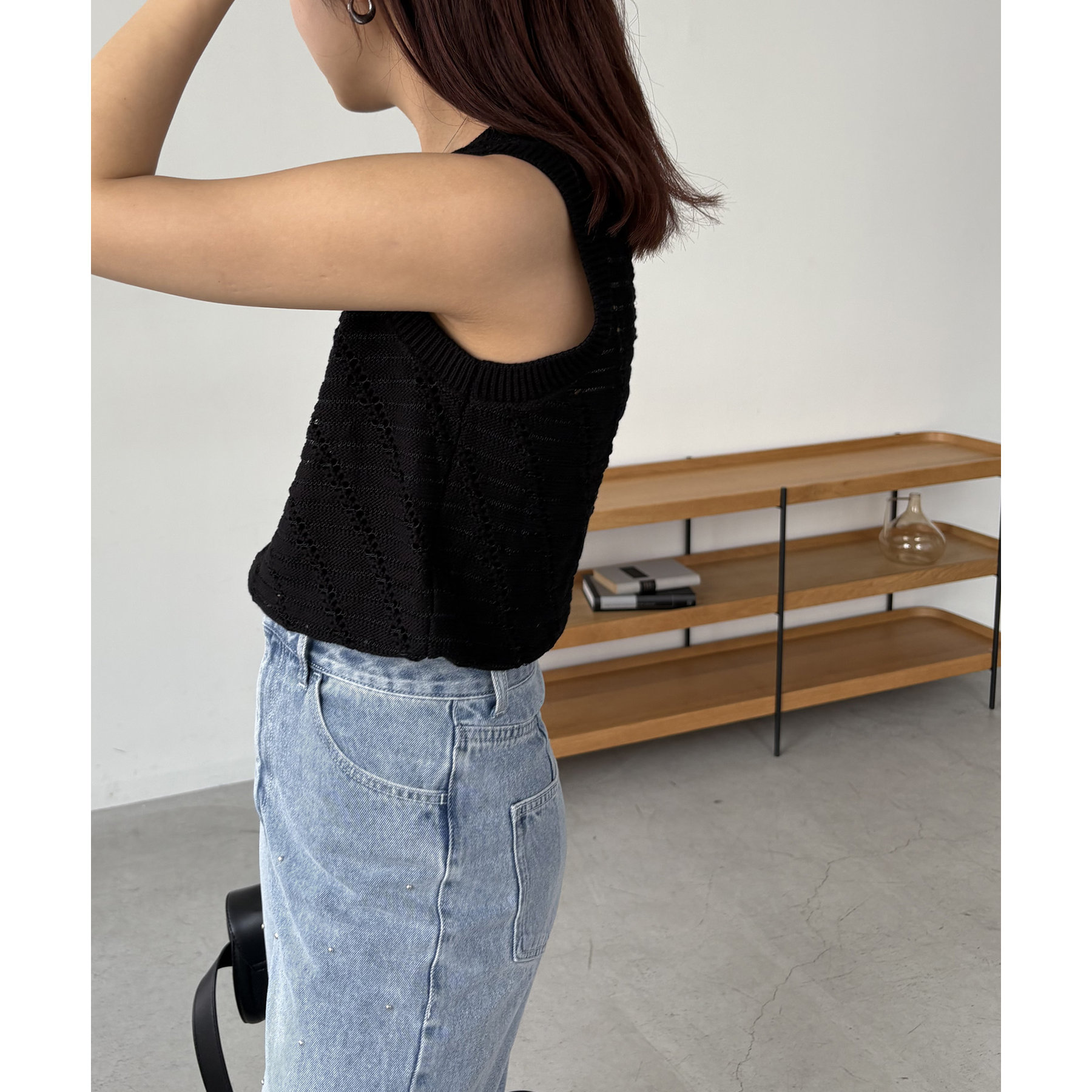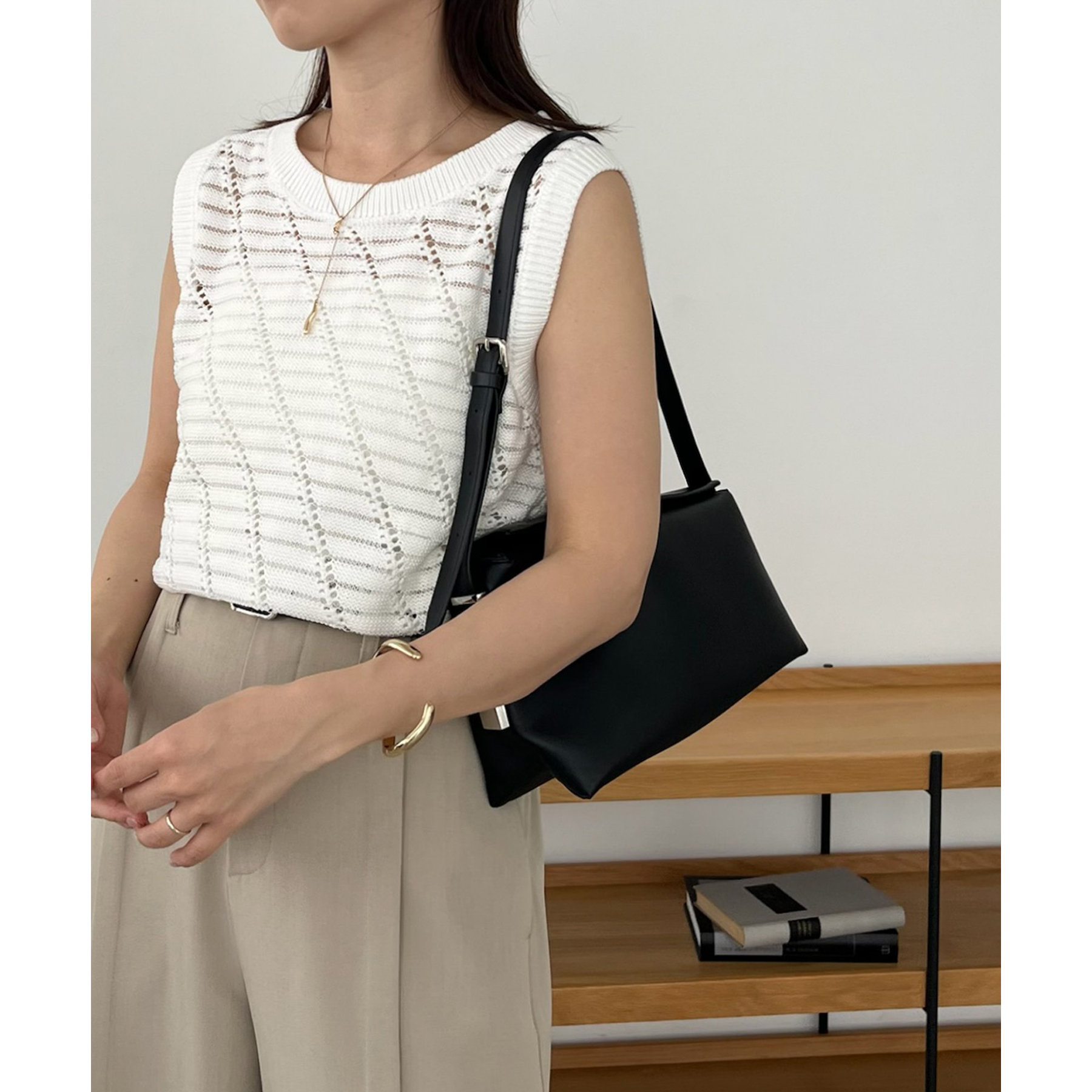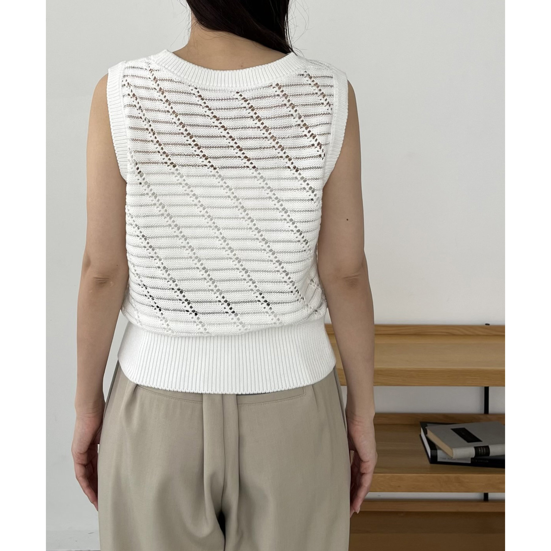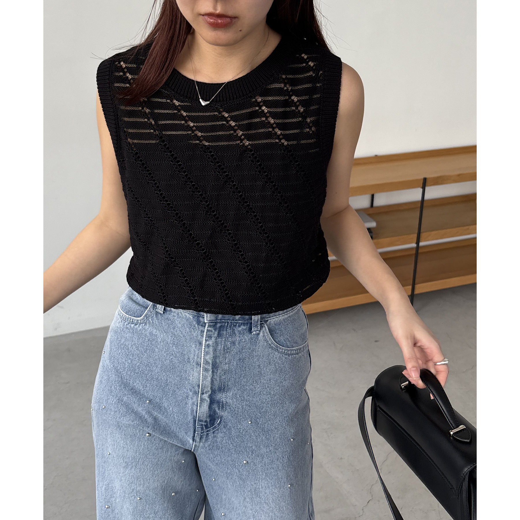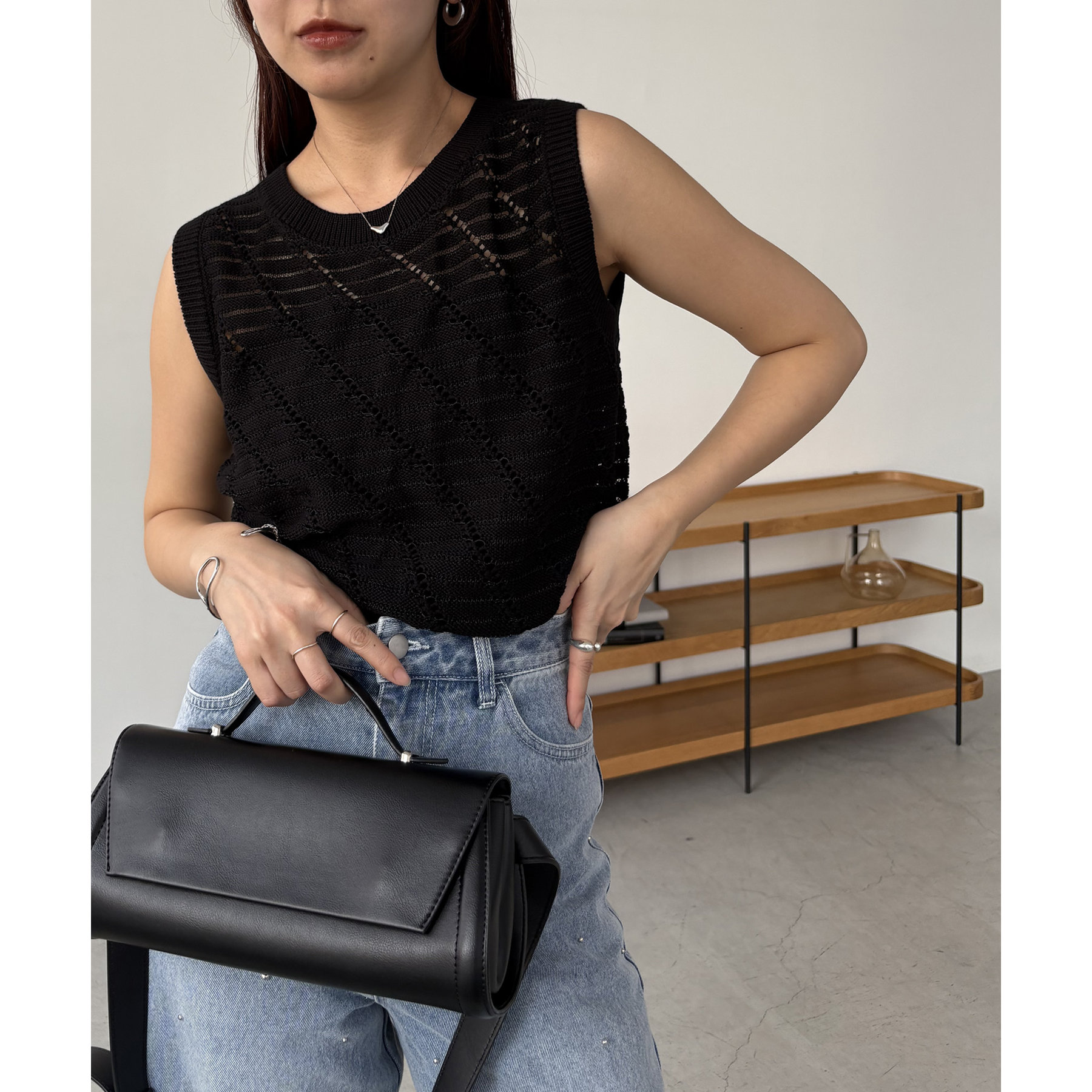 大人カジュアルに決まるシアーニットタンク