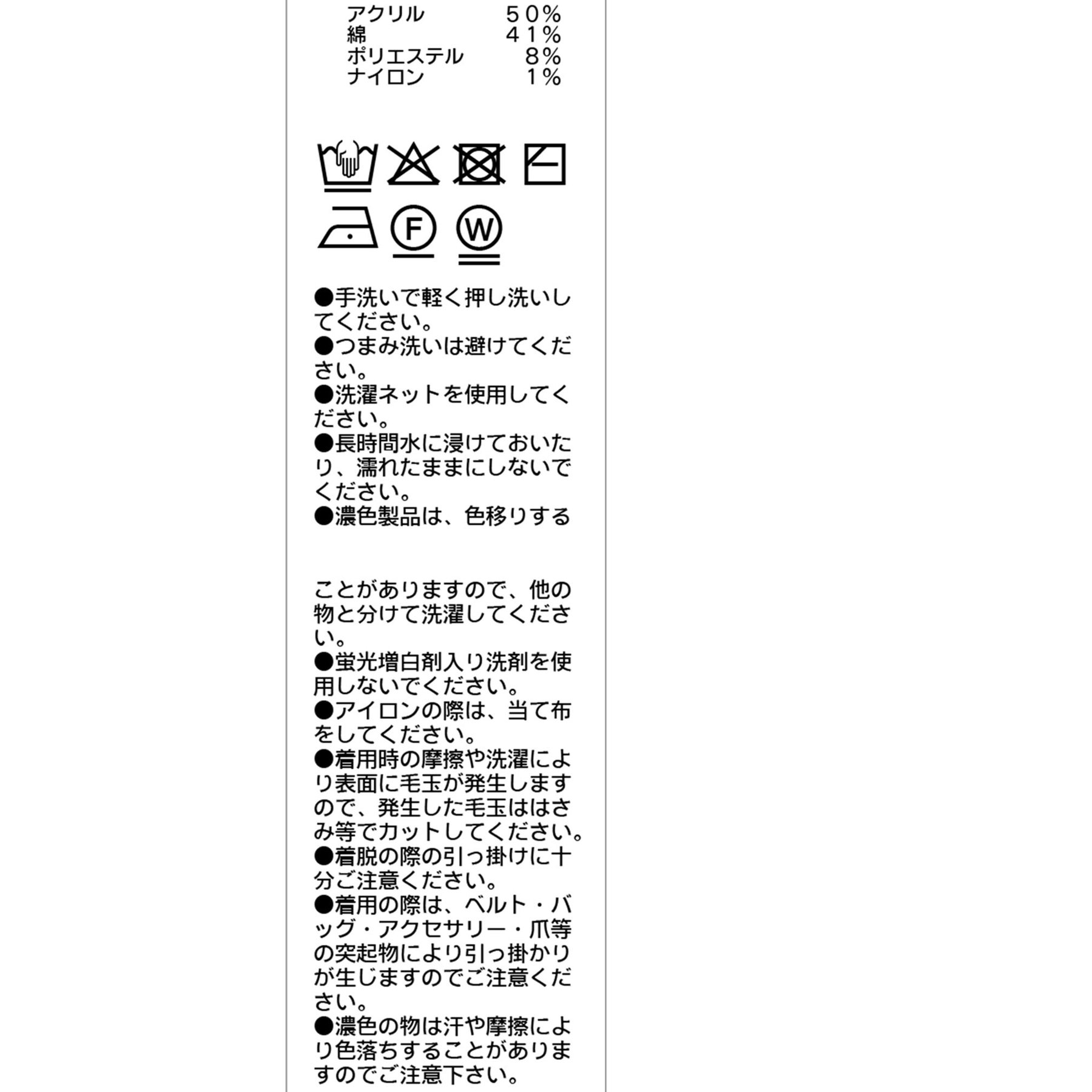 アクリル50%、綿41%、ポリエステル8%、ナイロン1%