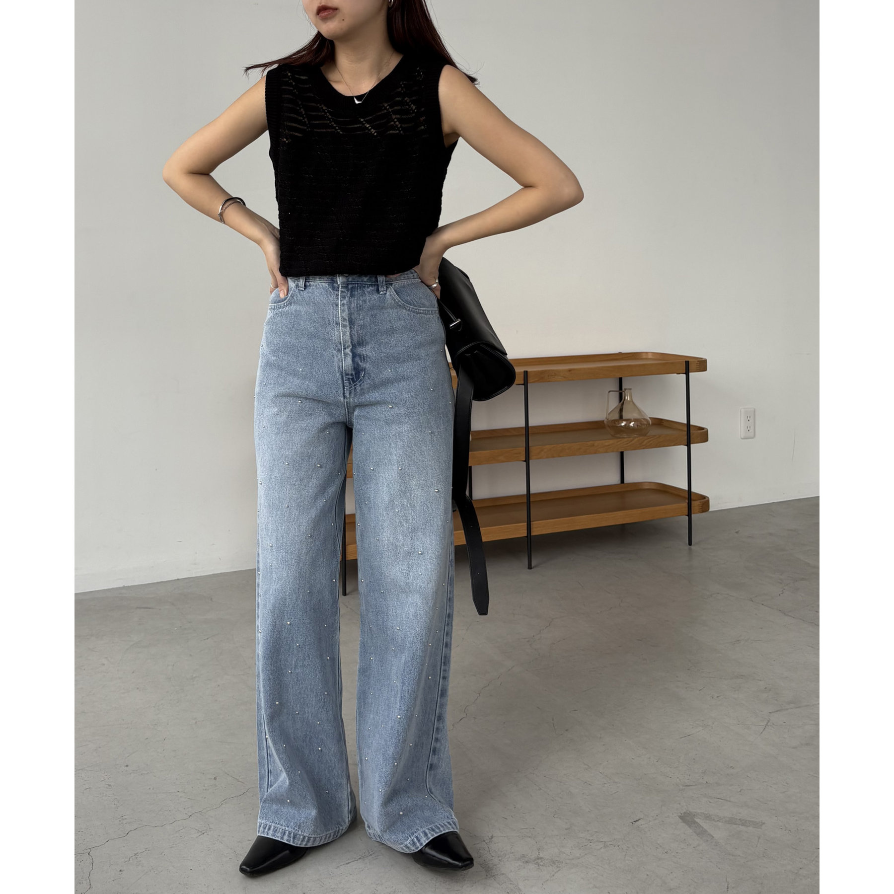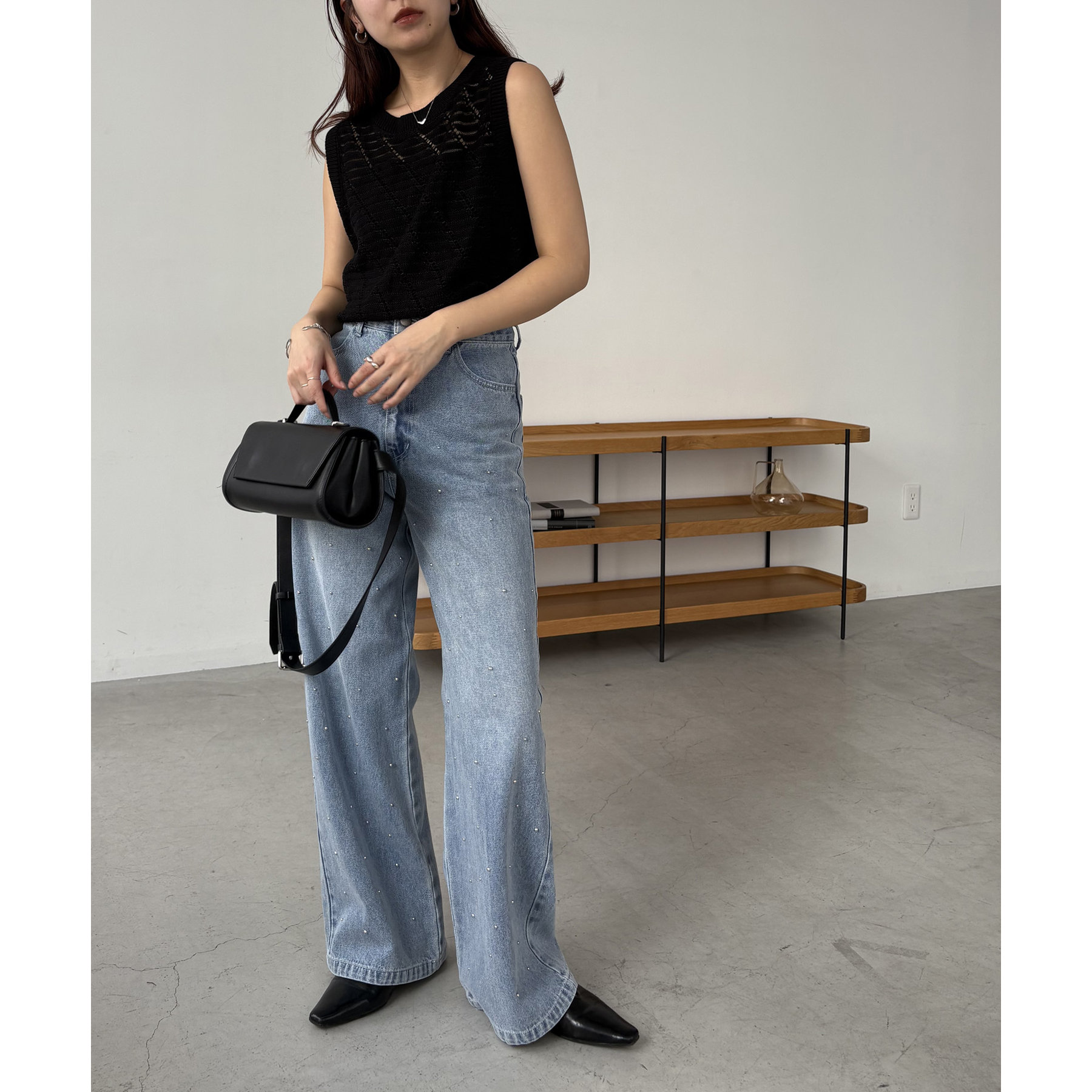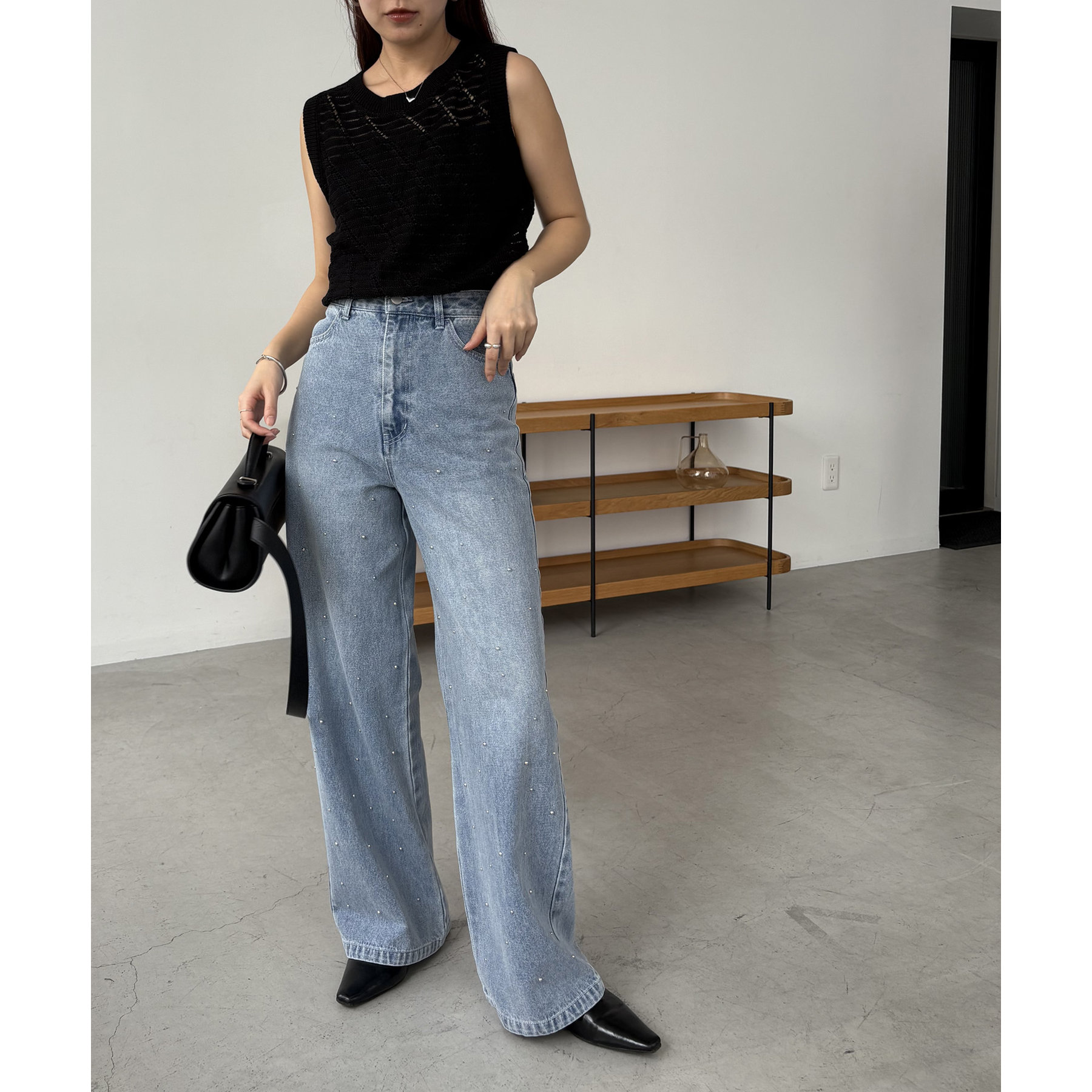 【ブラック着用アイテム】シルバードットデニム