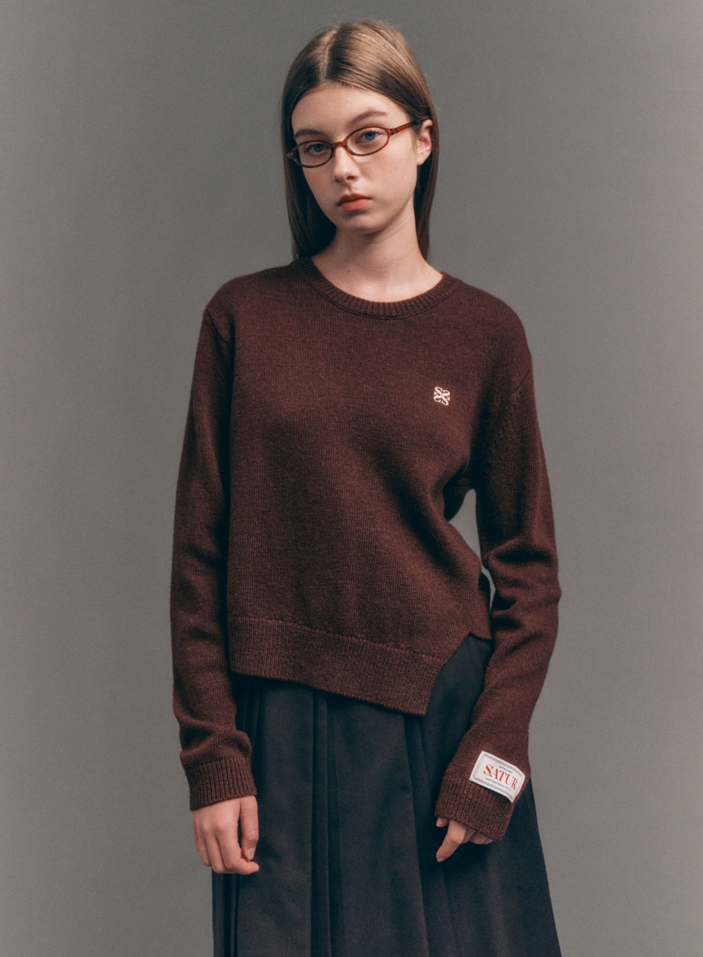 [Influencer pick] (W) Dublin Unbalanced Cashmere Blend Knit - Brick Brown