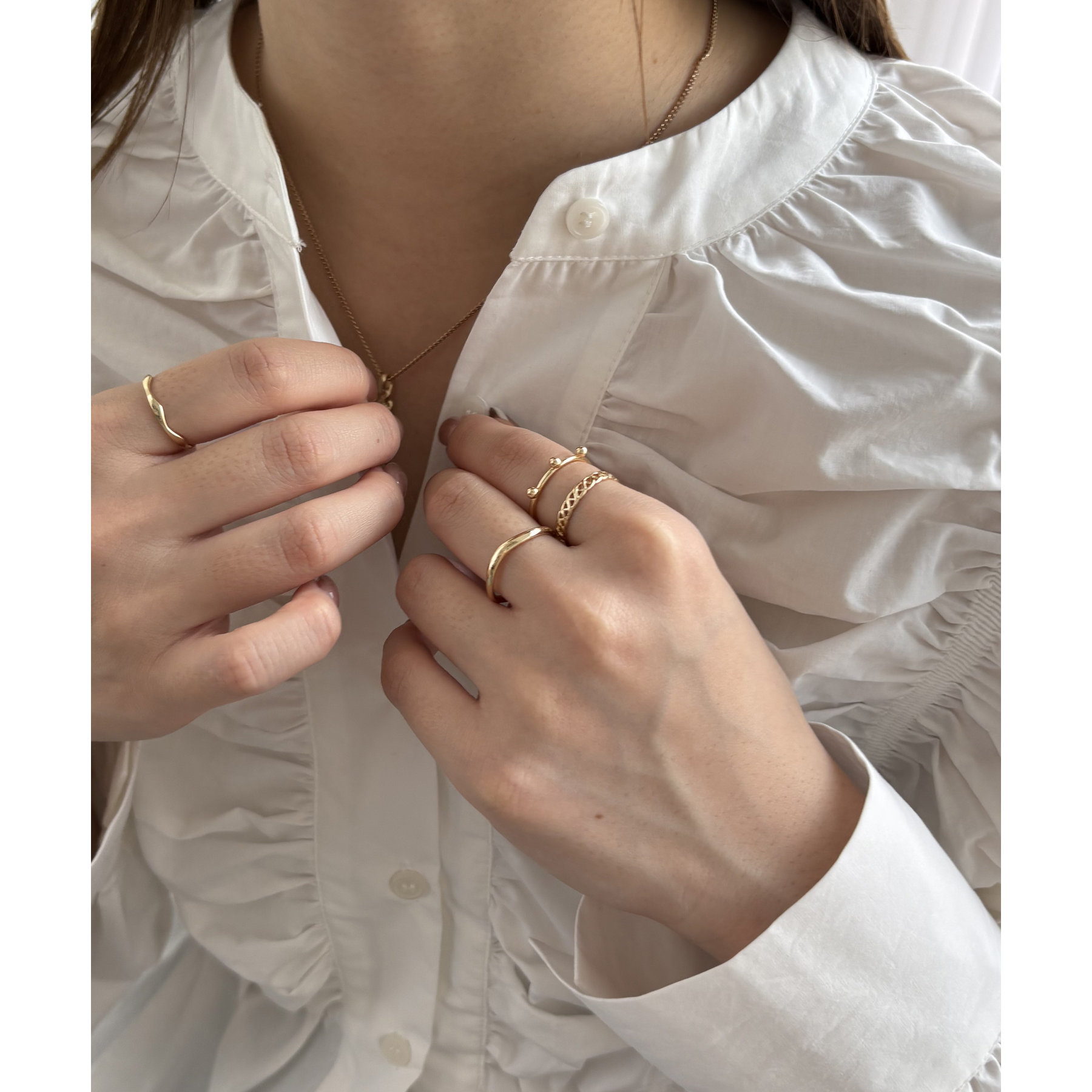 お手持ちのリングとの重ね付けもしやすいです。