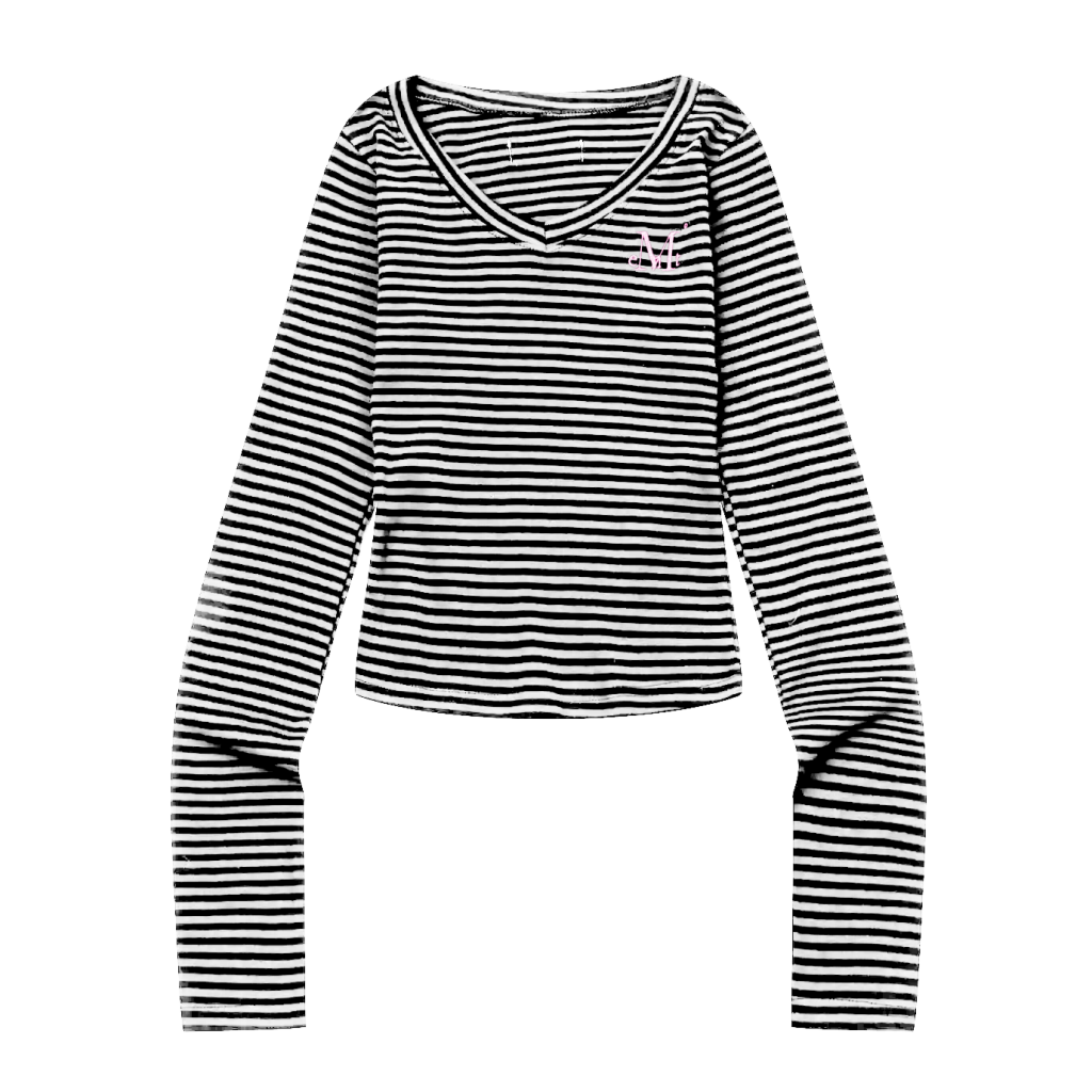 EMMA V-NECK STRIPE LONG SLEEVE T (2Color)