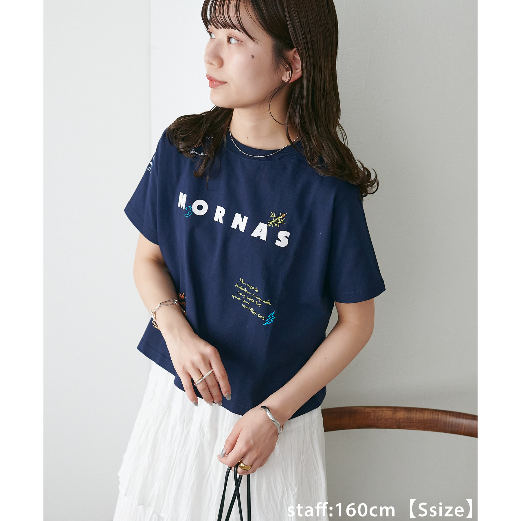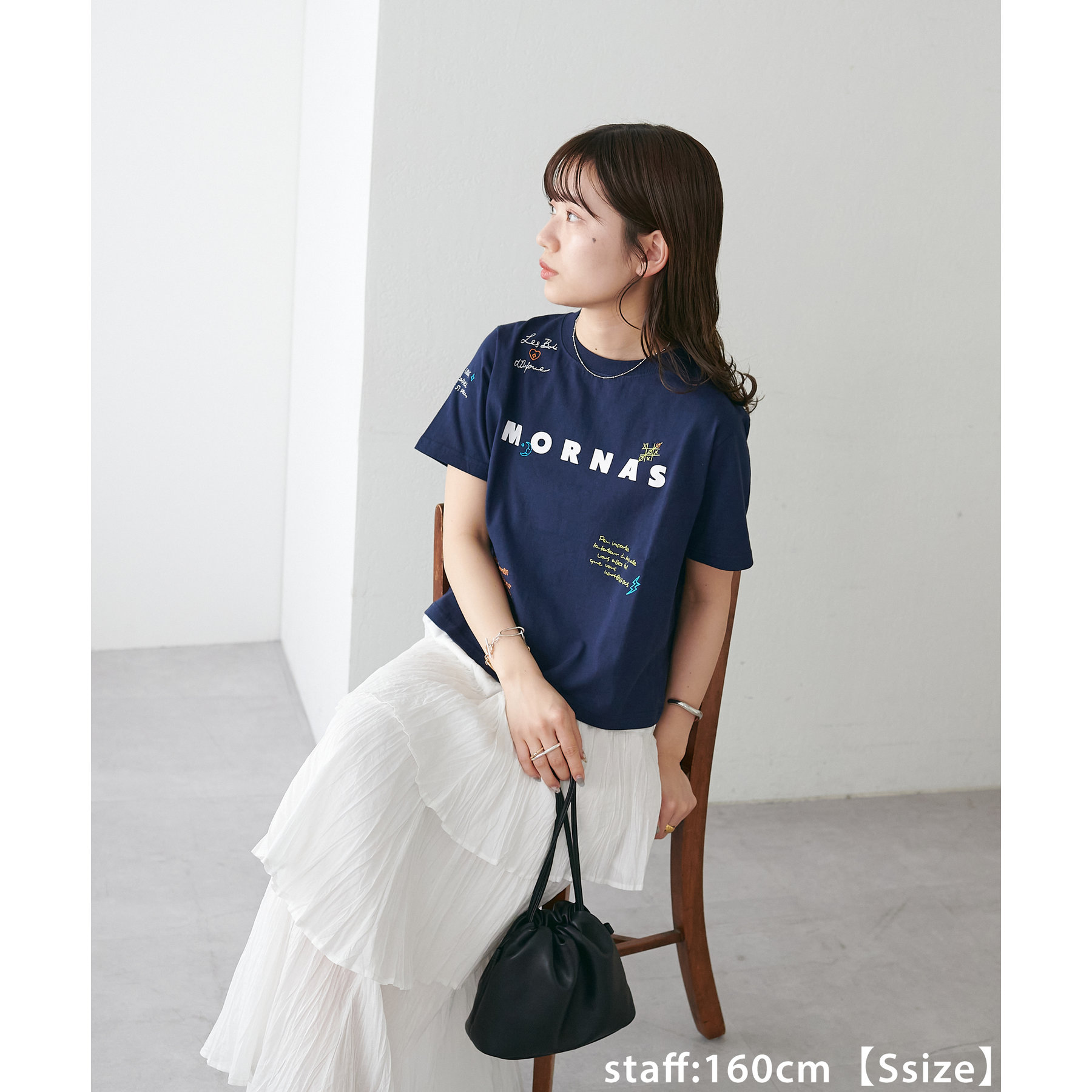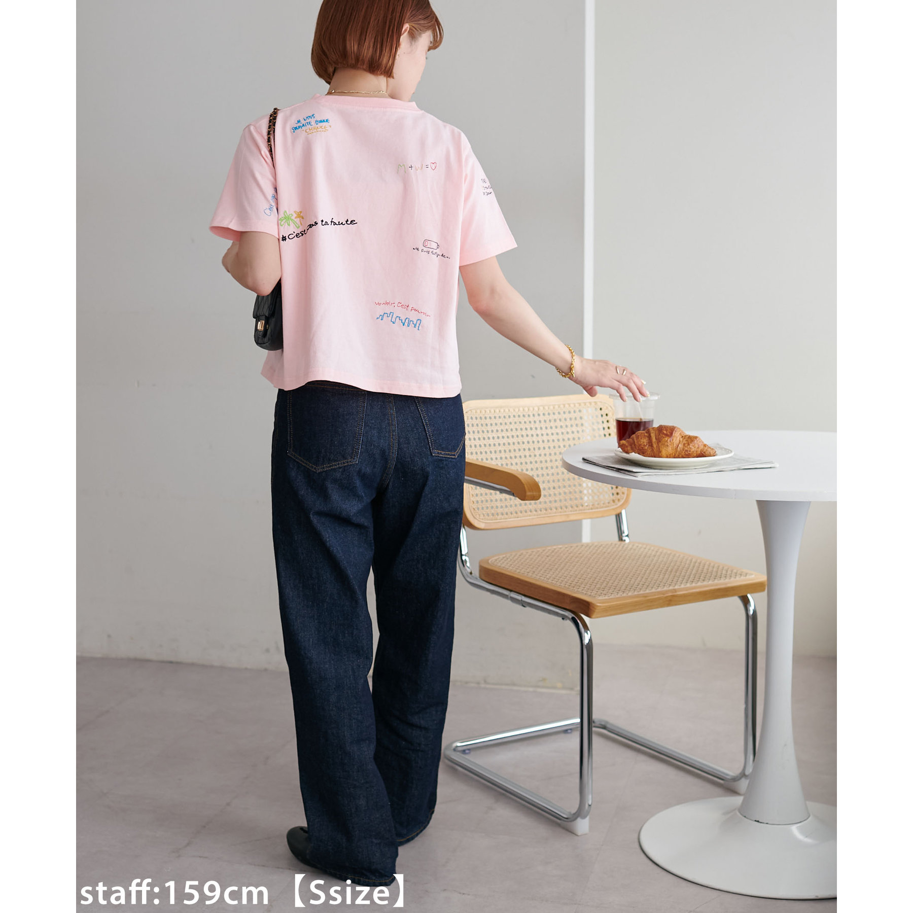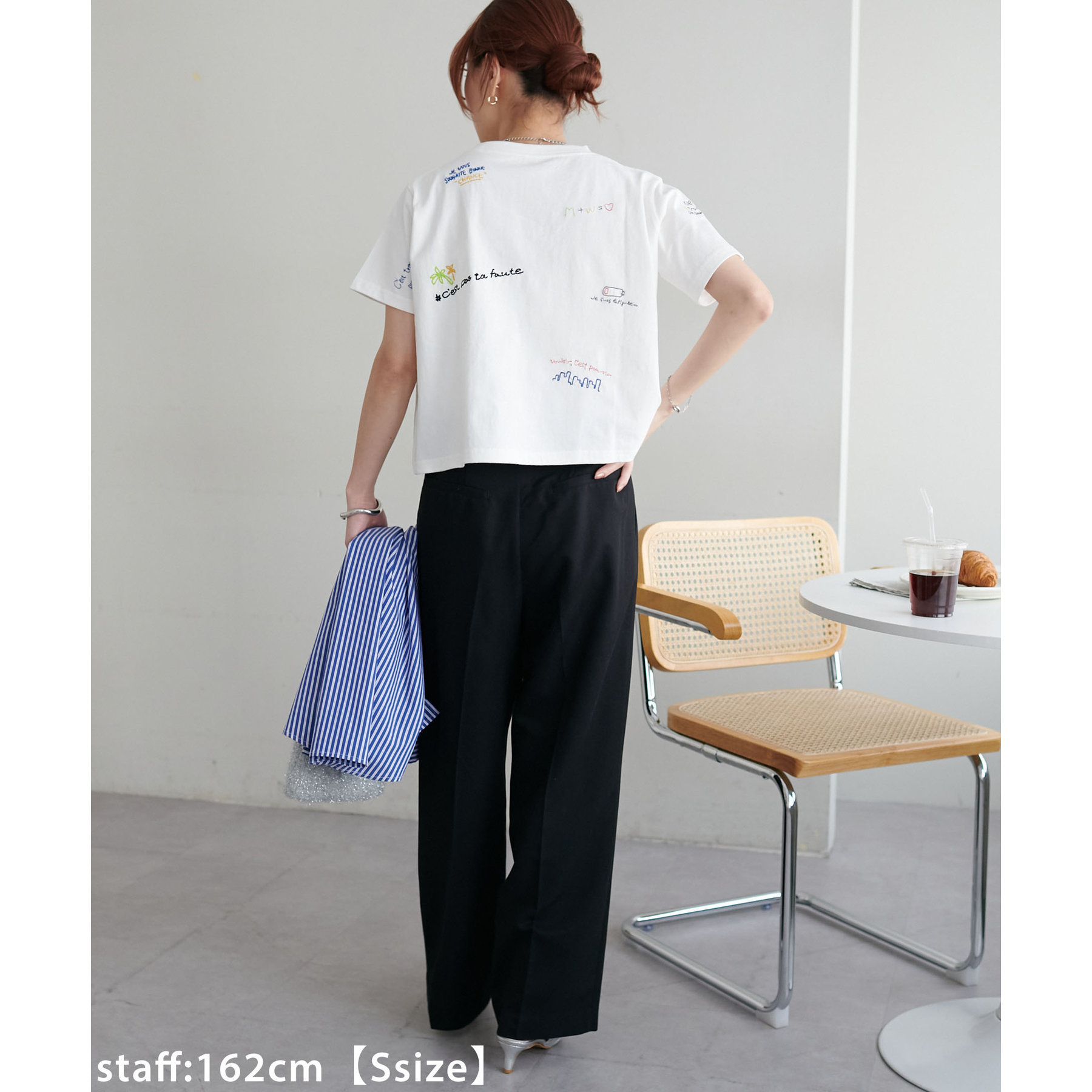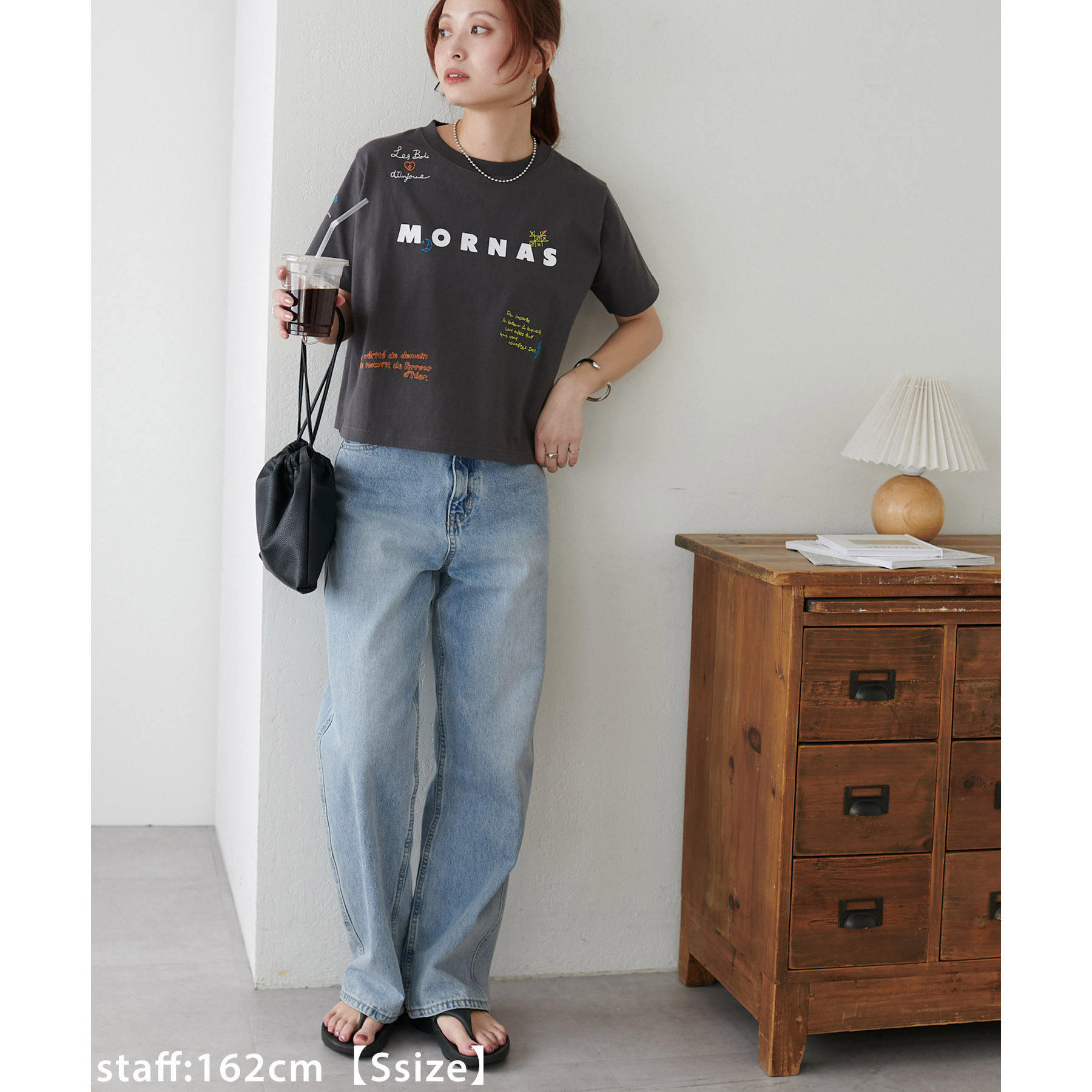 162cmレディーススタッフ(Fサイズ着用):シンプルなボトムス合わせでも、刺繍のデザインがおしゃれ見えします!