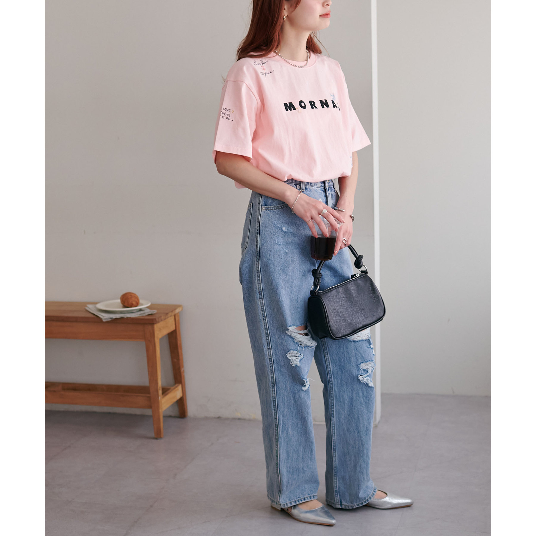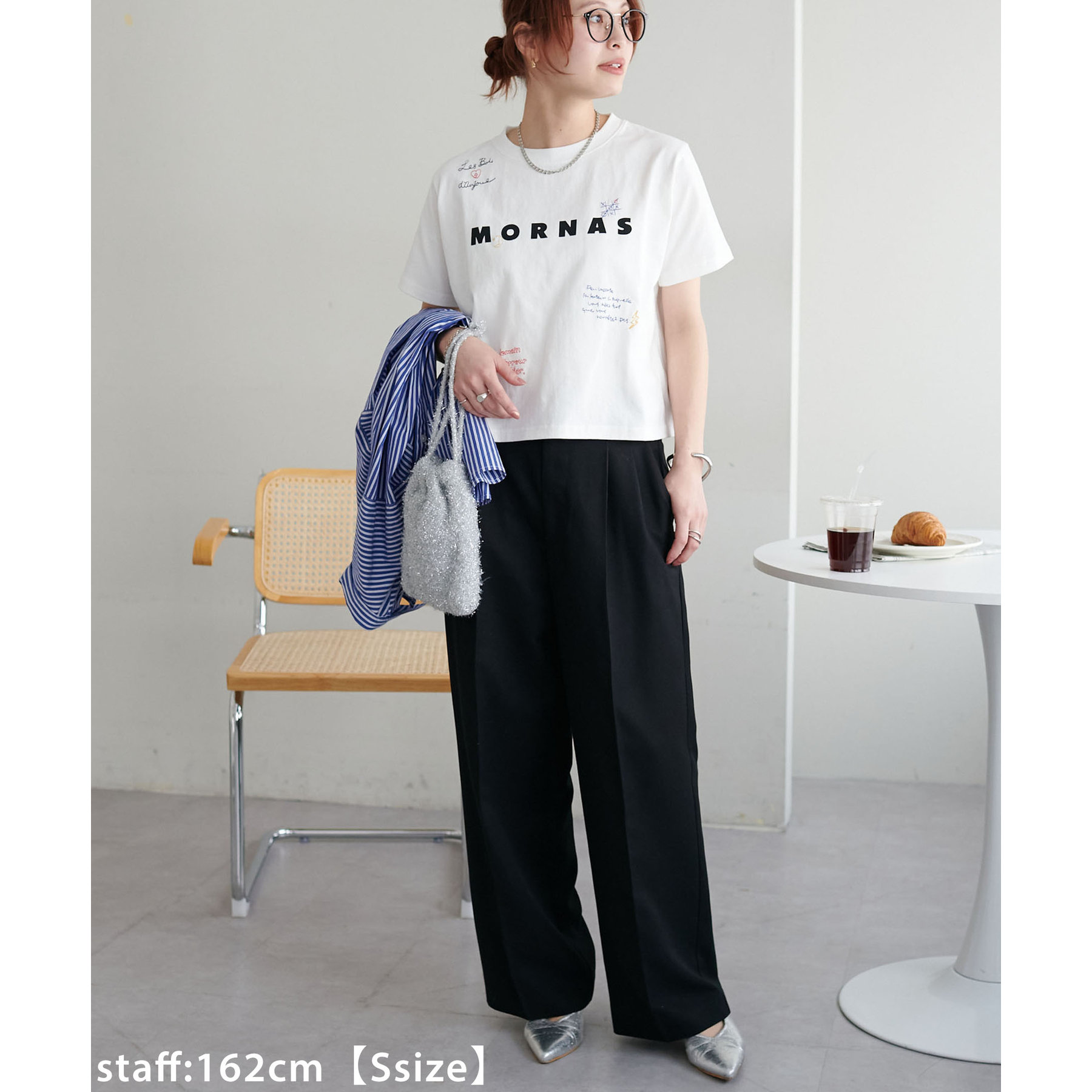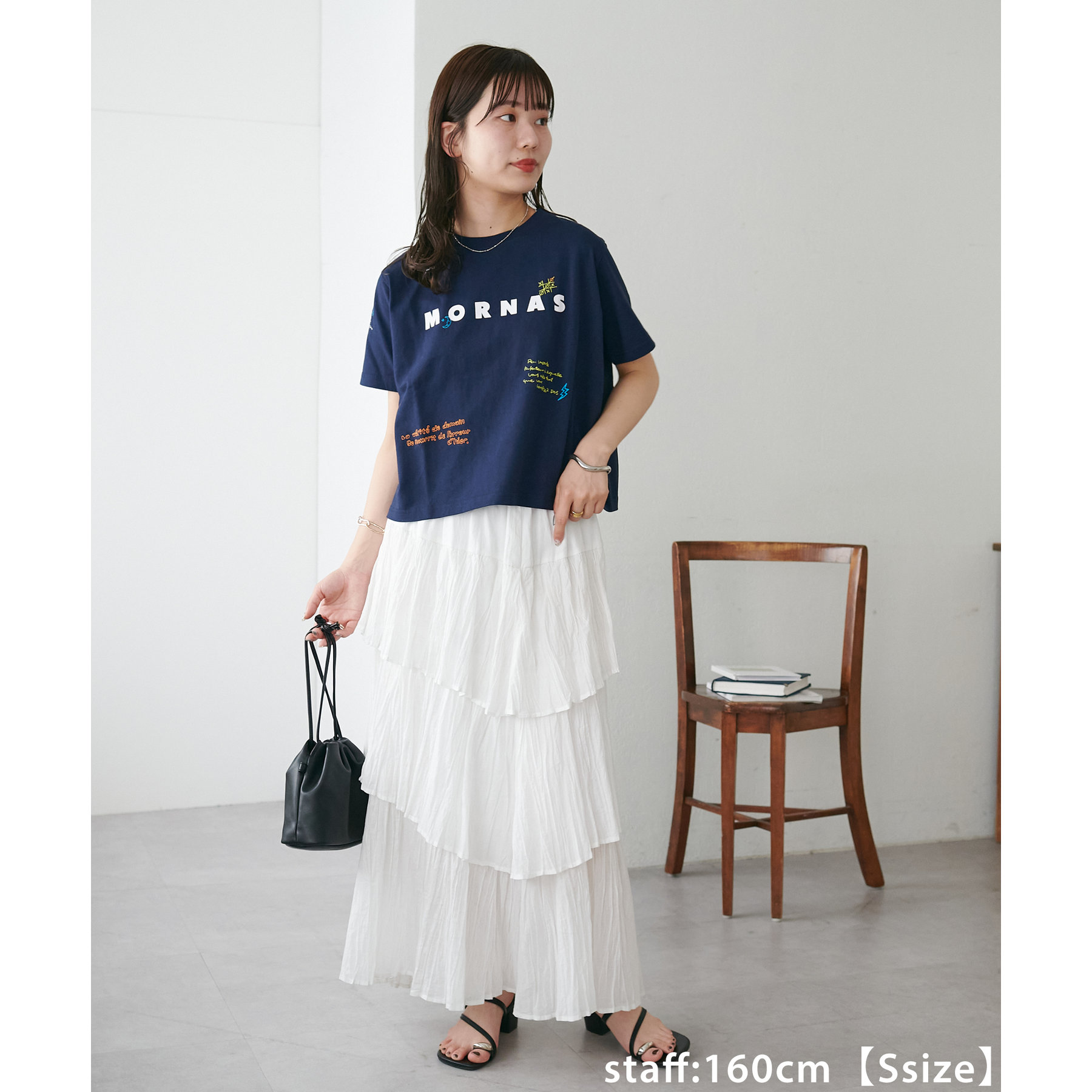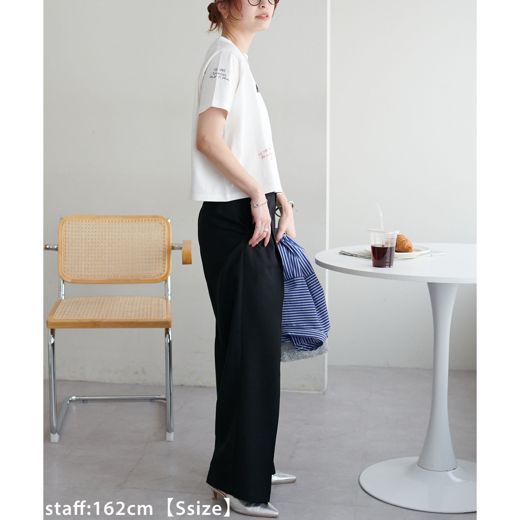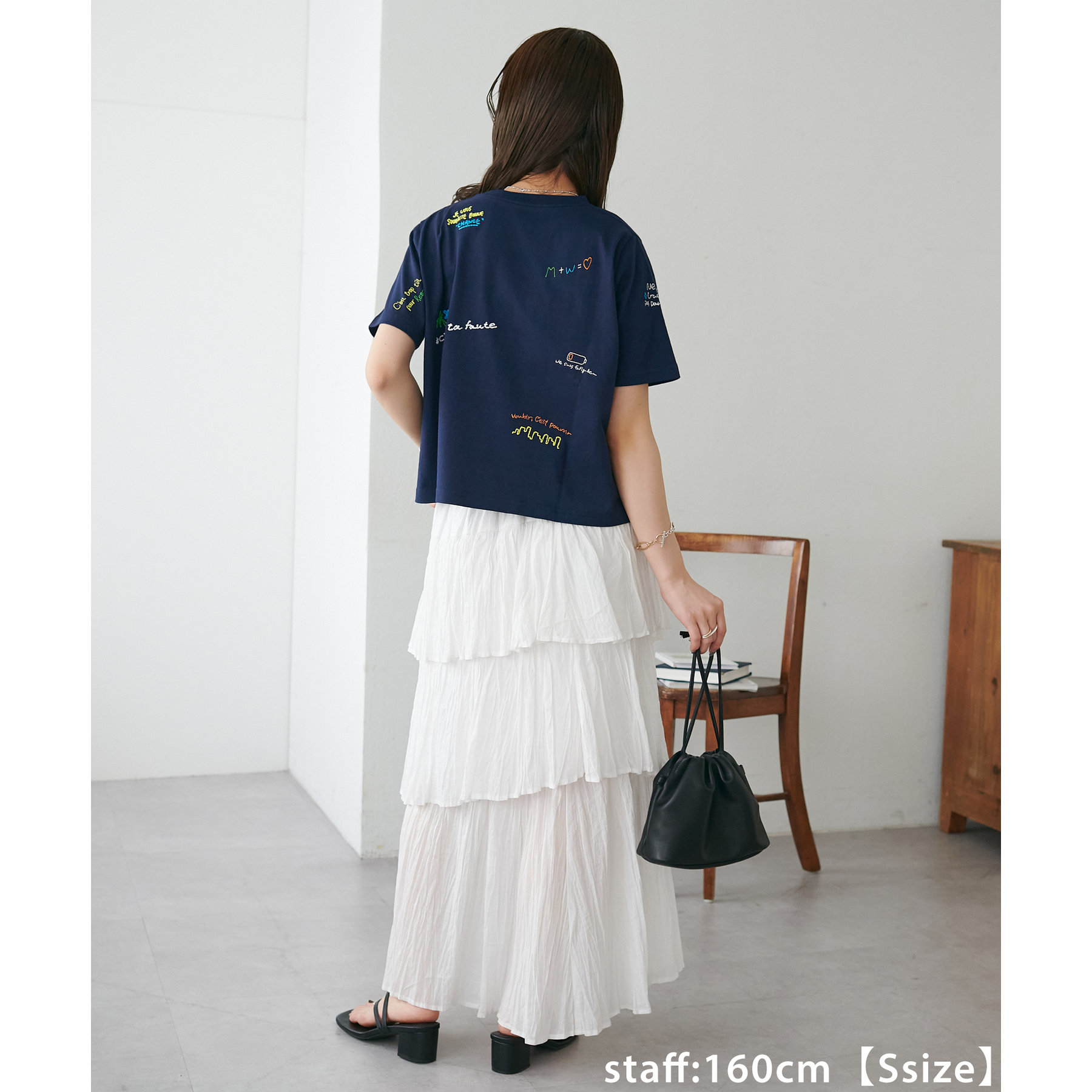 162cmレディーススタッフ(Fサイズ着用):シンプルなボトムス合わせでも、刺繍のデザインがおしゃれ見えします!