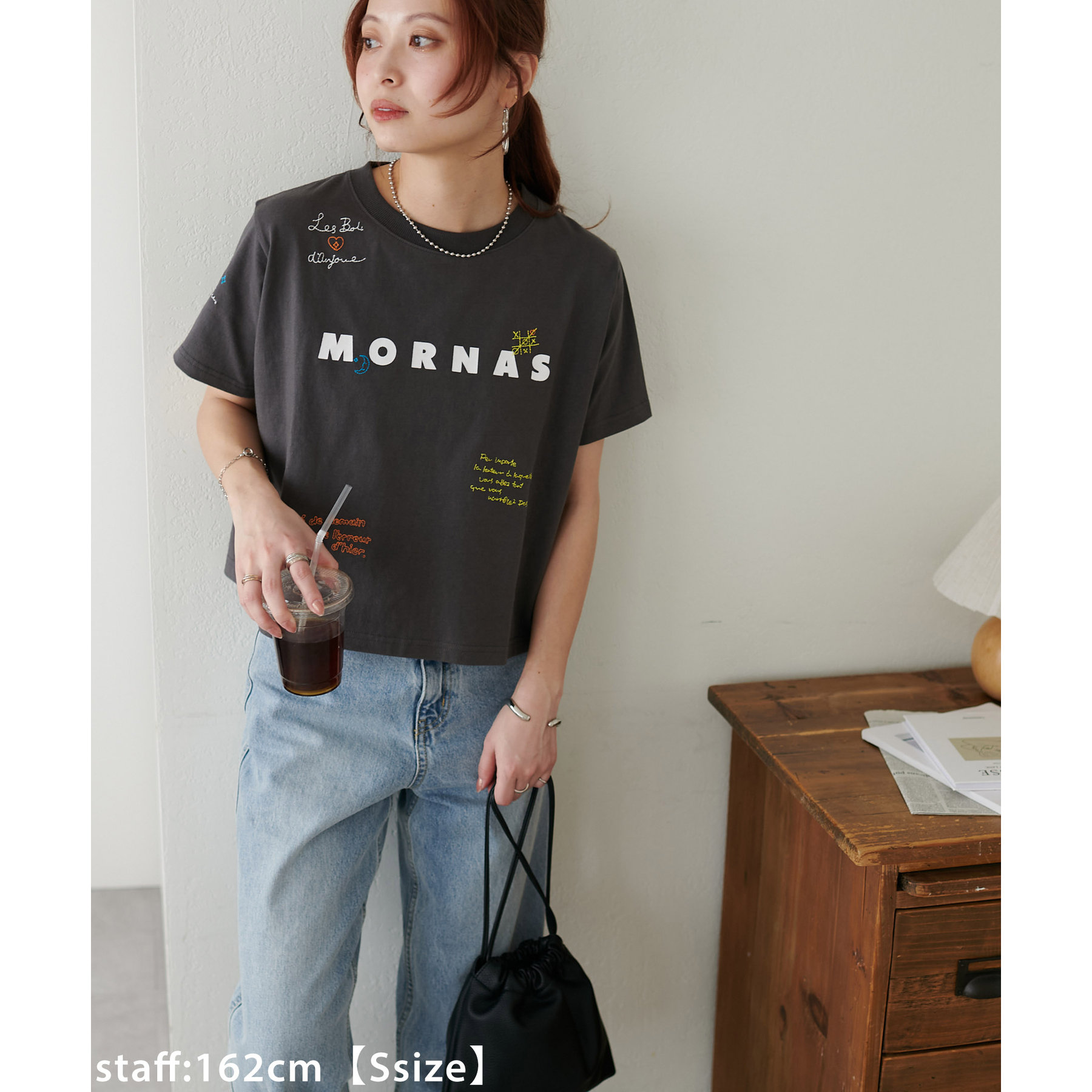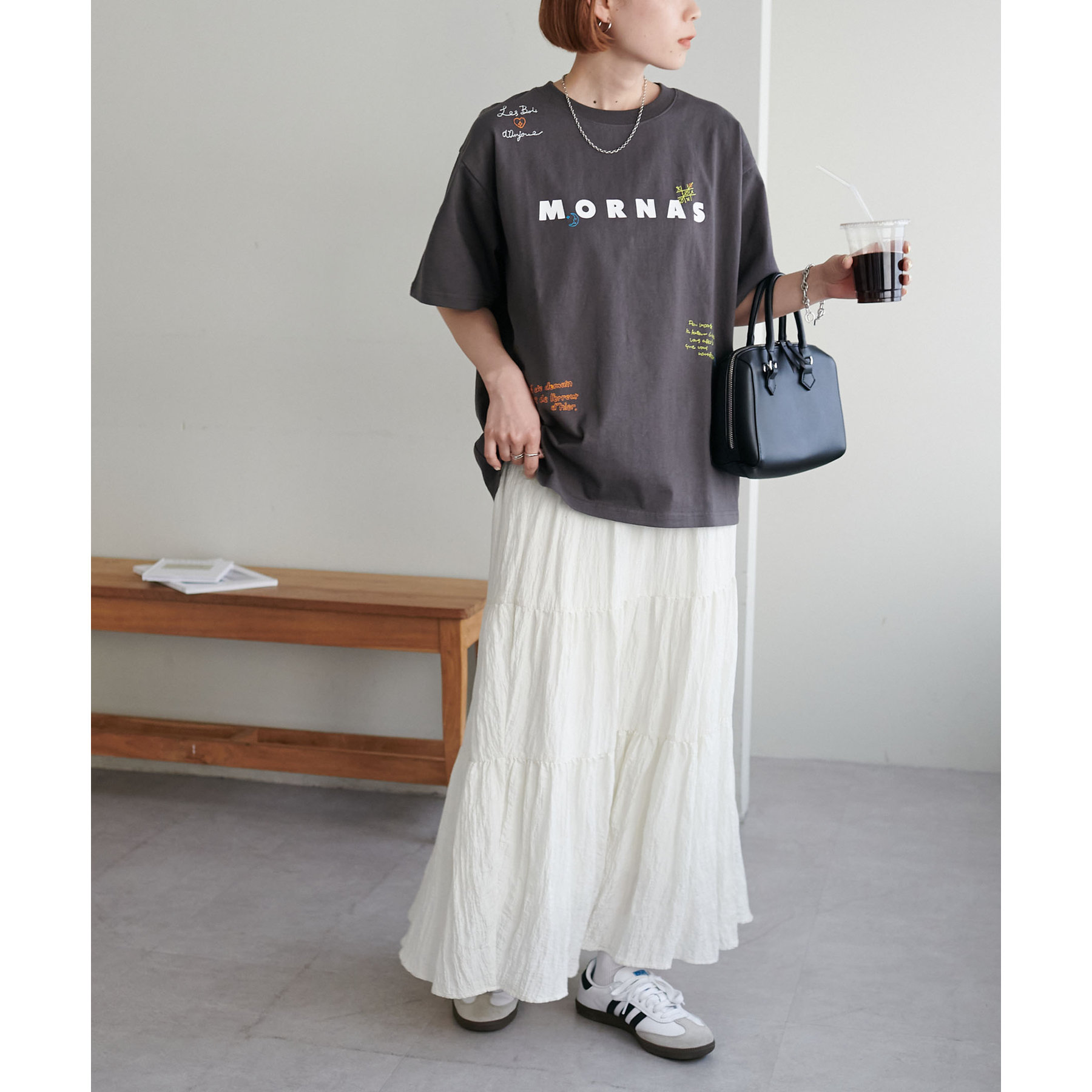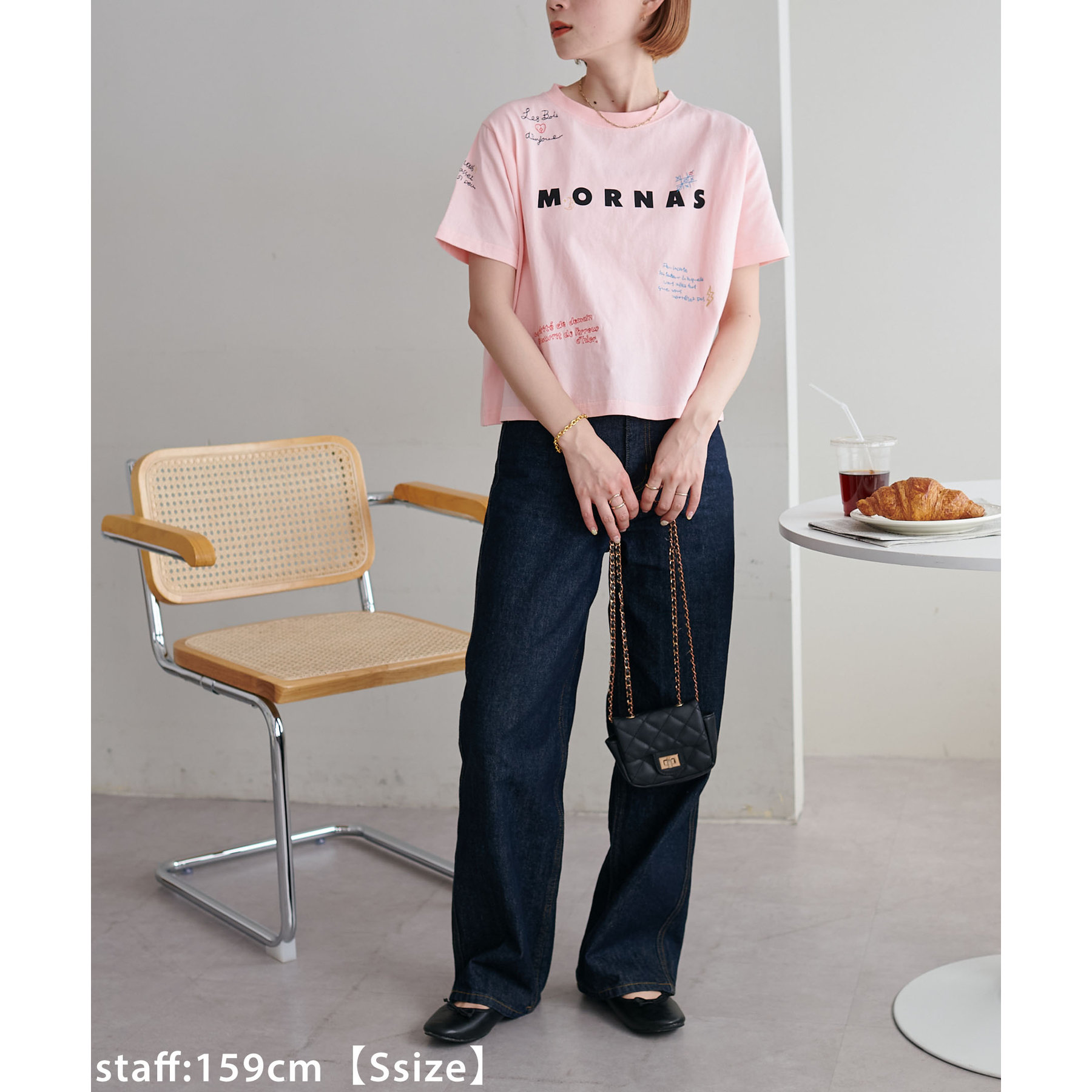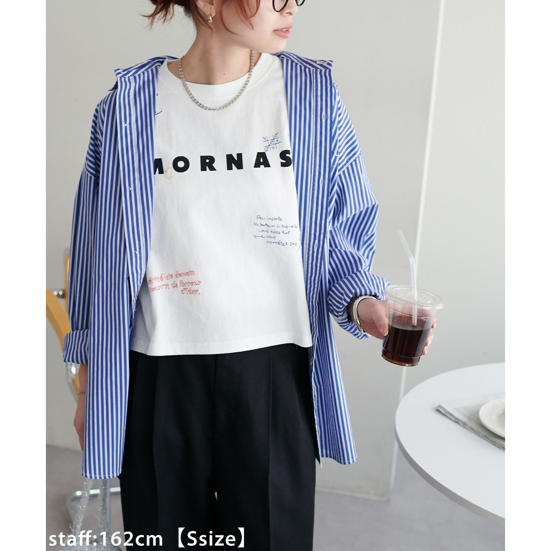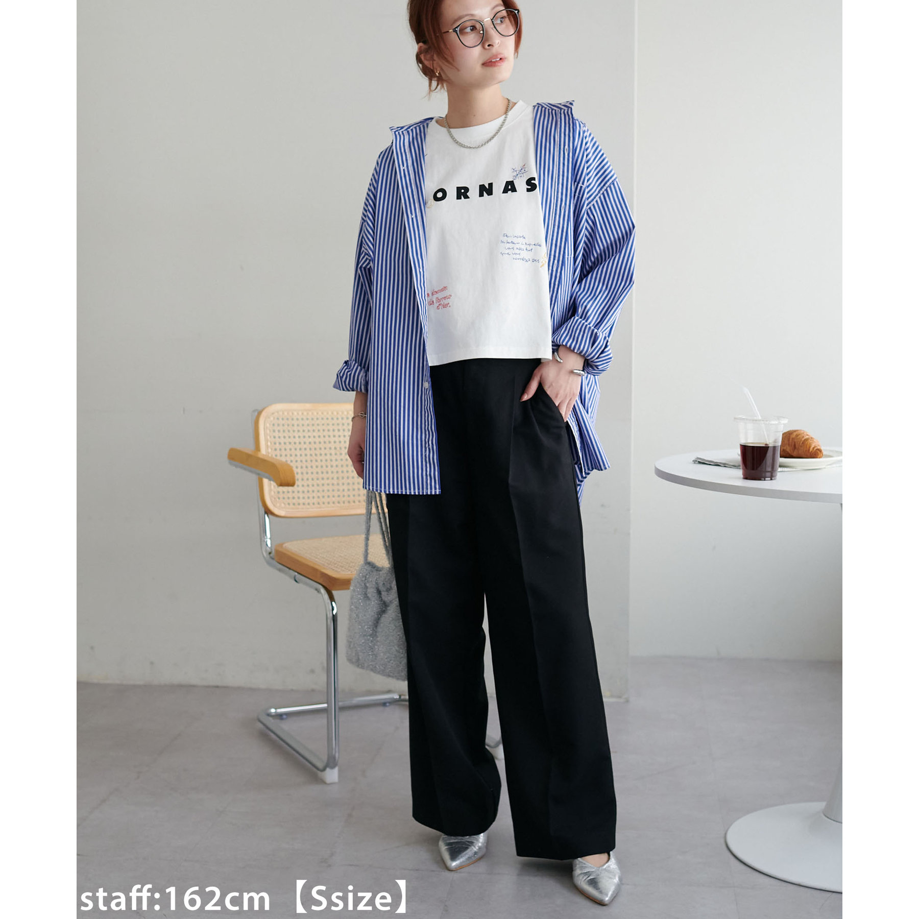 153cmレディーススタッフ(Sサイズ着用):カジュアルなTシャツですが、コンパクトめなSサイズは低身長が着ても着られている感が出ません!キャミワンピなどのインナーとしてもおすすめです。