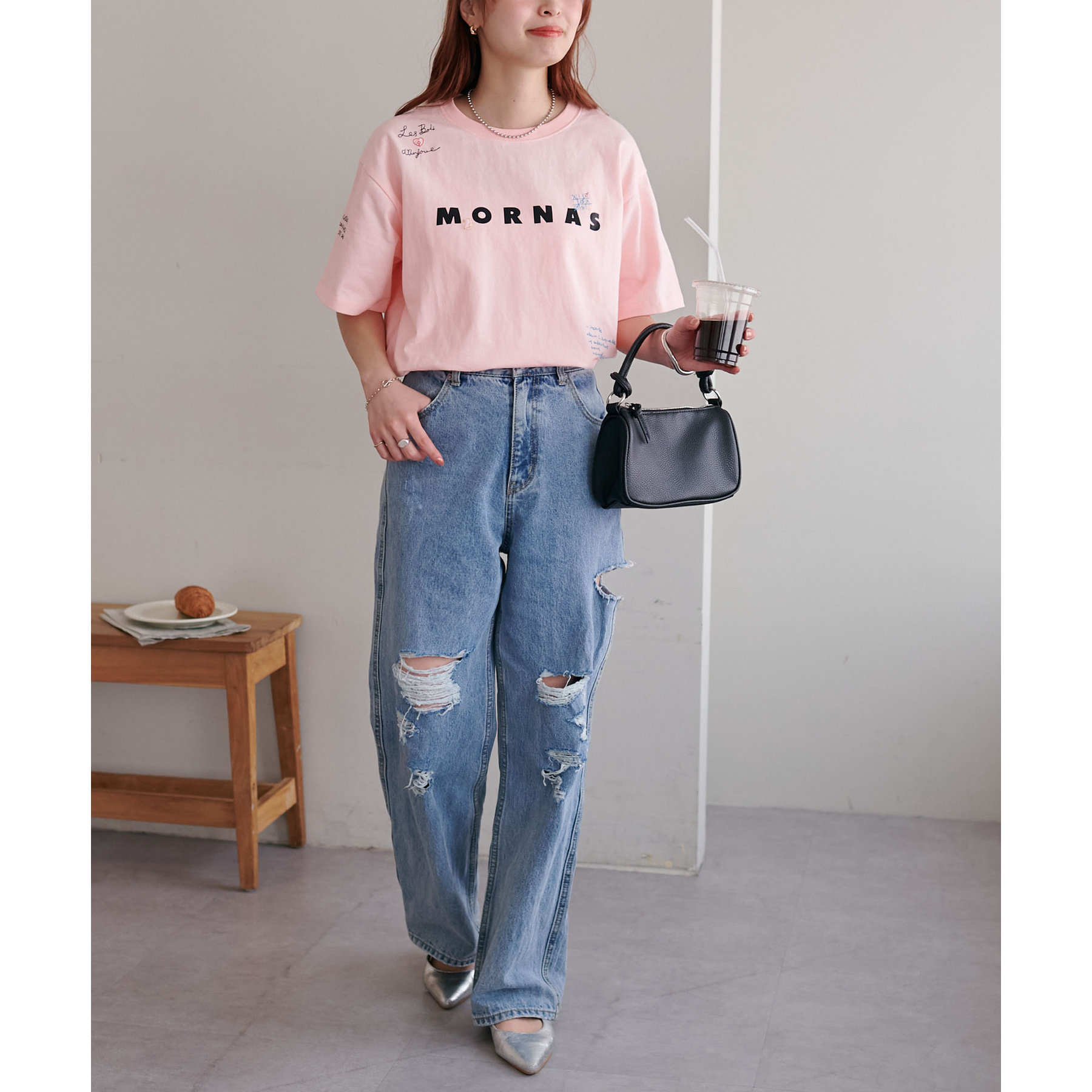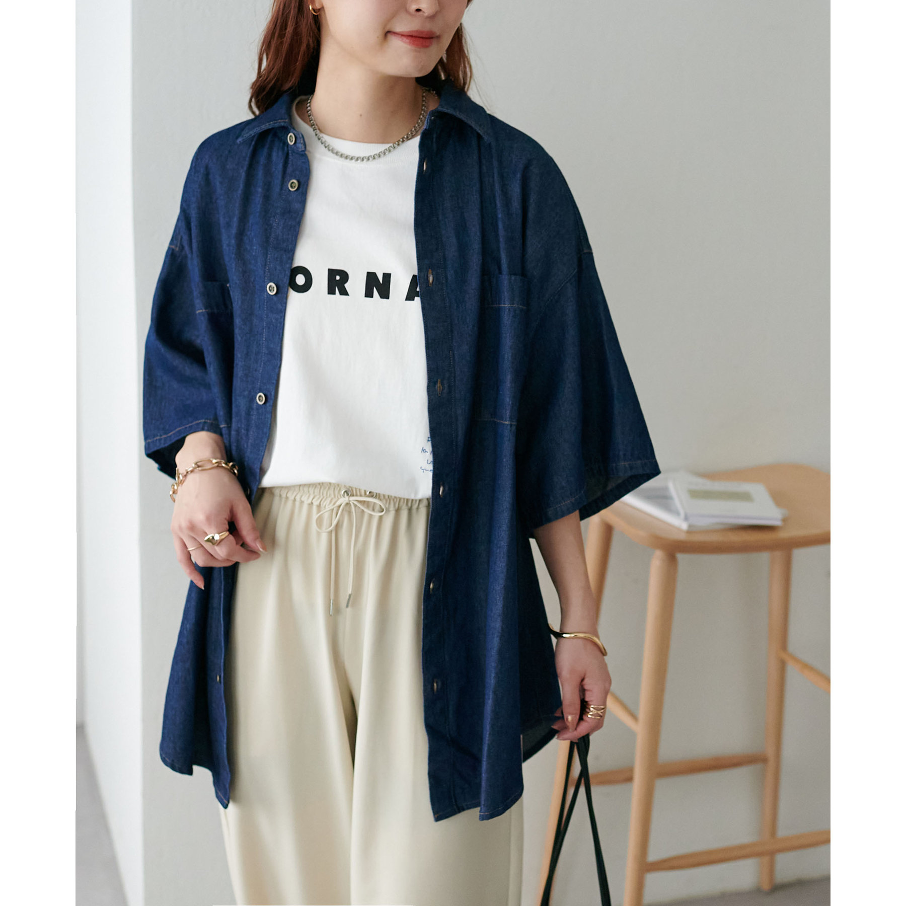 シンプルなデニムパンツと合わせるだけでコーデが決まります。