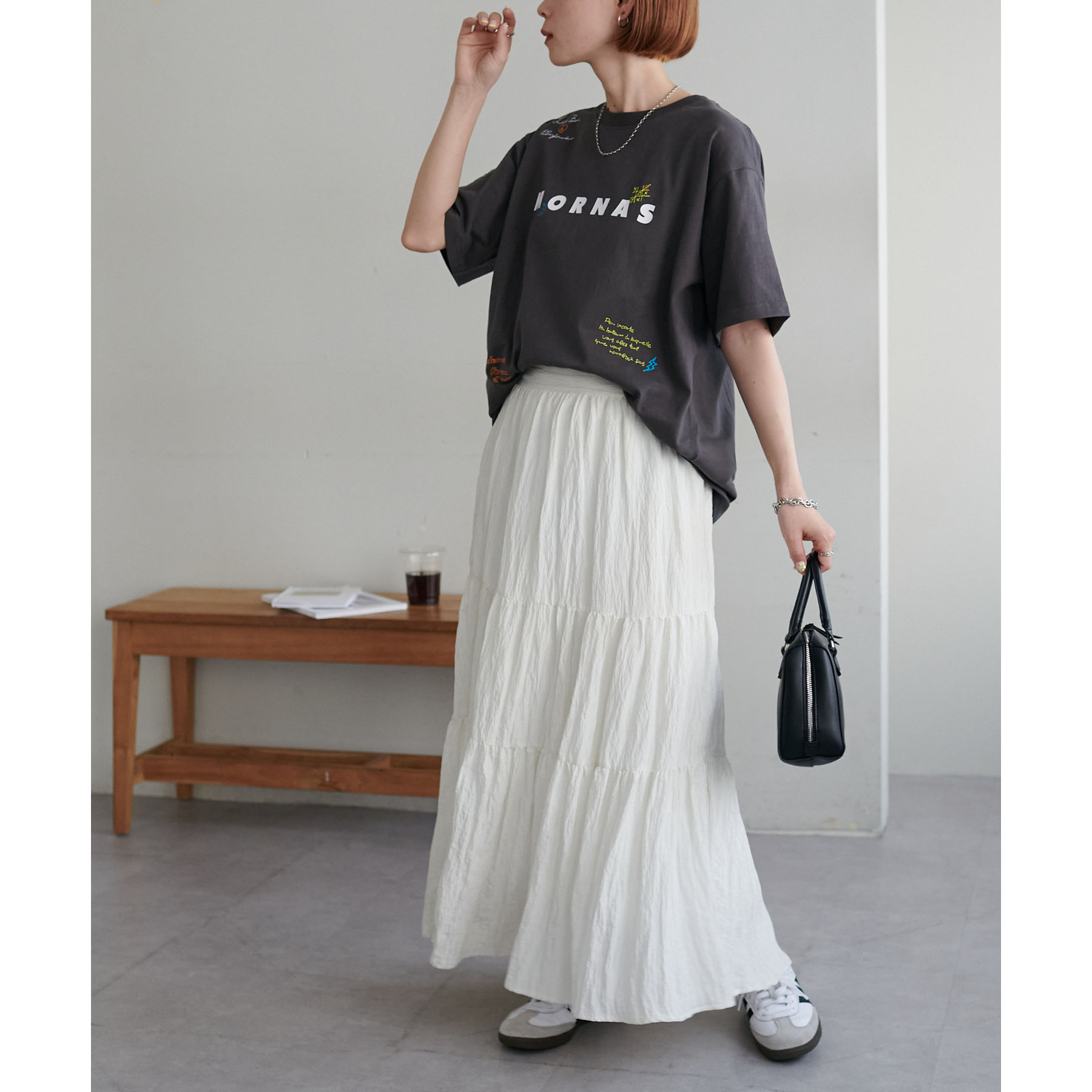 王道のデニムパンツと合わせてカジュアルに、フェミニンなフレアスカートやティアードスカート合わせもおすすめ◎
