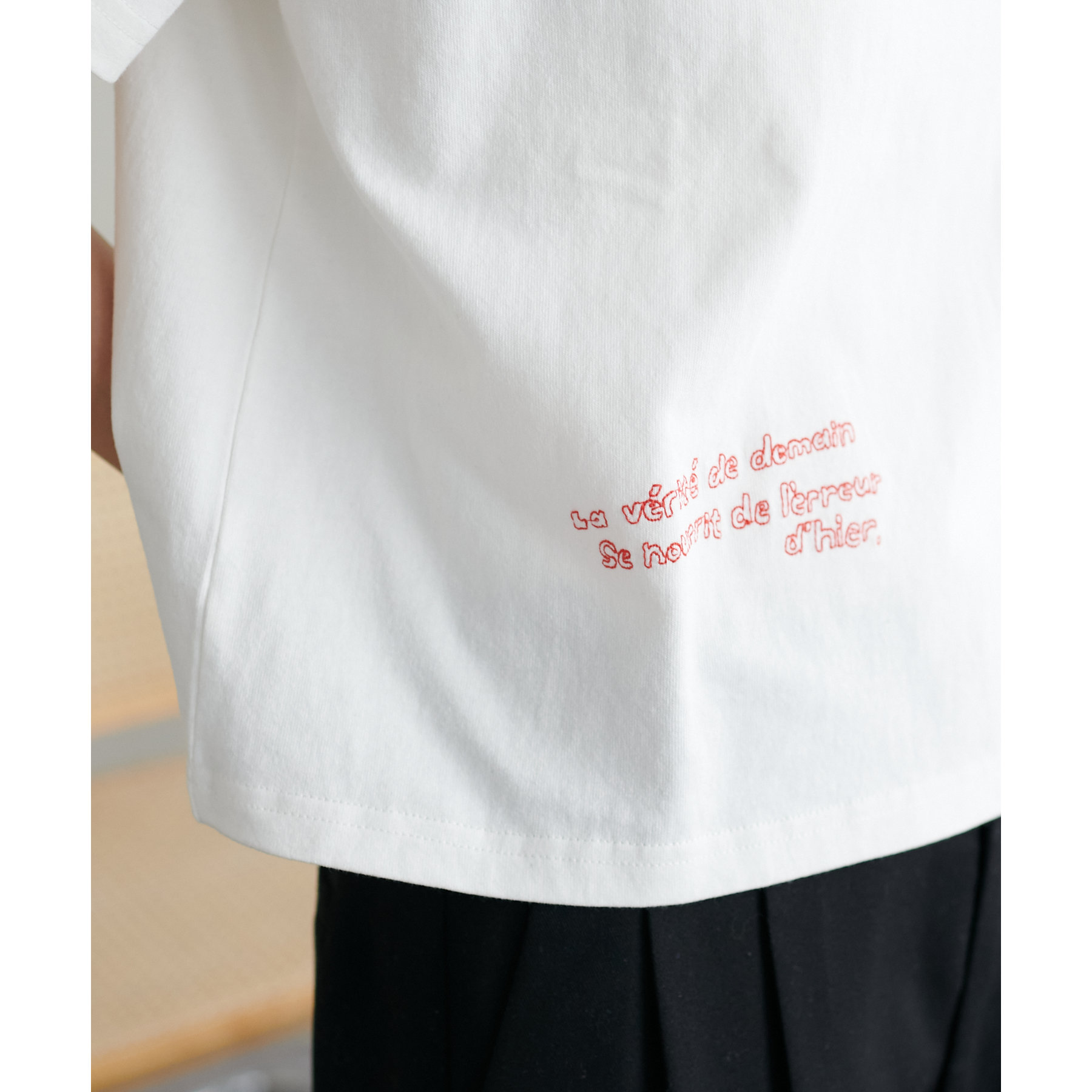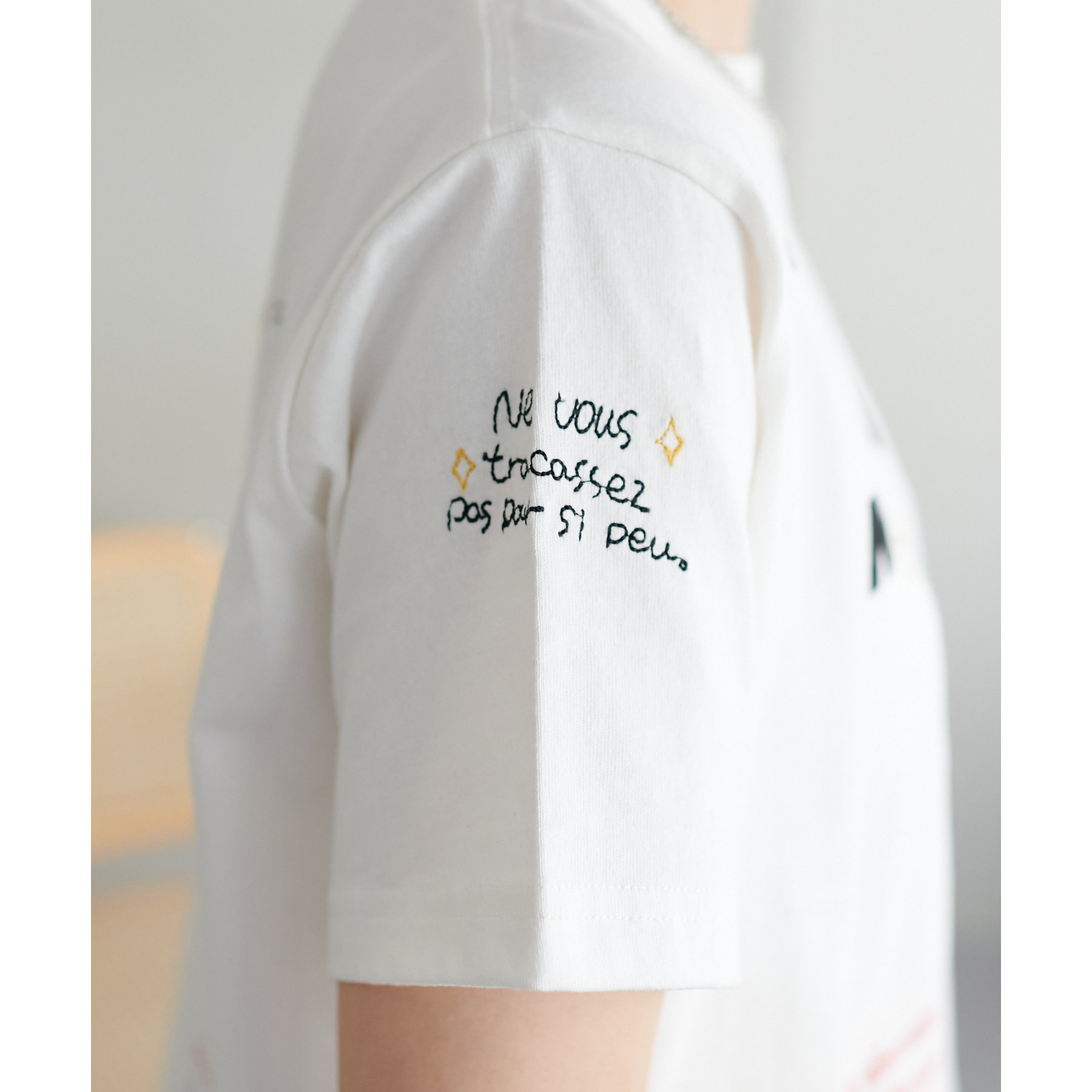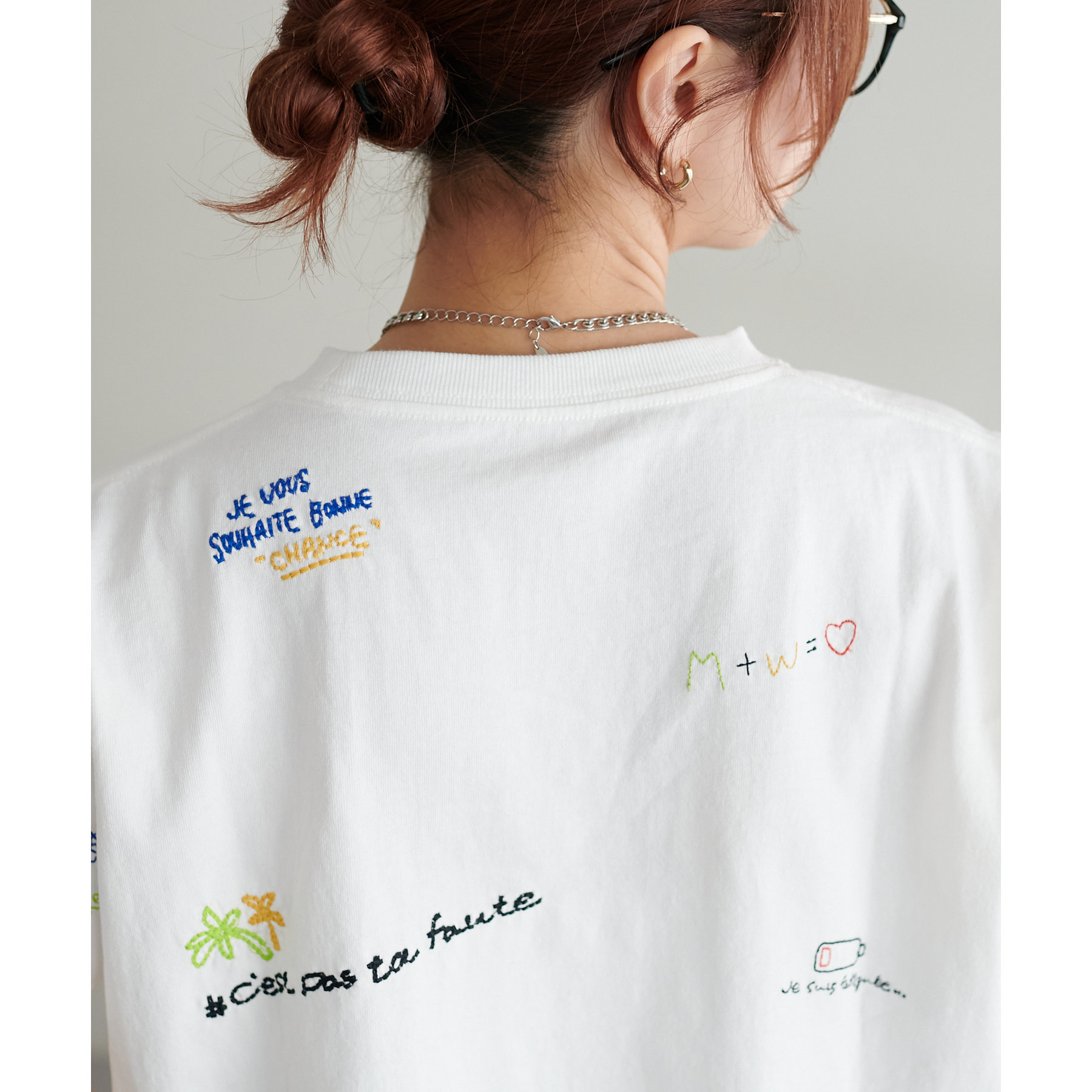 Tシャツ全体に様々な刺繍を施した遊び心のあるTシャツ。