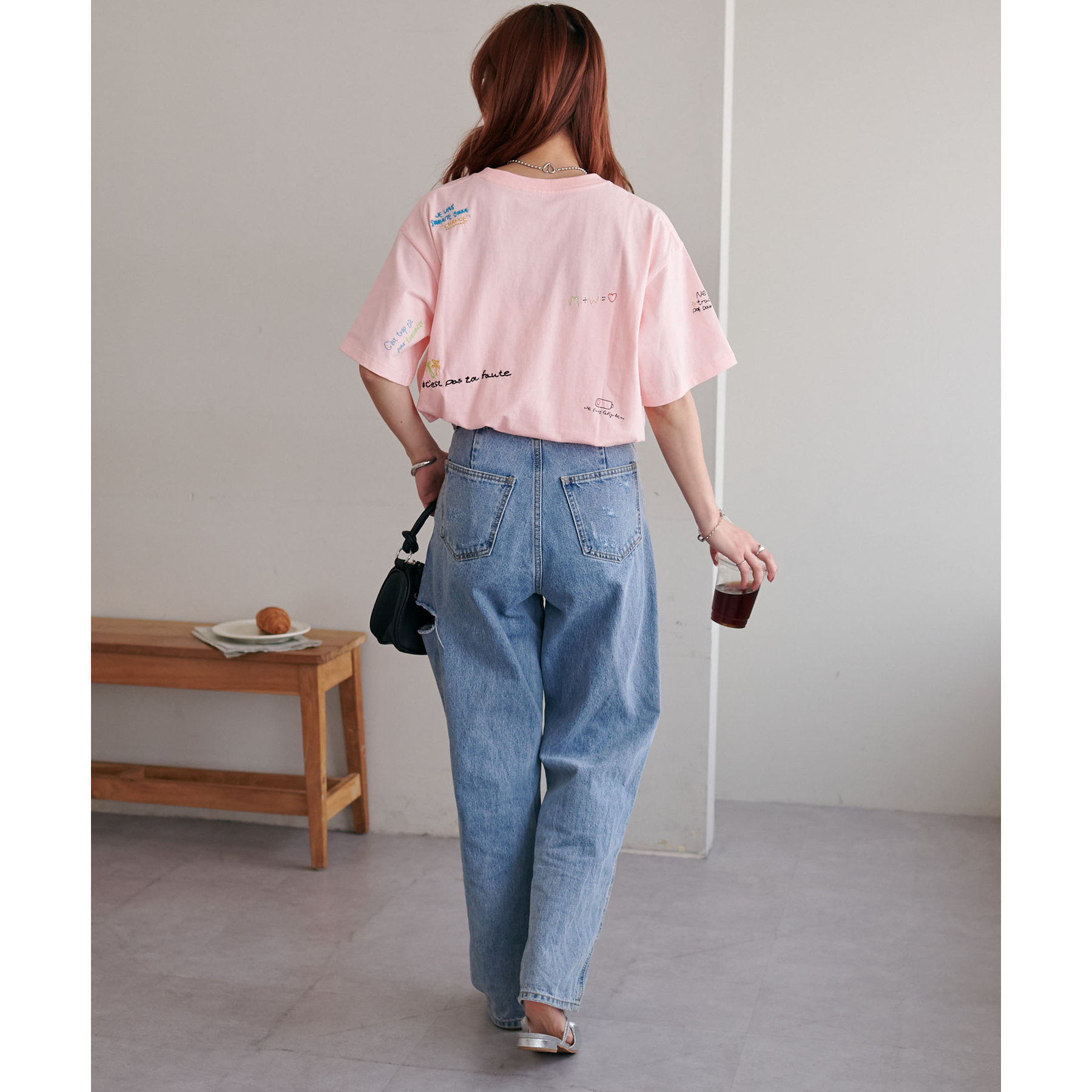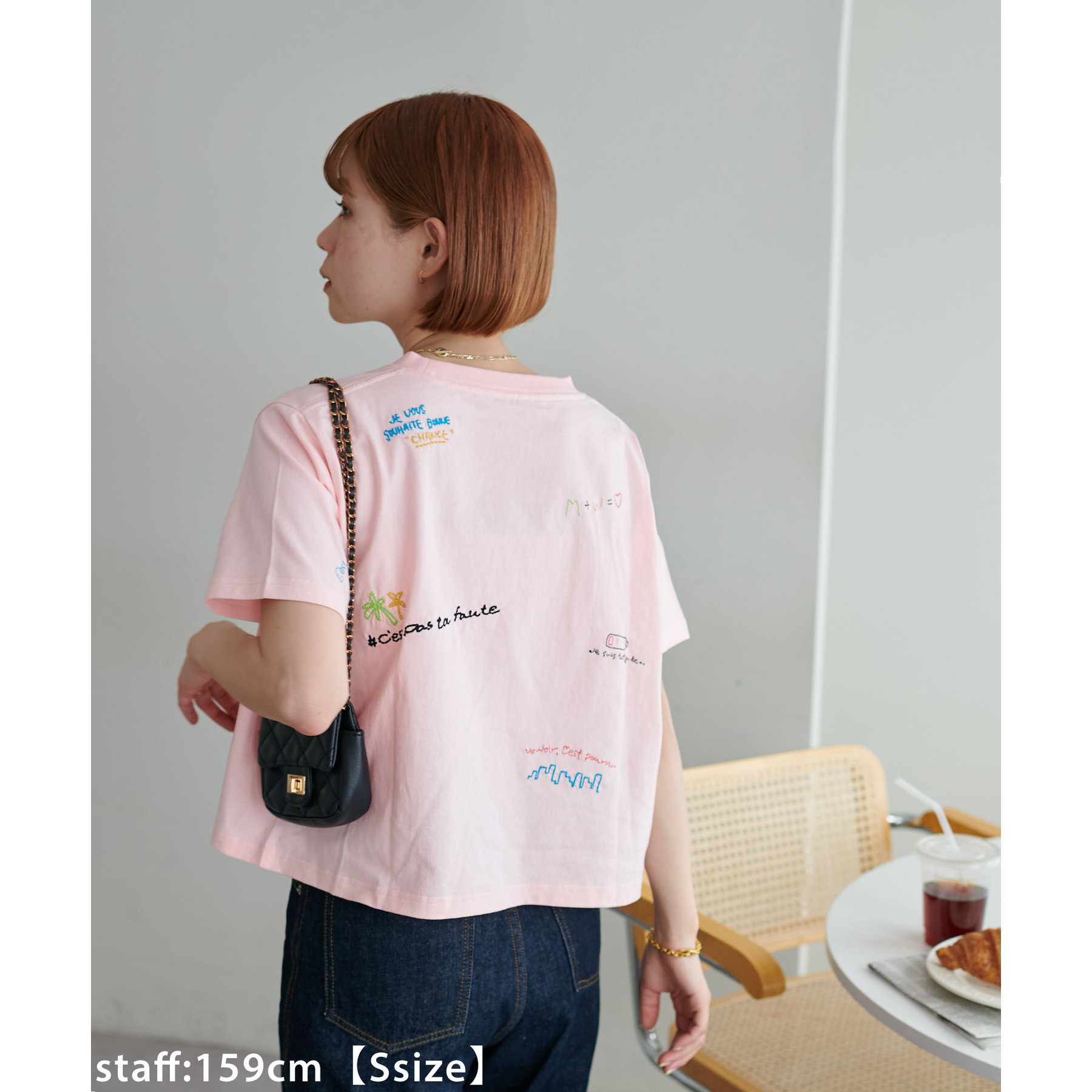 カラフルな刺繍デザインが目を惹き、後ろ姿までも可愛い一枚です。