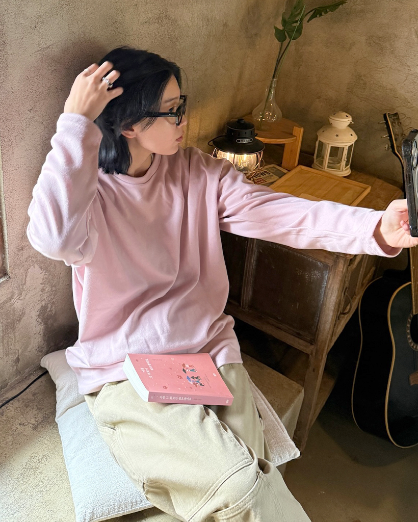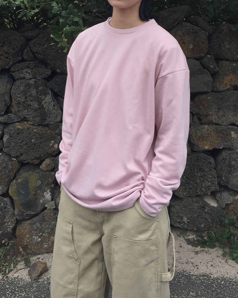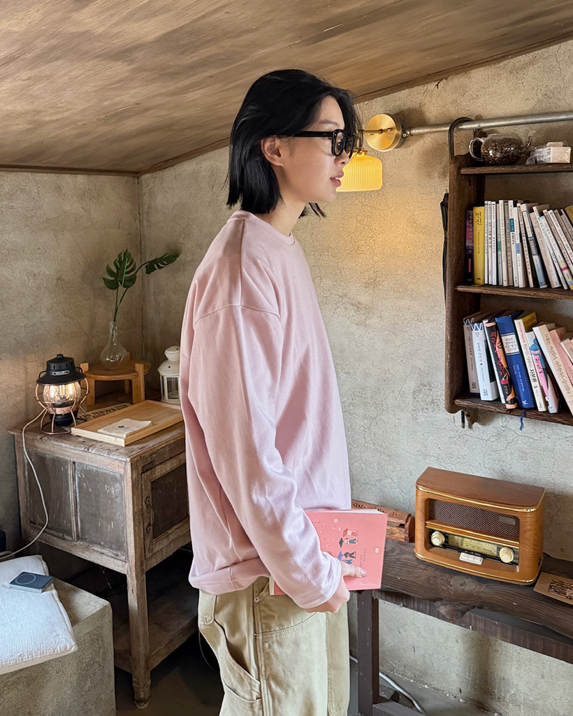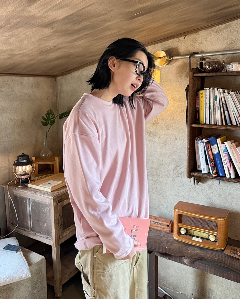 (ユニセックス)ルーズフィットカラフルラウンドネックTシャツ