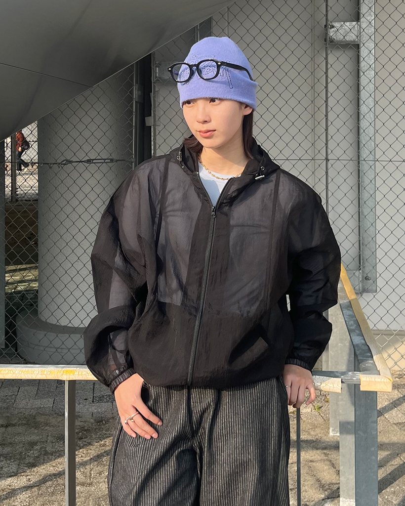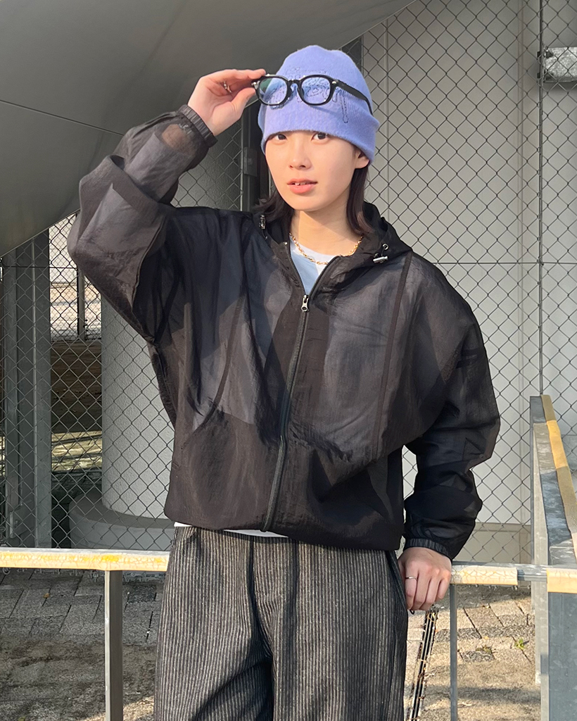 (ユニセックス)メッシュフードウィンドブレーカージャケット