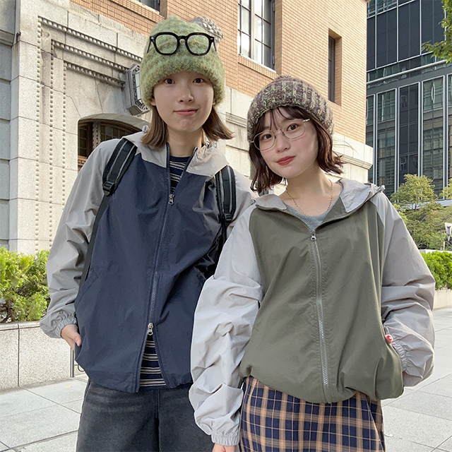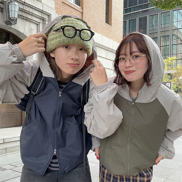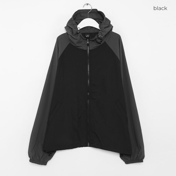 (ユニセックス)ラグランディテールフード付きマウンテンパーカー