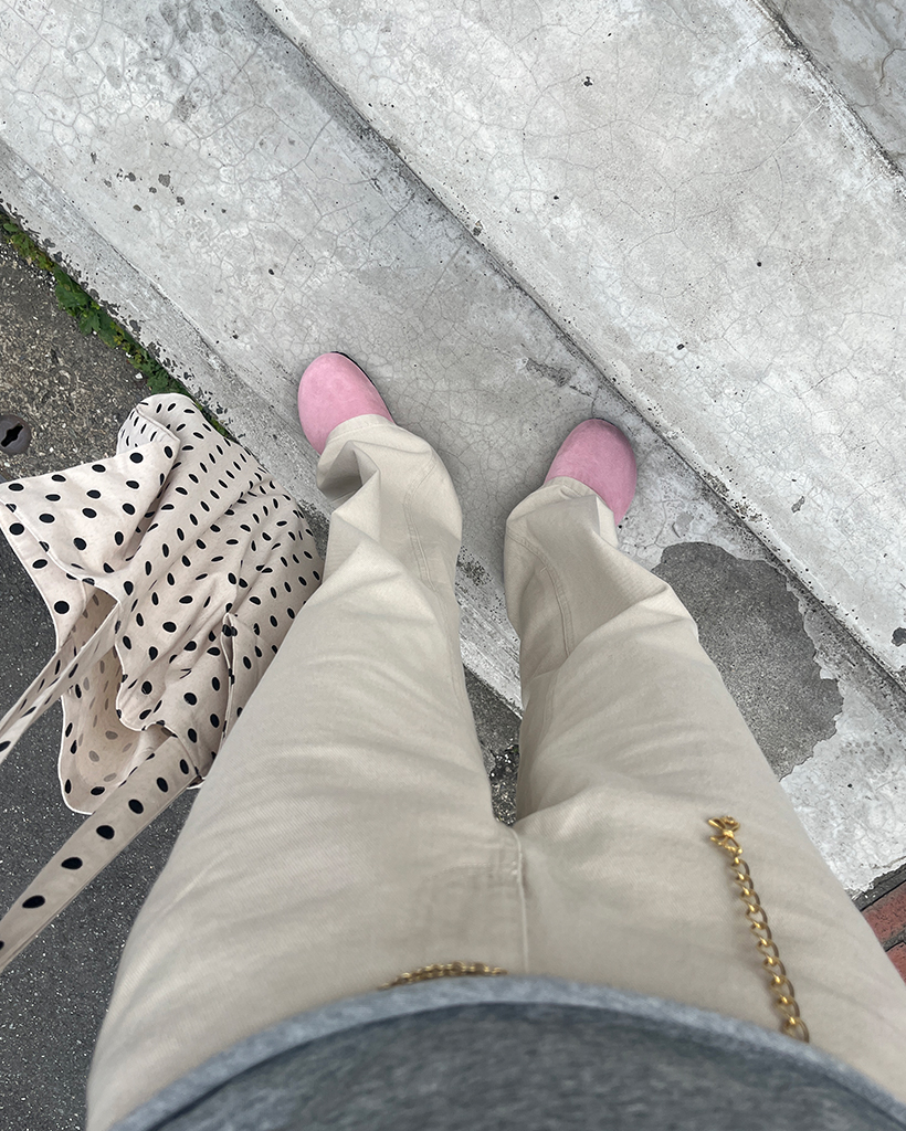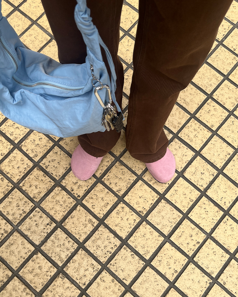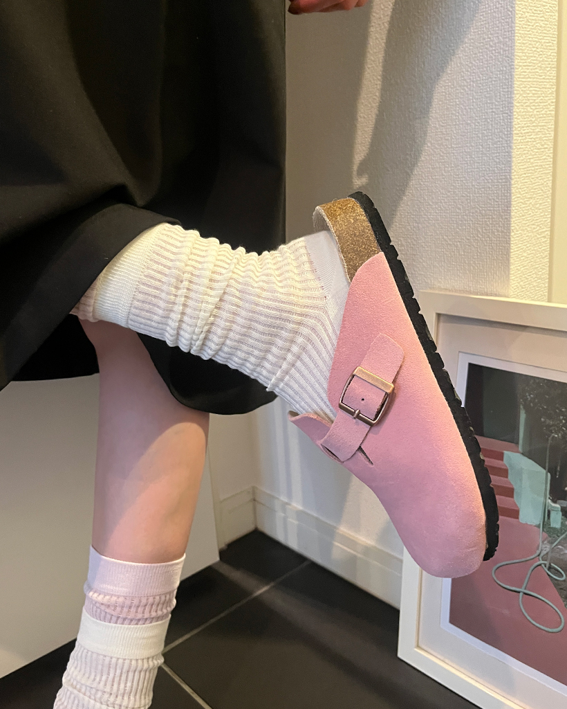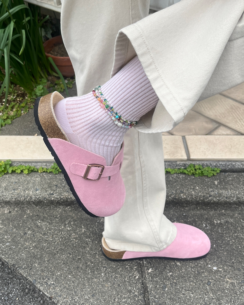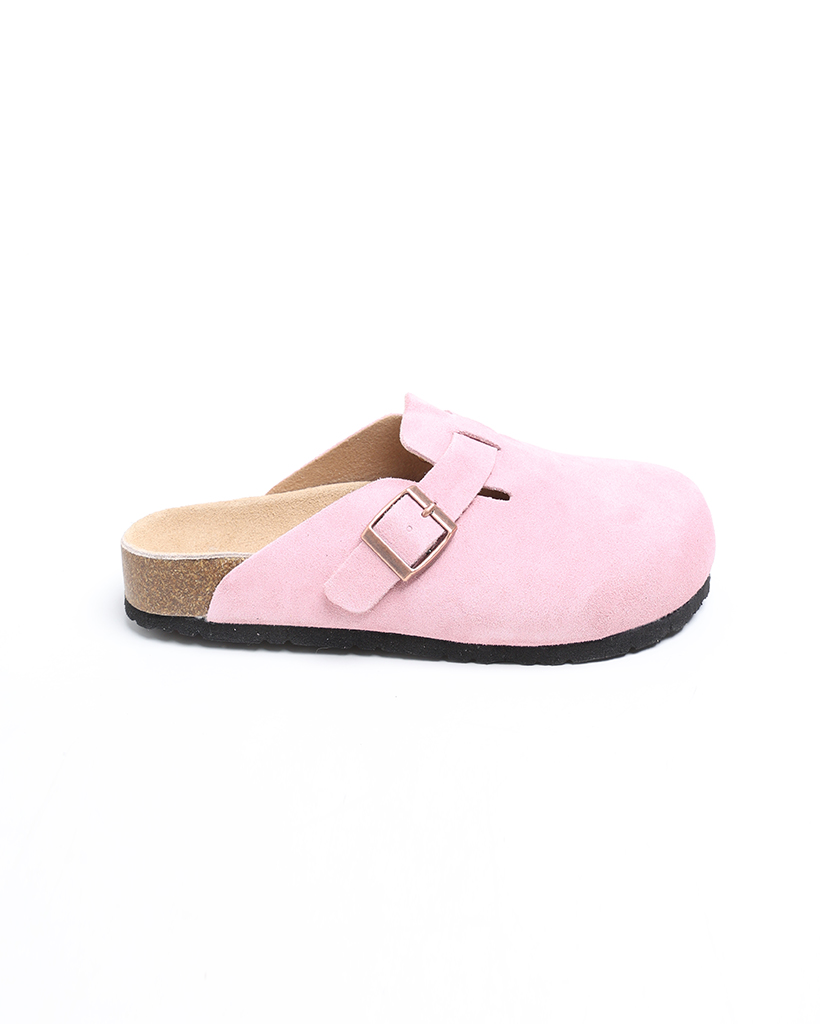 スエードバックルポイントミュール