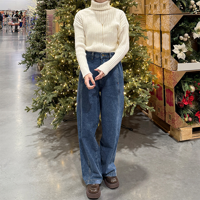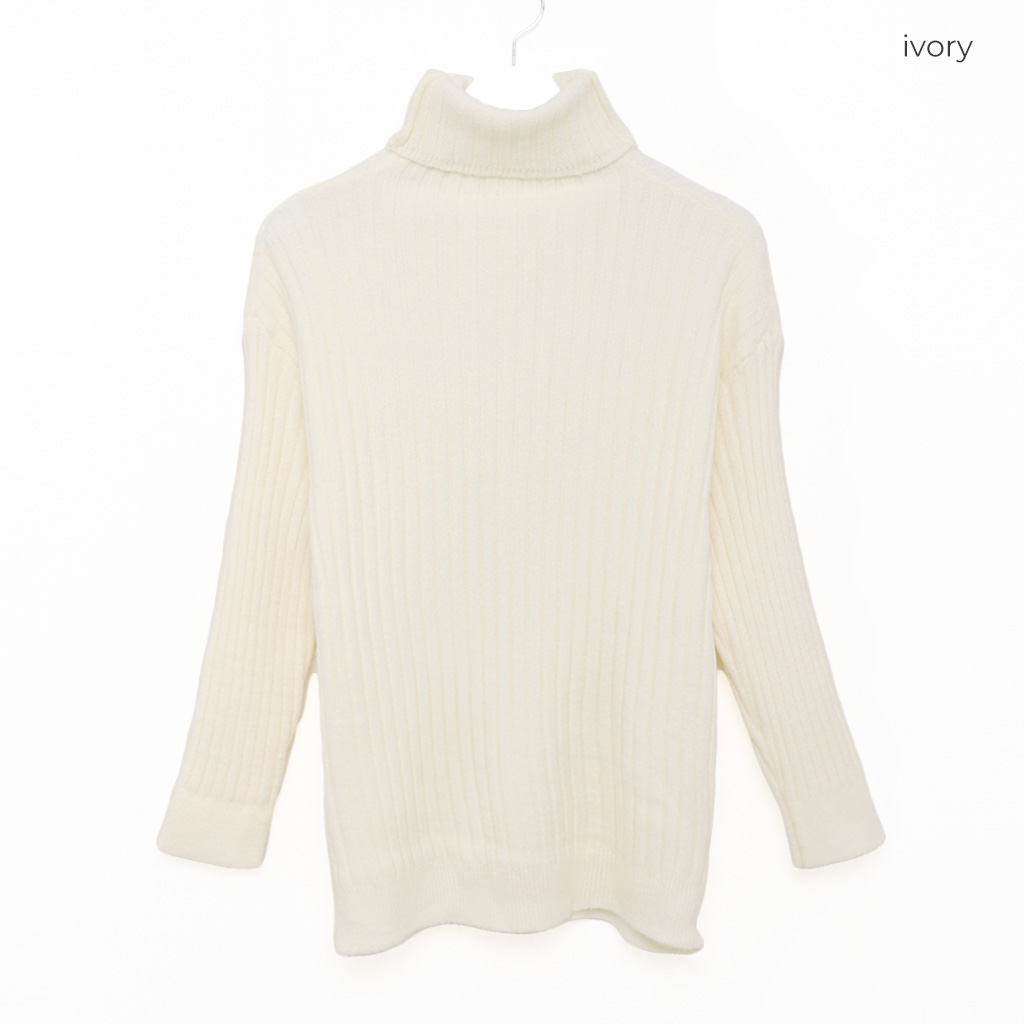 ルーズフィットリブタートルネックニット