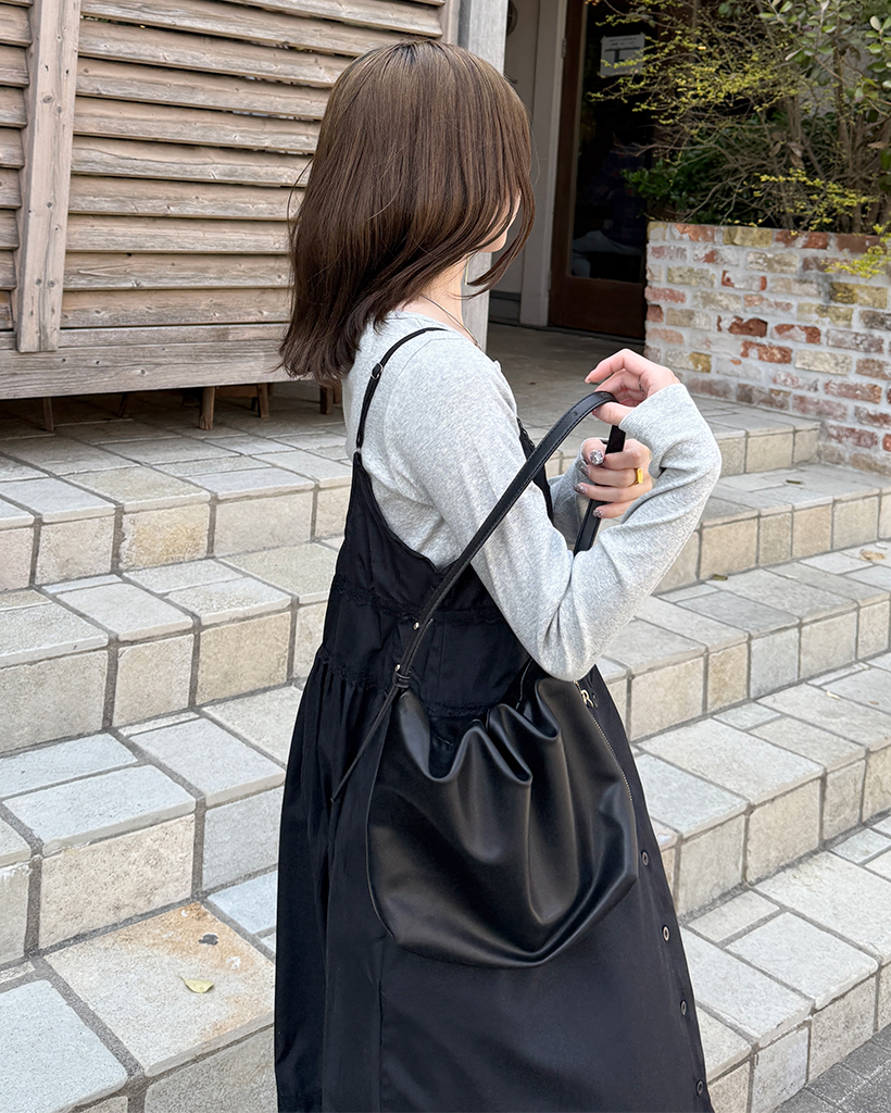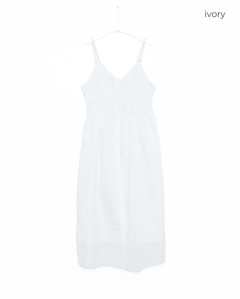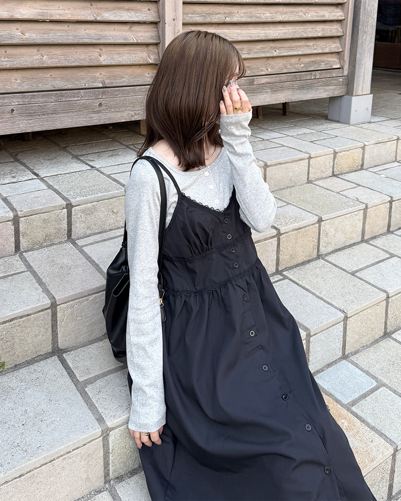 Vネックボタンスリップロングワンピース