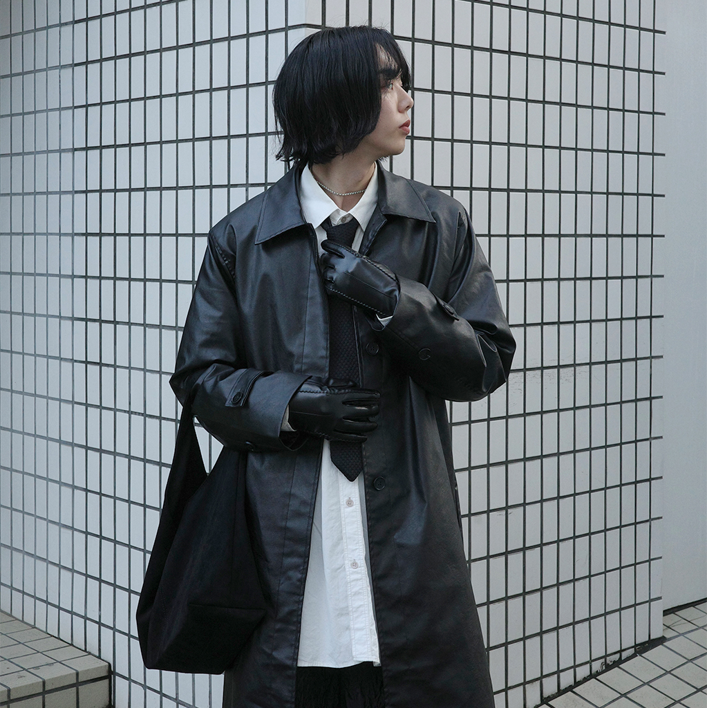 (ユニセックス)レザーロングジャケット