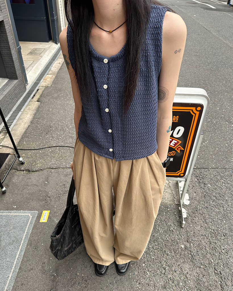 ラウンドニットベストカーディガン