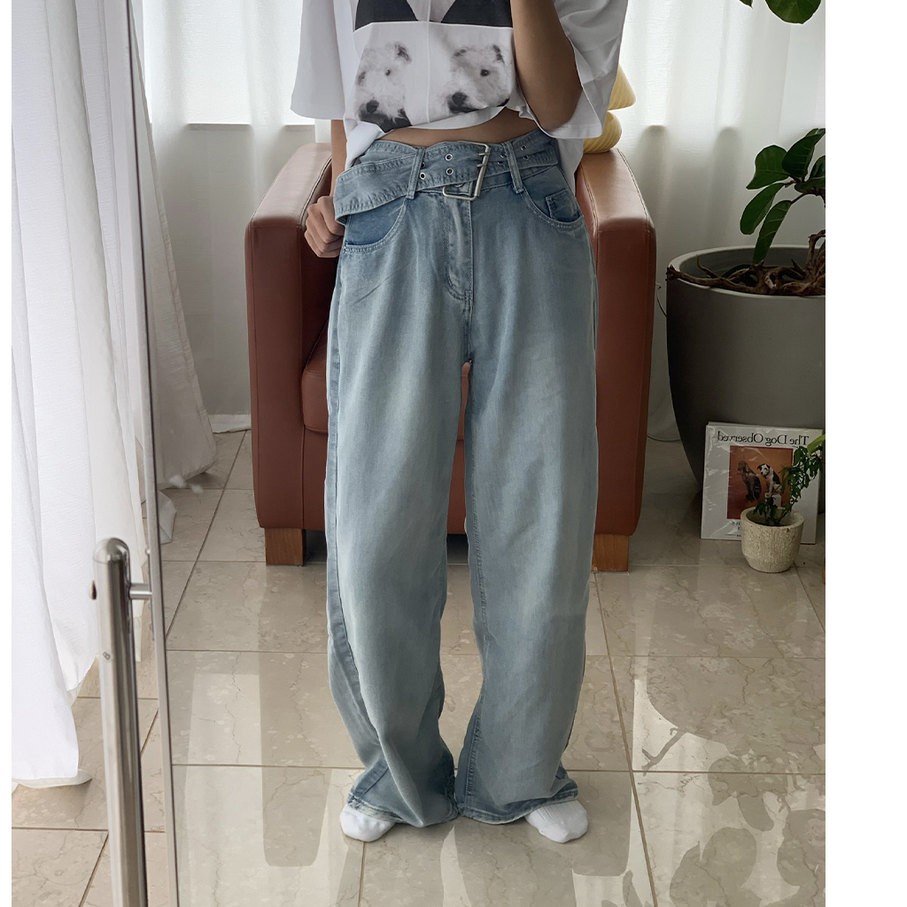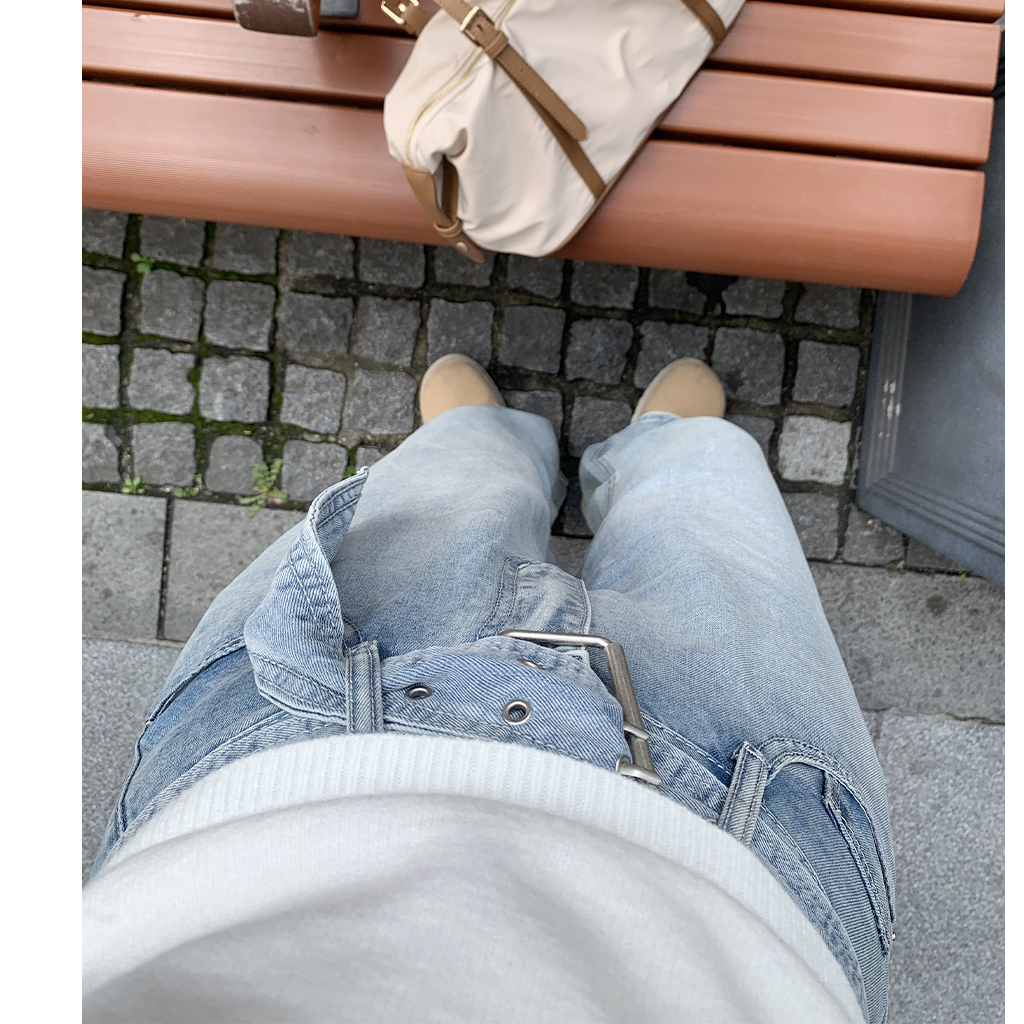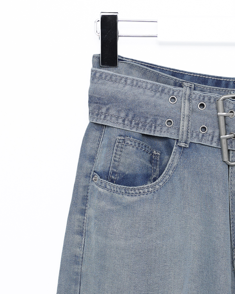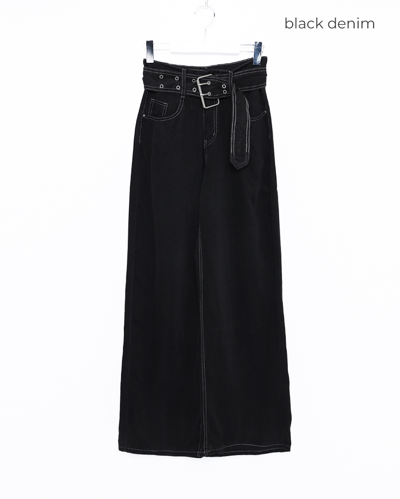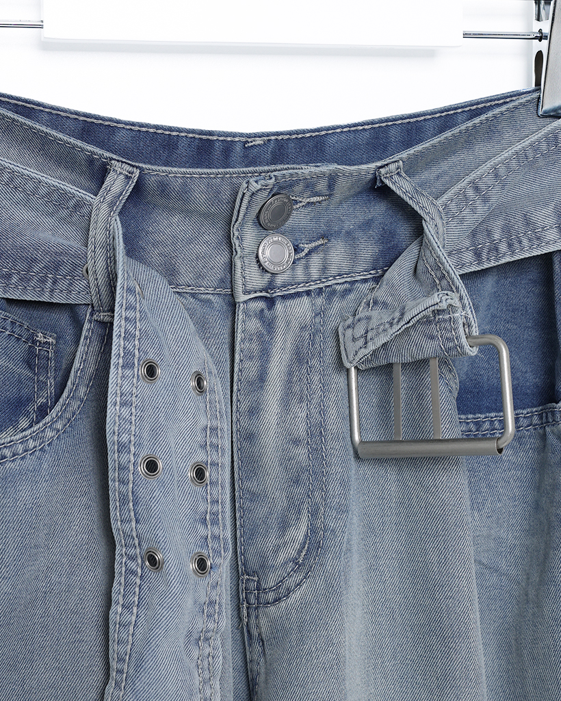 ベルトステッチデニムパンツ