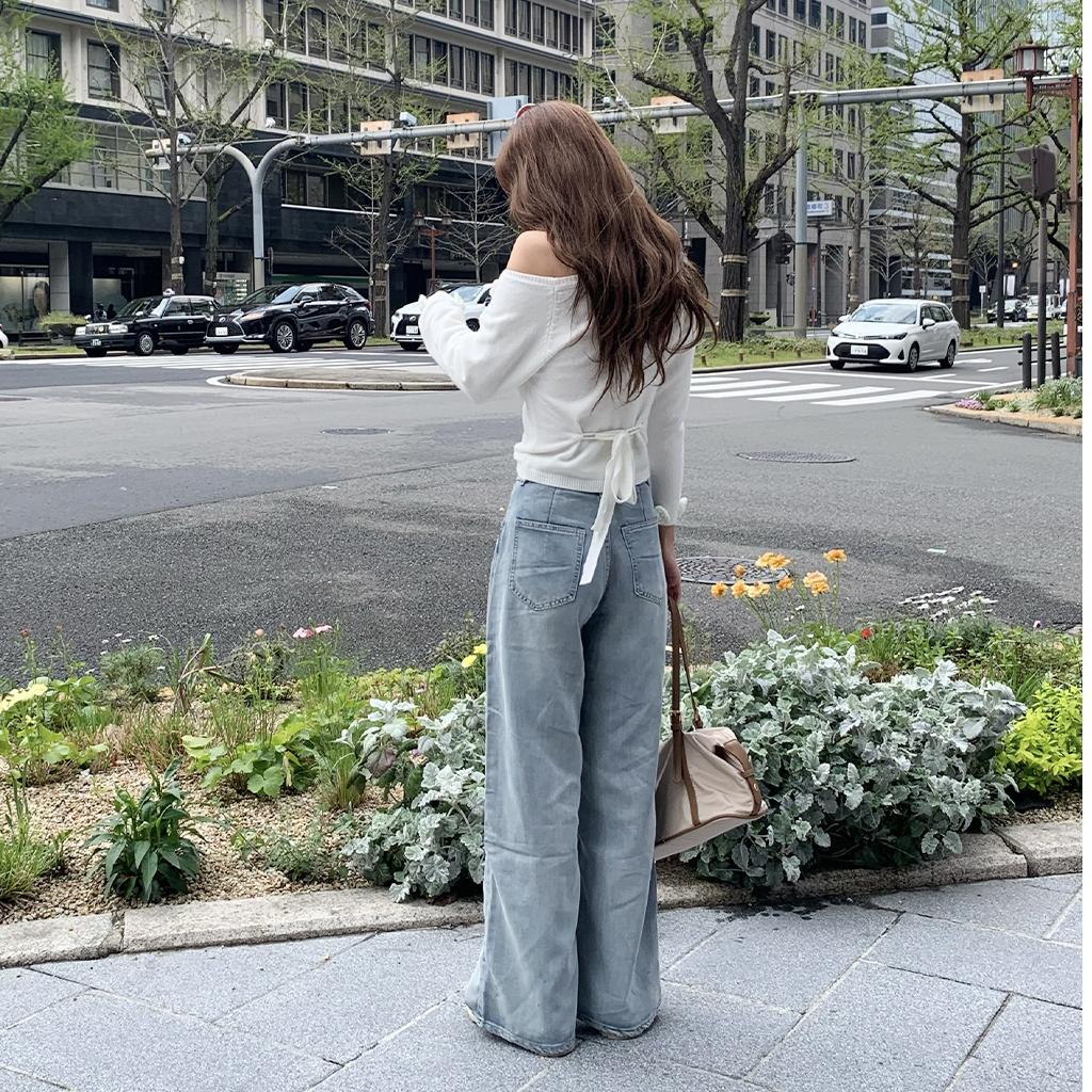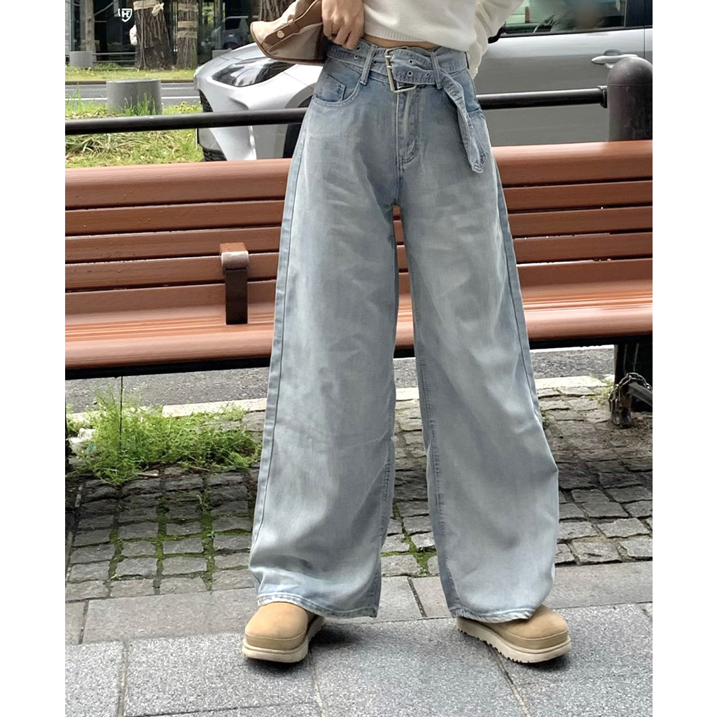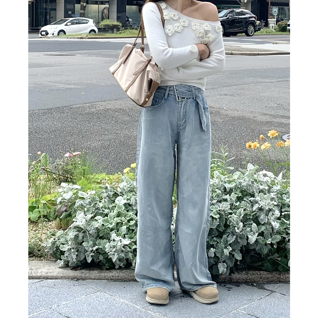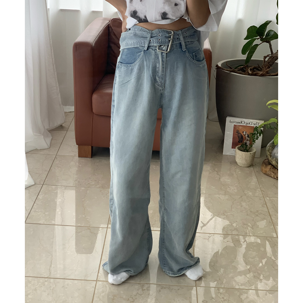 ベルトステッチデニムパンツ
