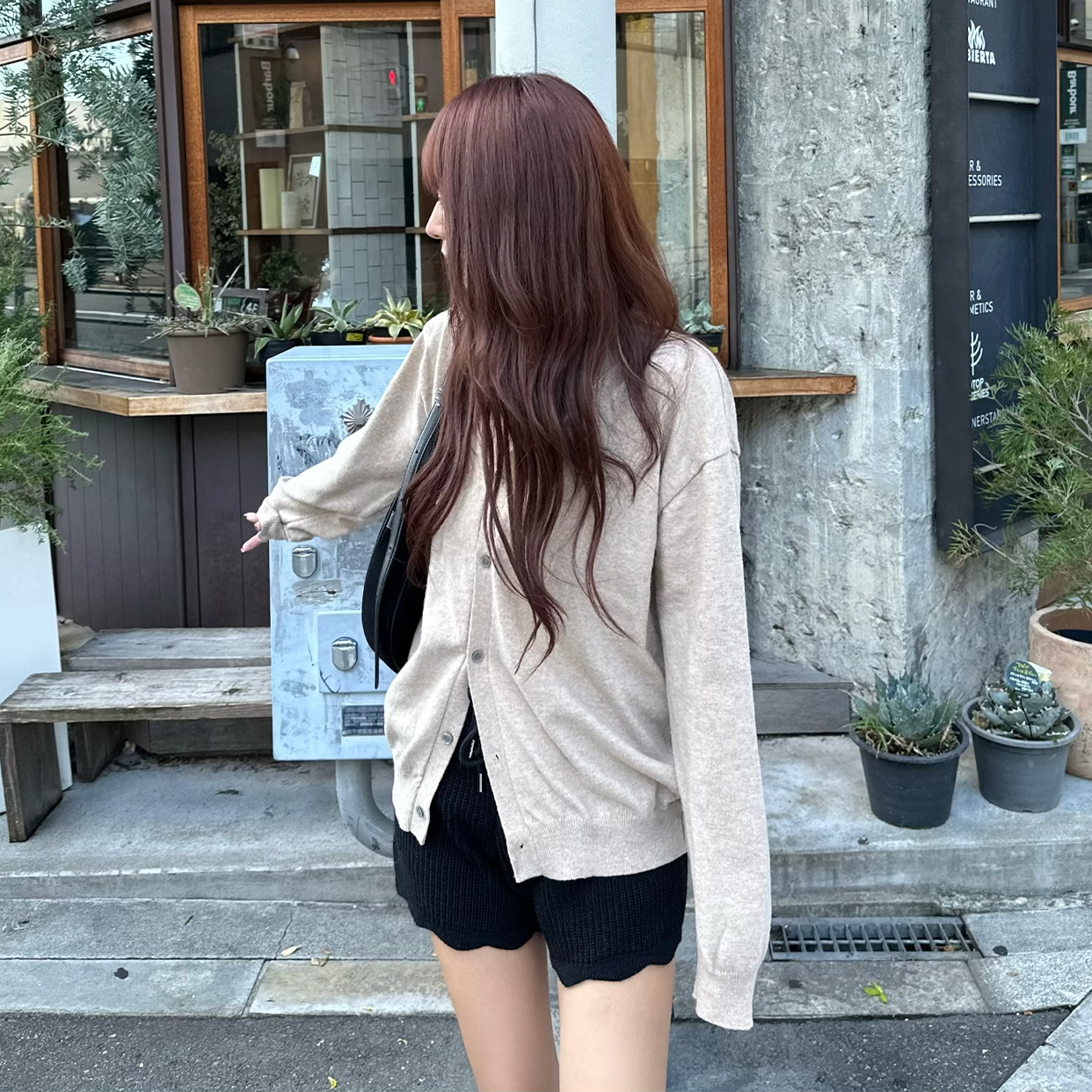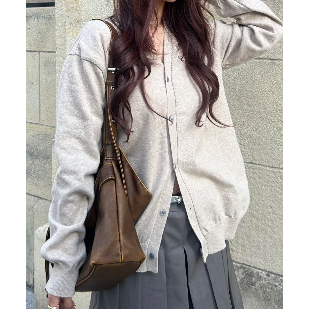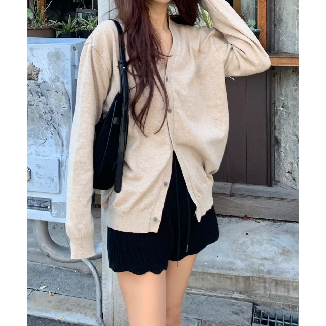 Vネックルーズフィットカーディガン