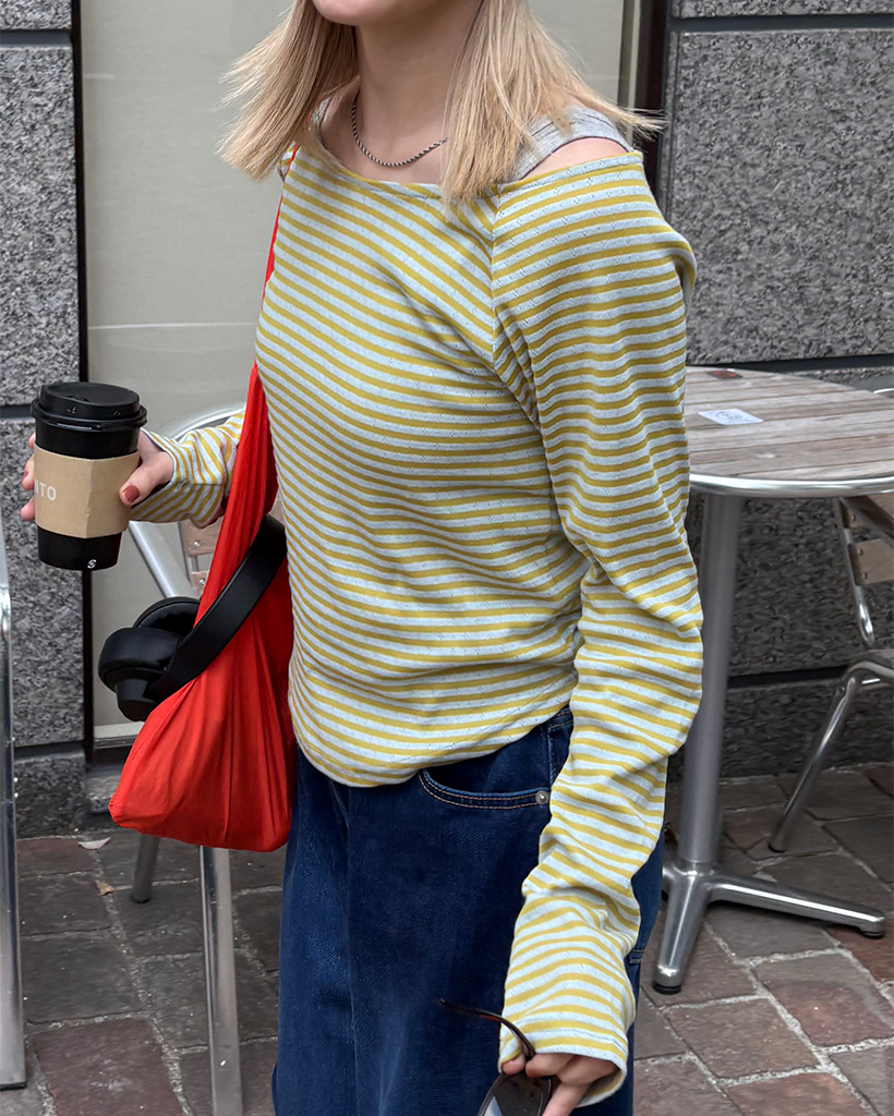 ボートネックボーダーパンチングカットソー
