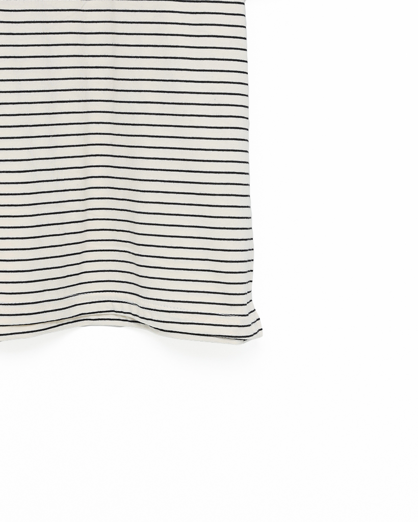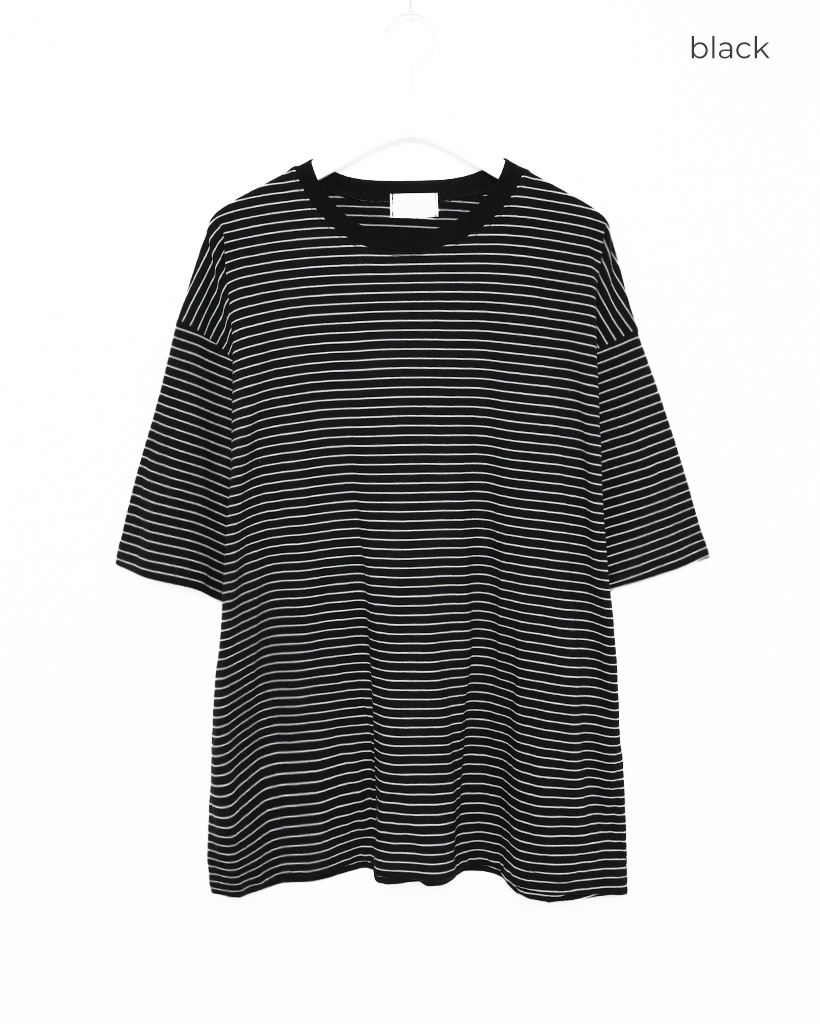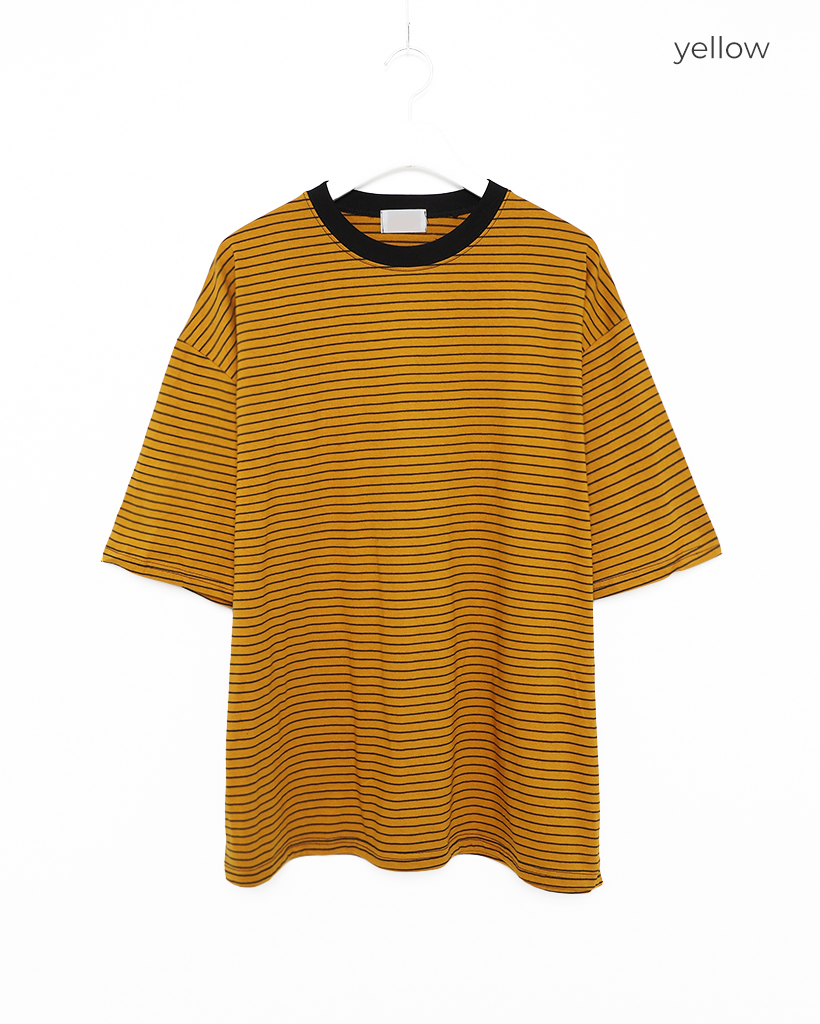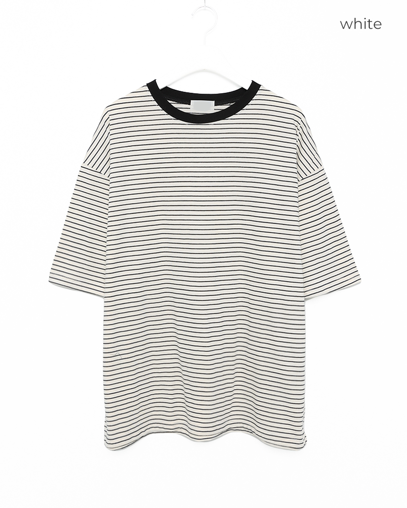 (ユニセックス)ボーダーリンガーネックハーフスリーブT