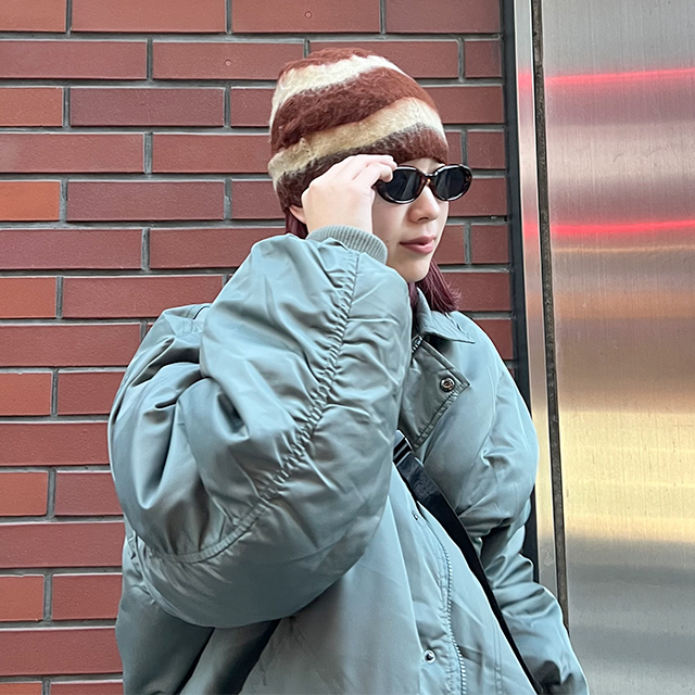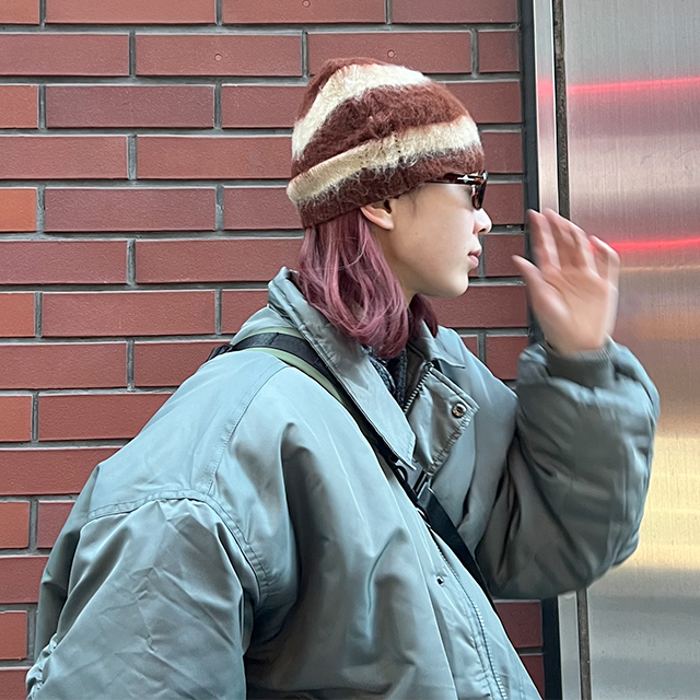 ウェーブモヘアビーニー