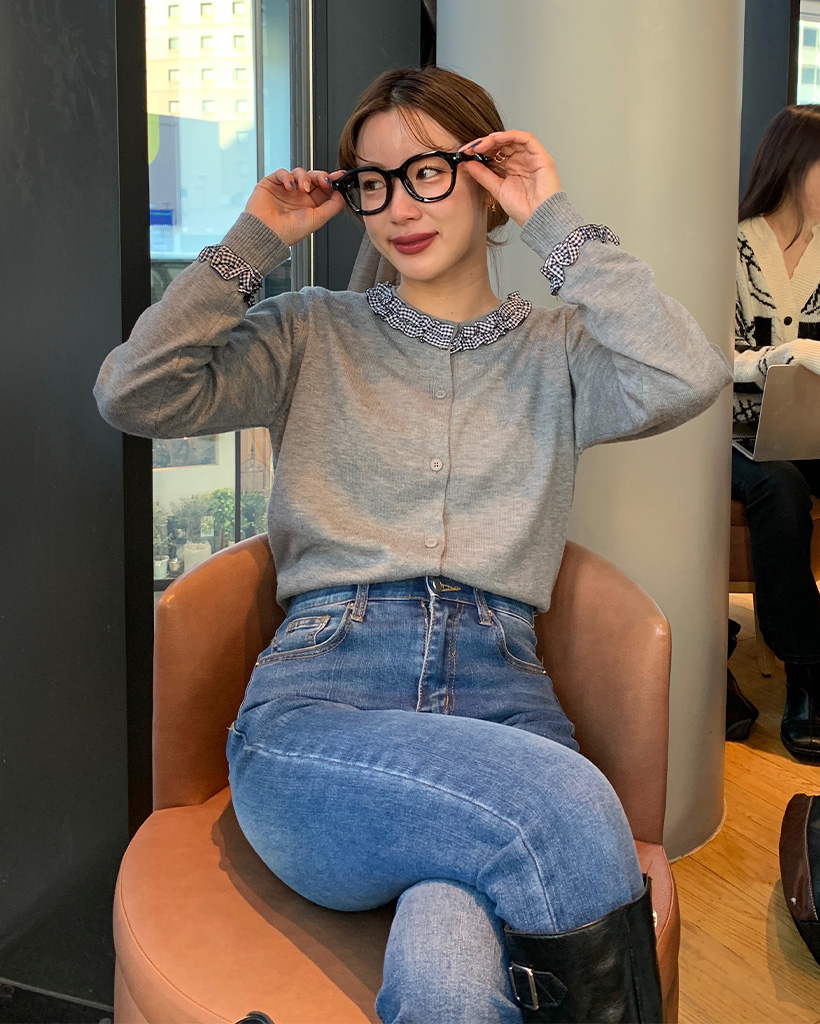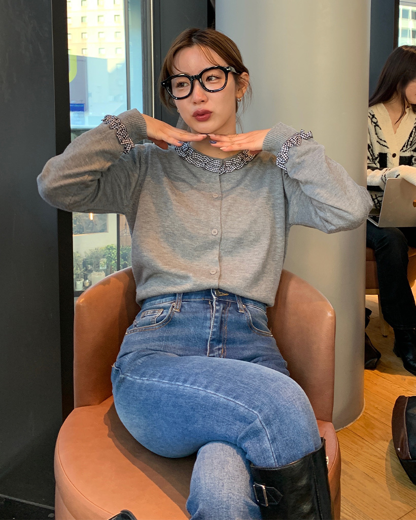ギンガムチェックフリルラインカーディガン