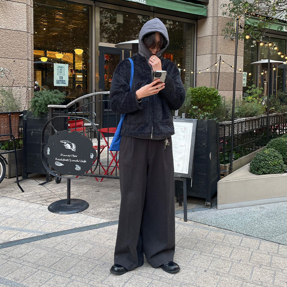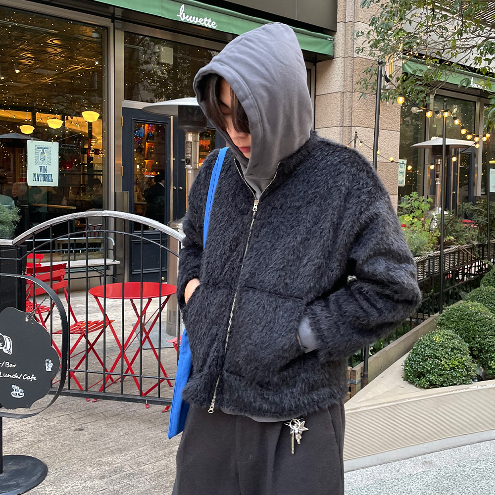 (ユニセックス)シャギーラウンドジップジャケット