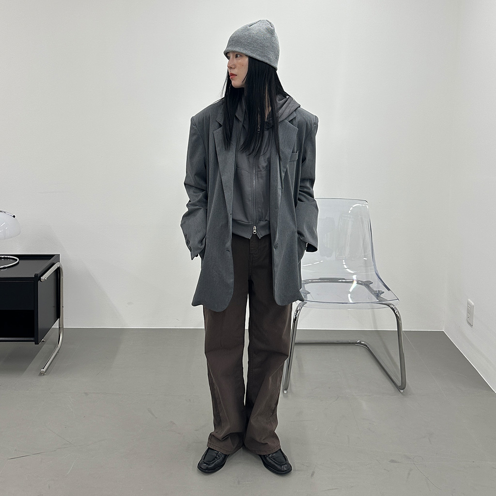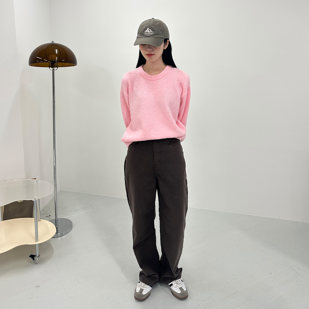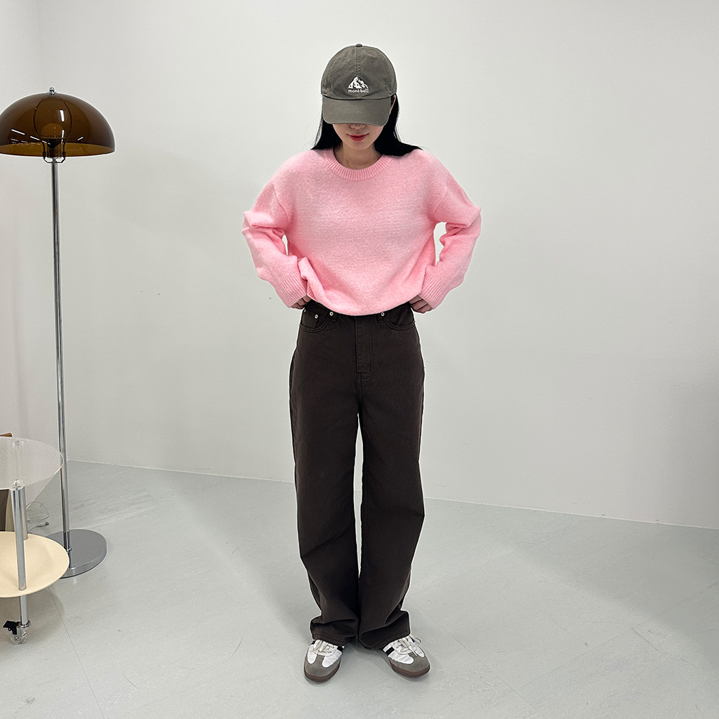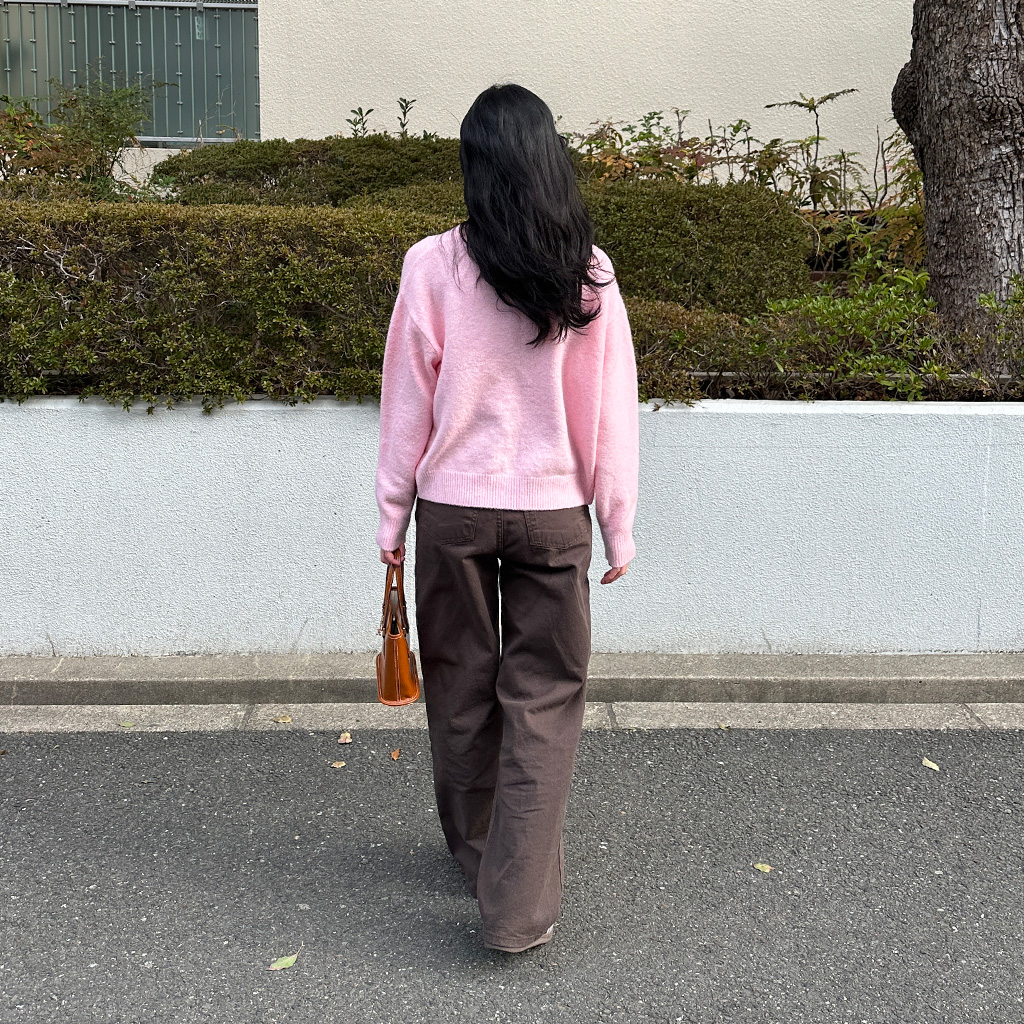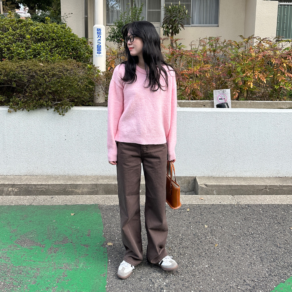 ハイウエストコットンワイドカラーパンツ