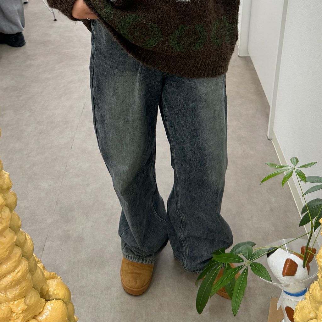 ヴィンテージウォッシュワイドデニムパンツ