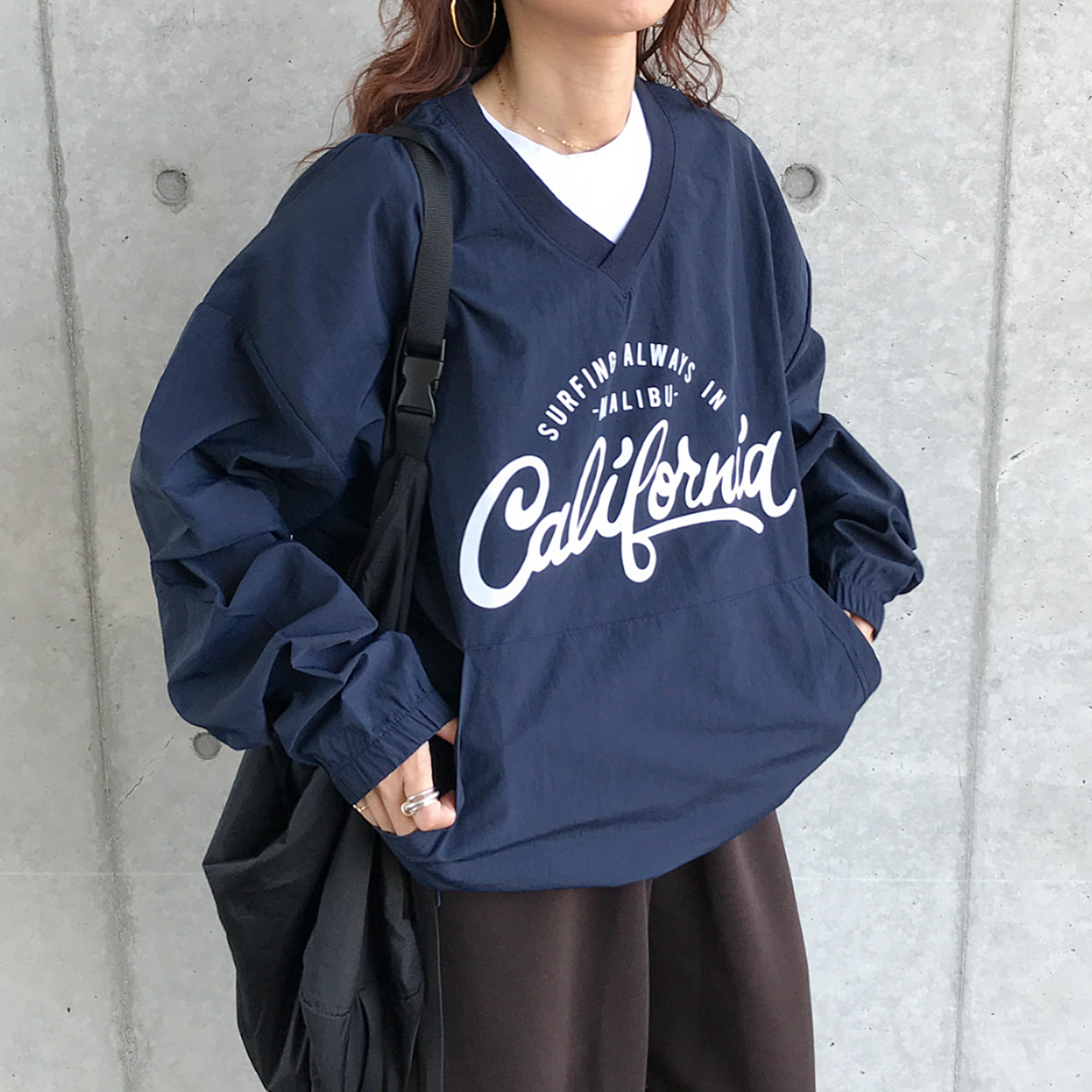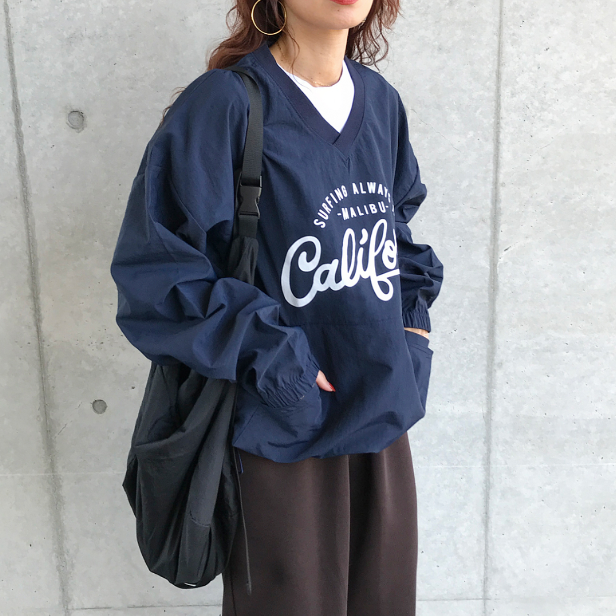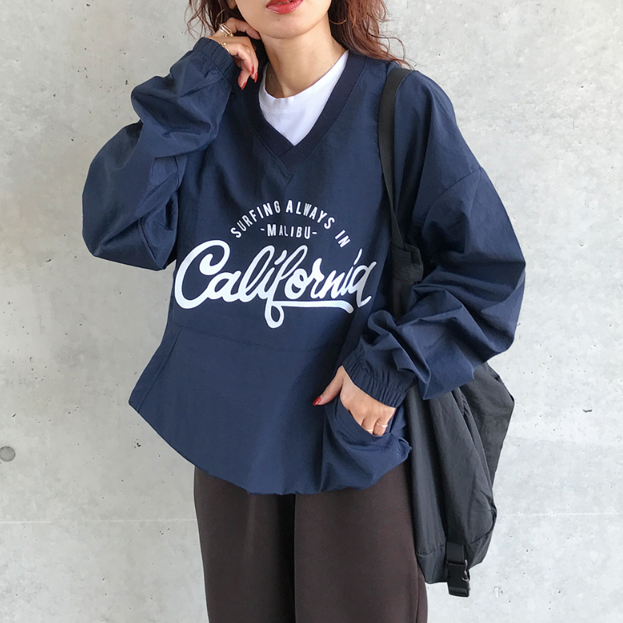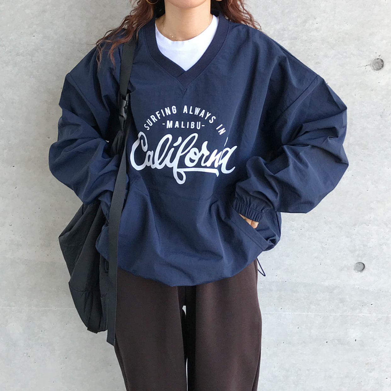 (ユニセックス)ポケットVネックウインドブレーカースウェット