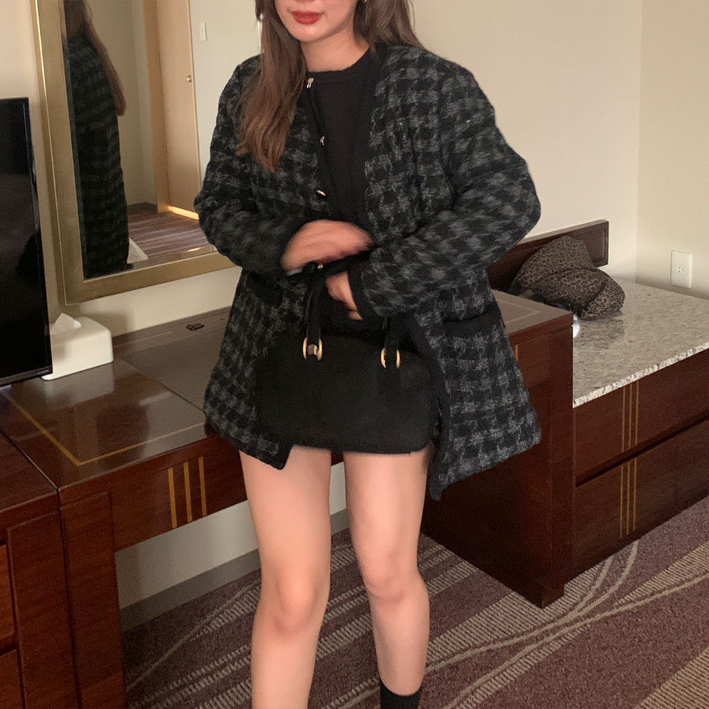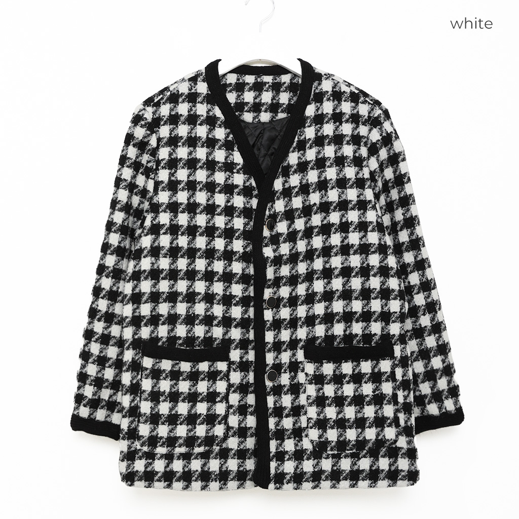 ハウンドトゥースチェックVネックジャケット
