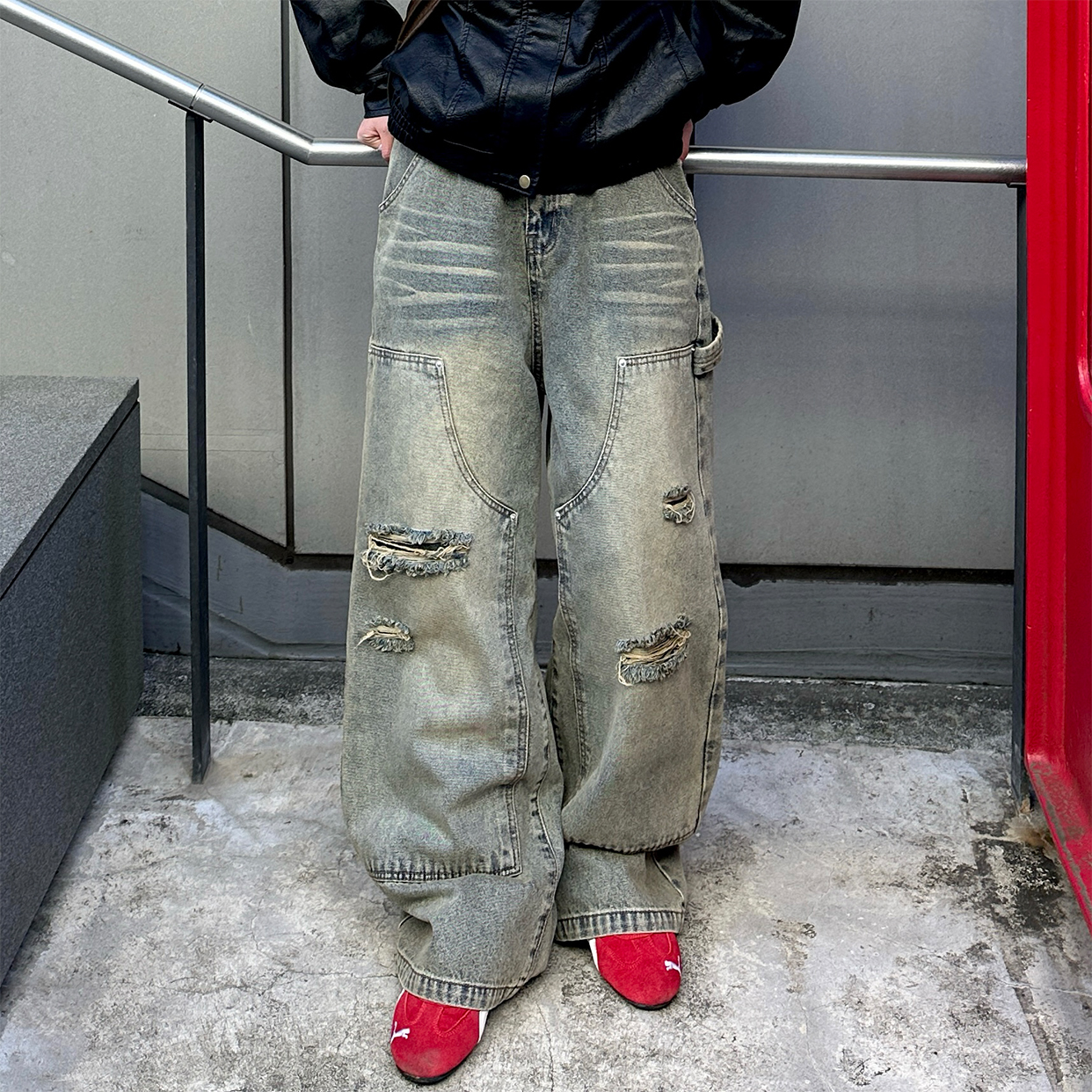 (ユニセックス) ヴィンテージウォッシュデニムパンツ