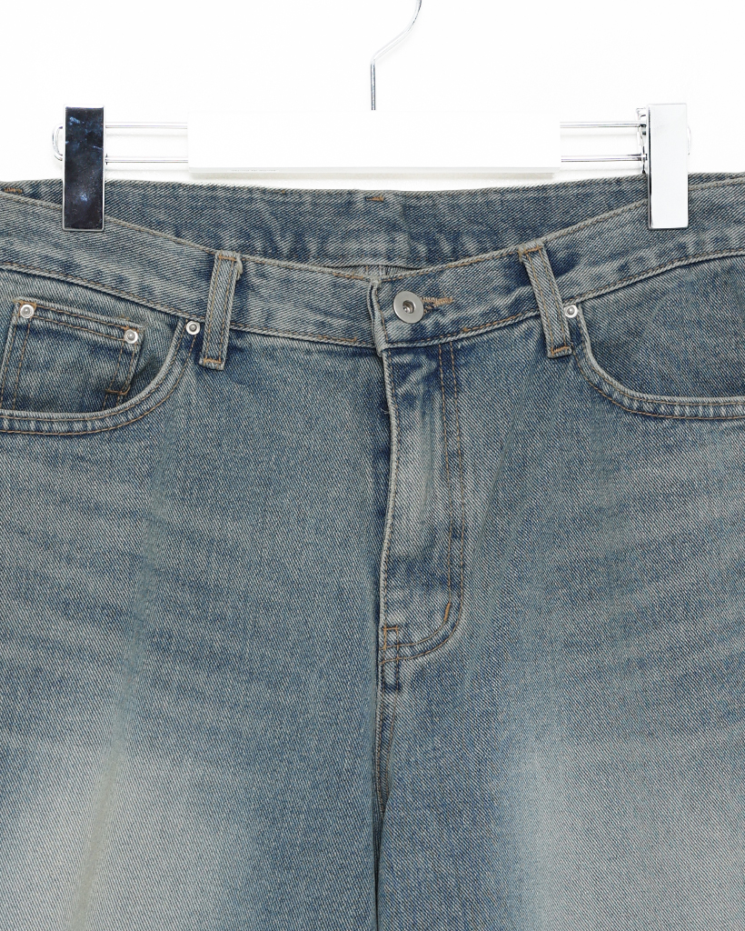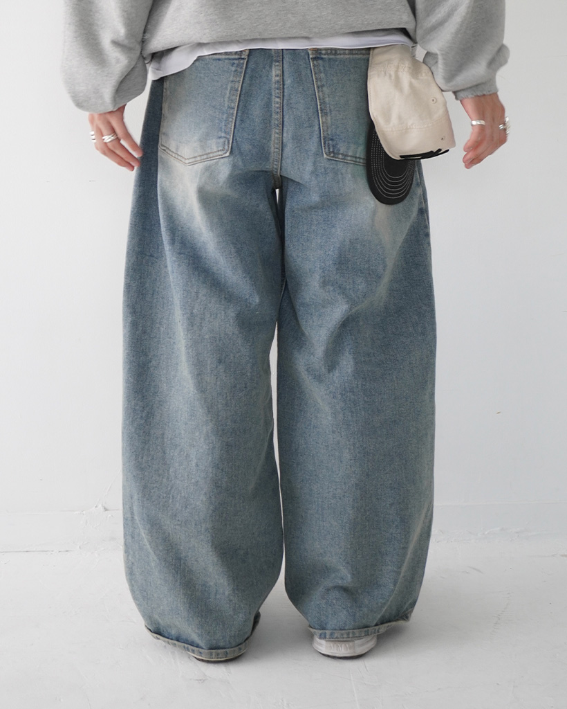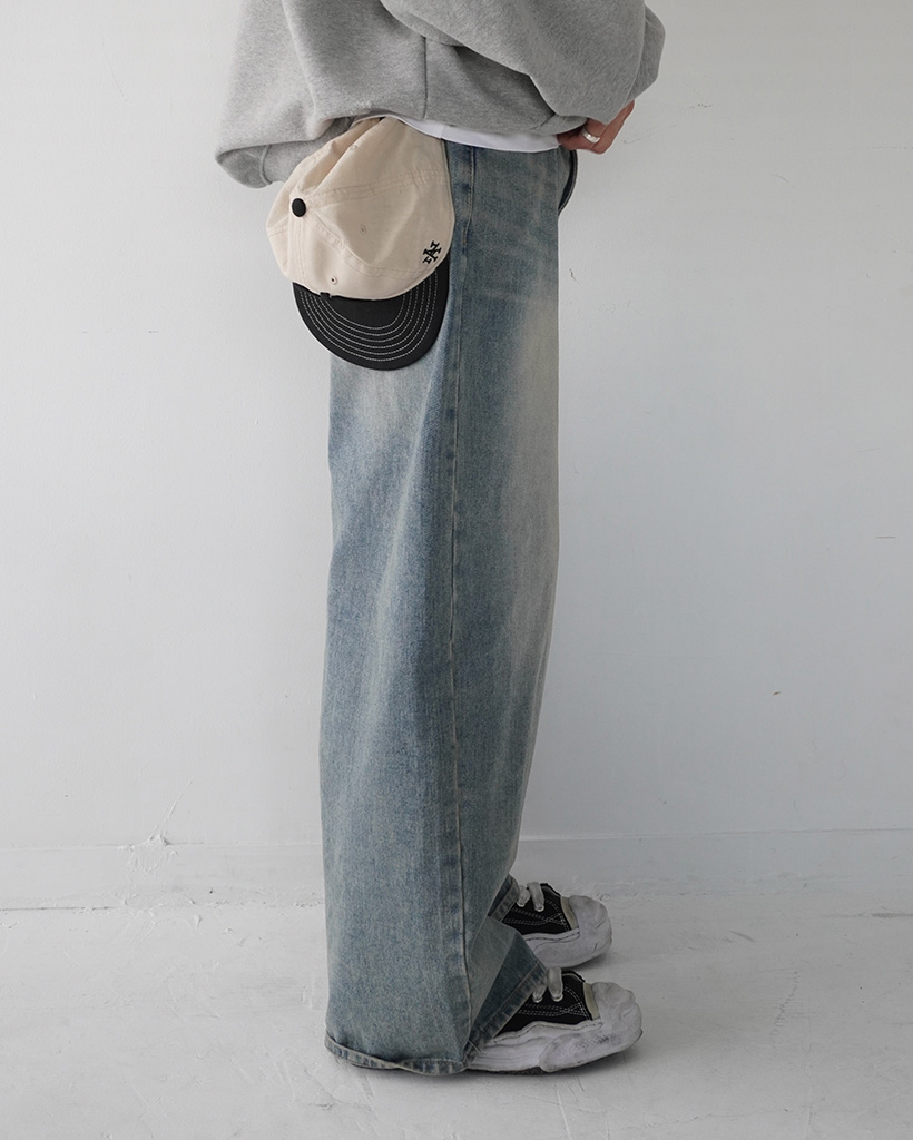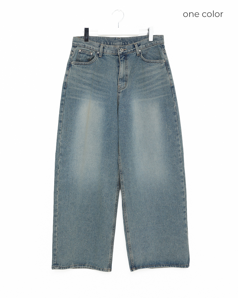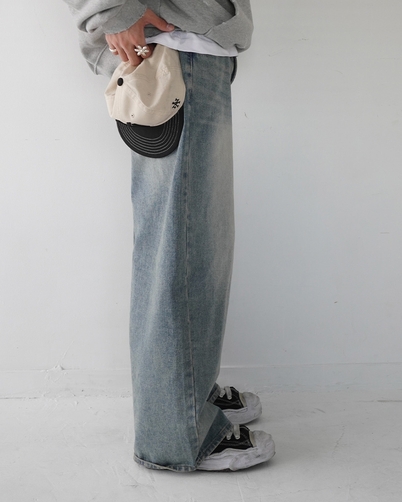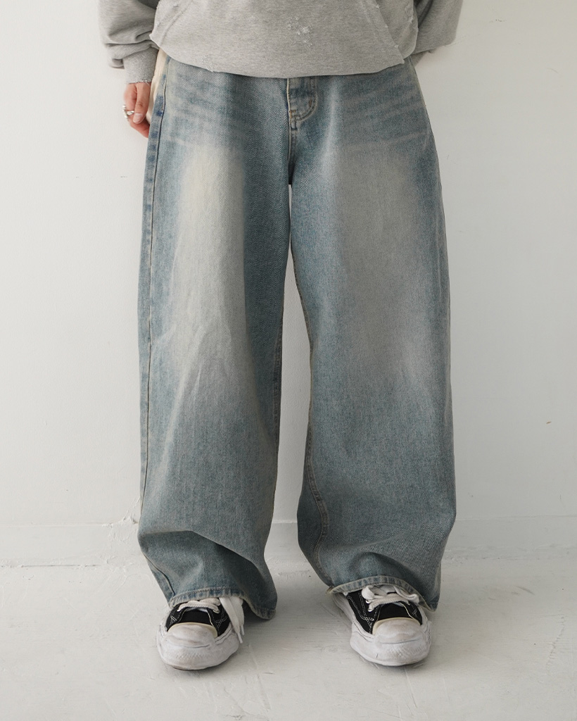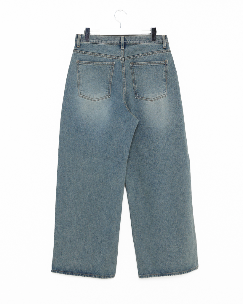 (ユニセックス)ヴィンテージウォッシュデニムワイドパンツ