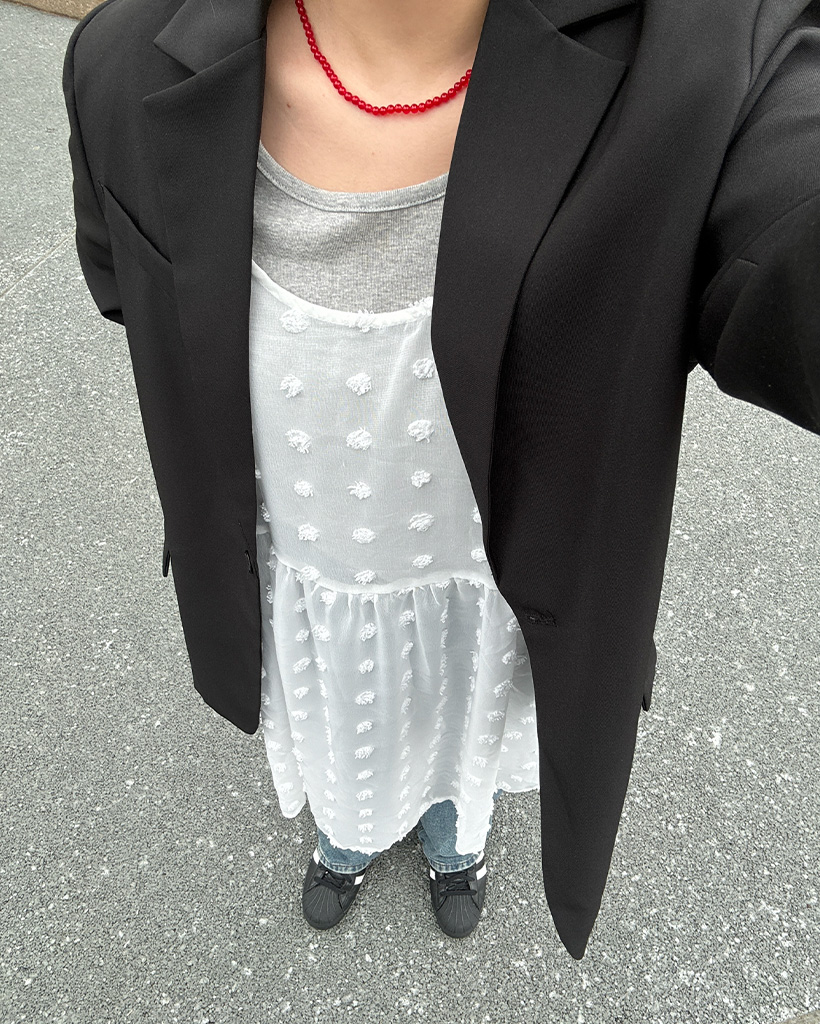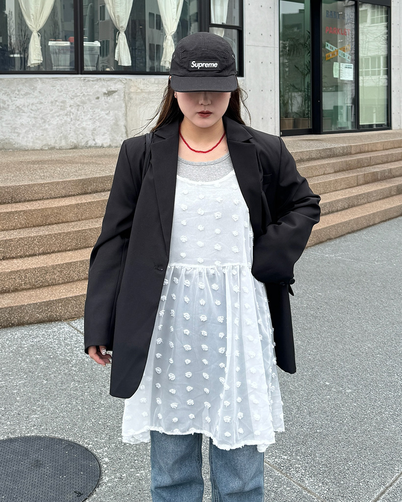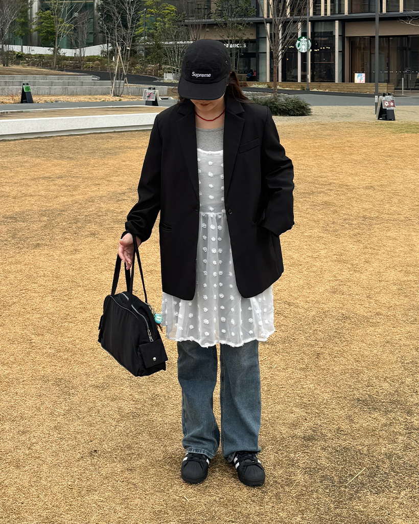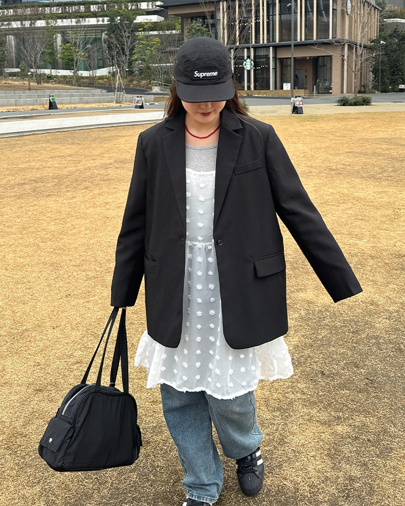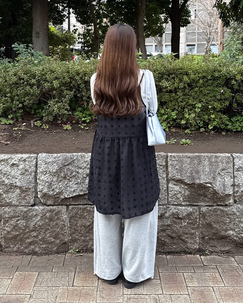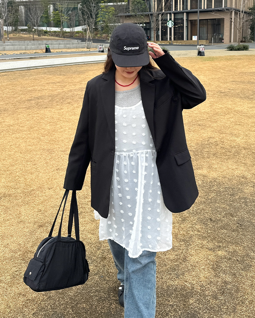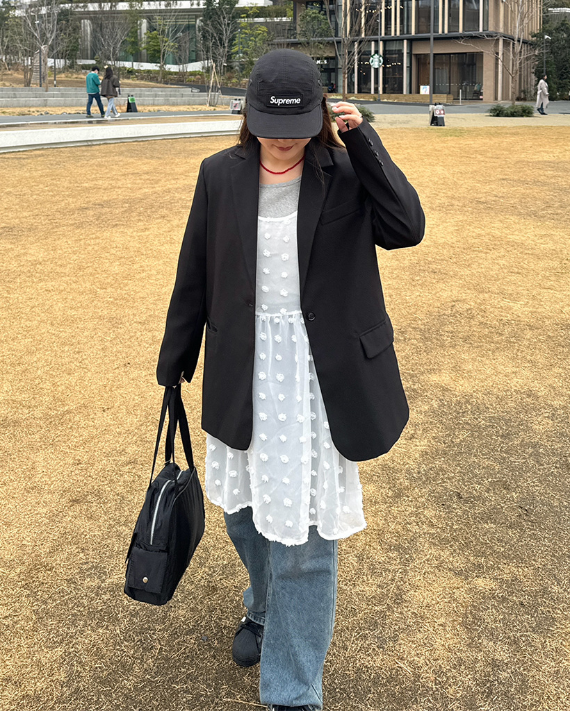 #マユ#157cm#ウェーブ#モノトーン#ユニセックス#カジュアル
