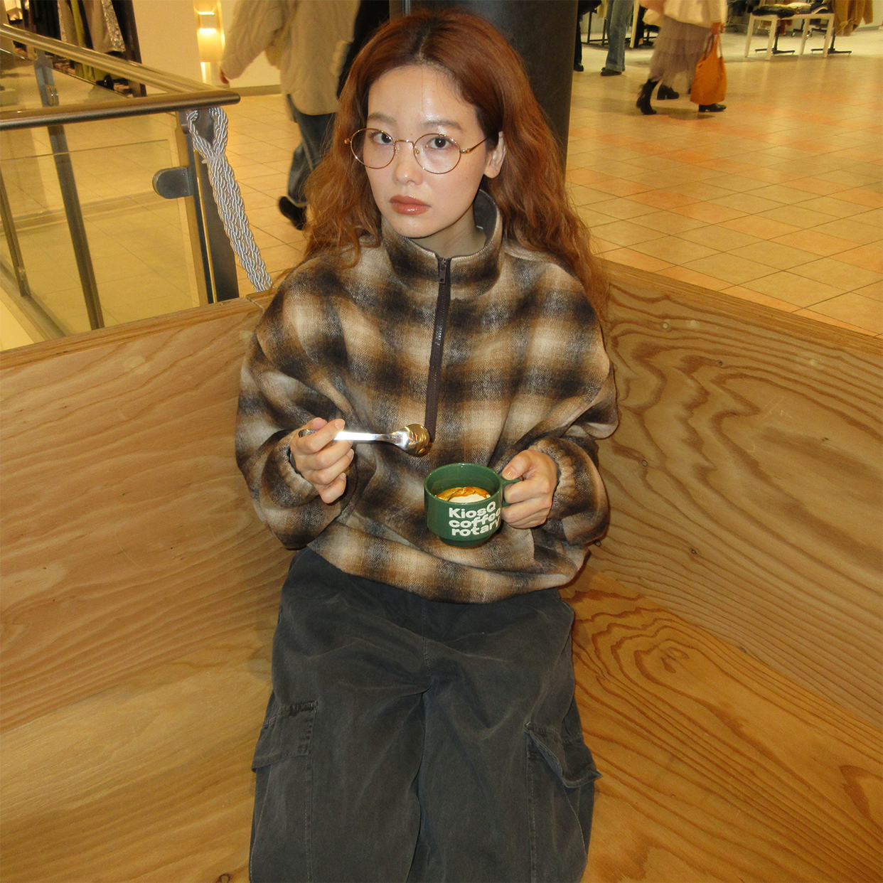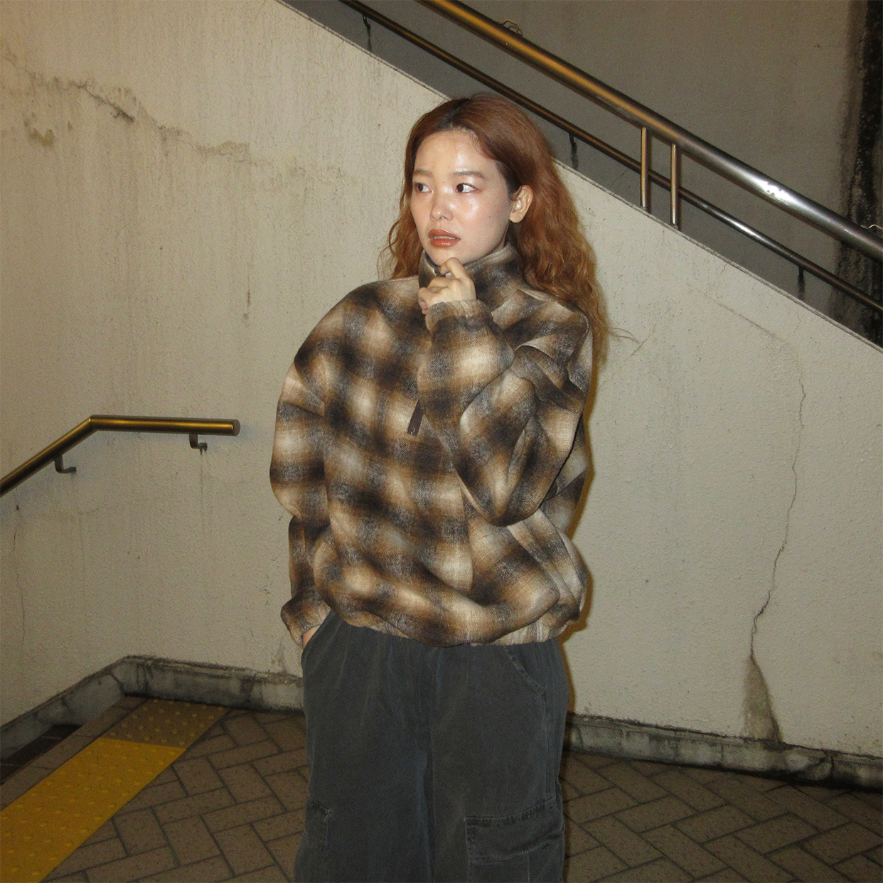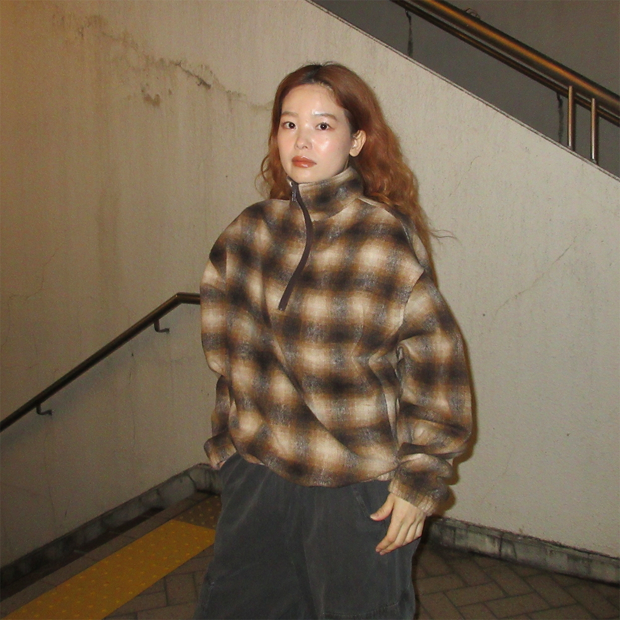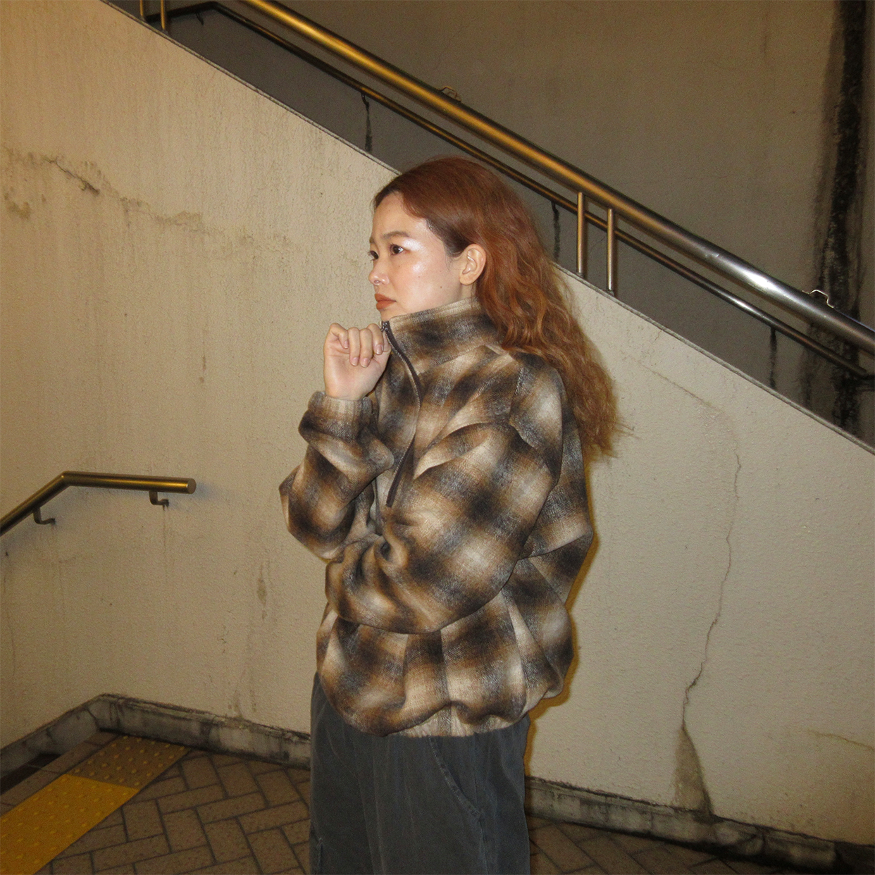 (ユニセックス) オンブレチェッククロップドジップアップ