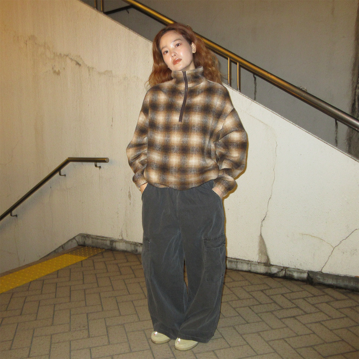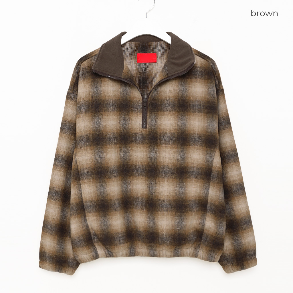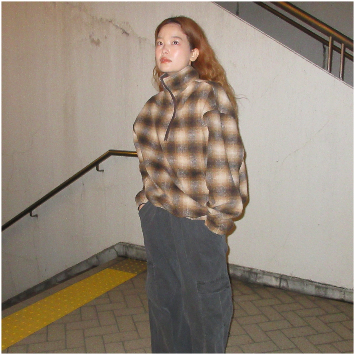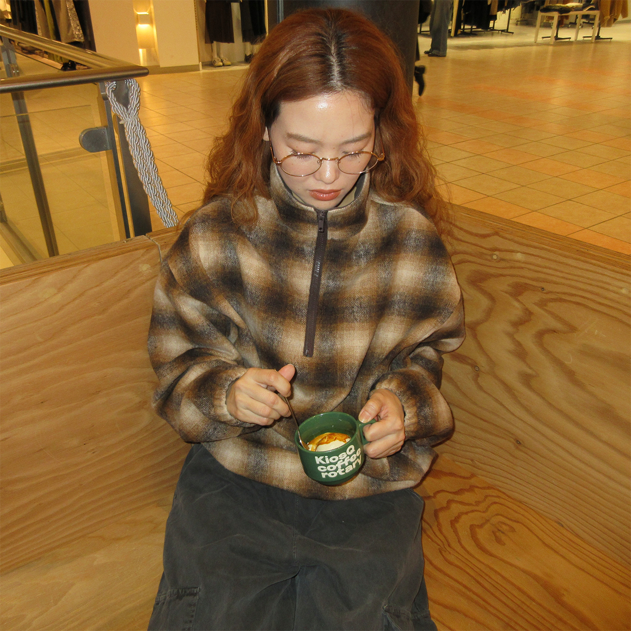 (ユニセックス) オンブレチェッククロップドジップアップ