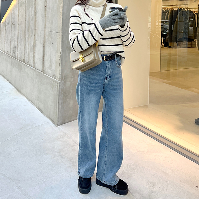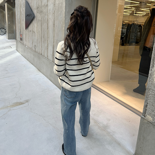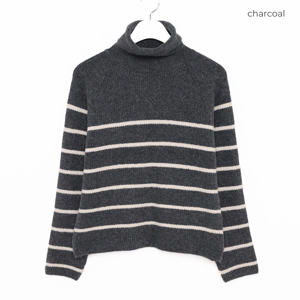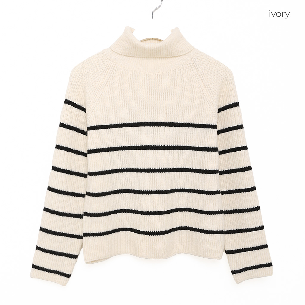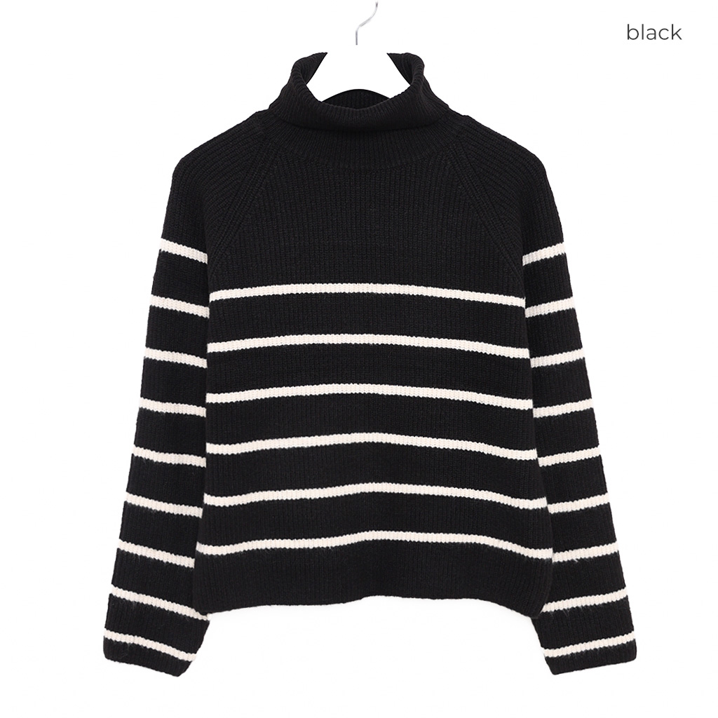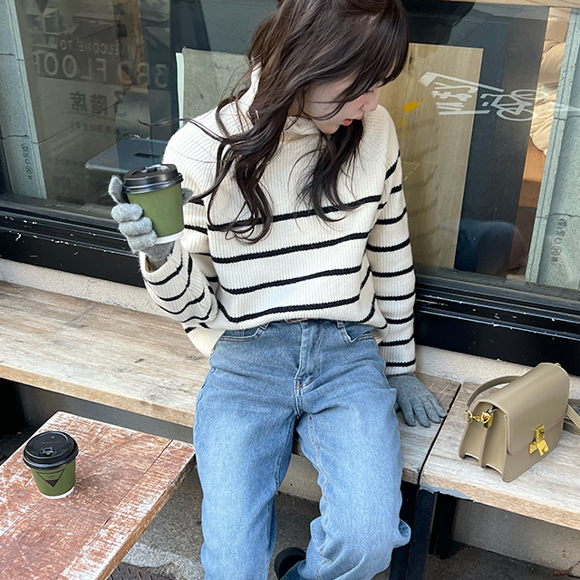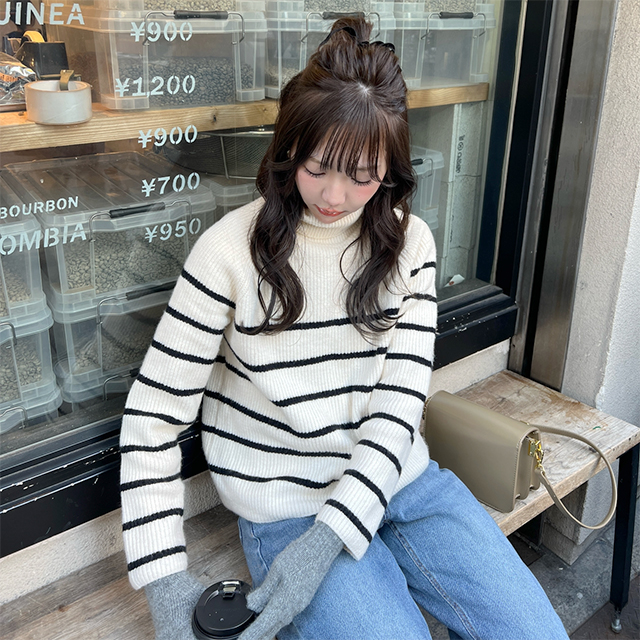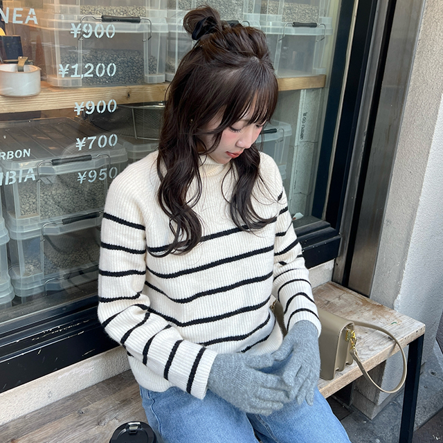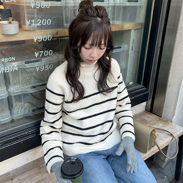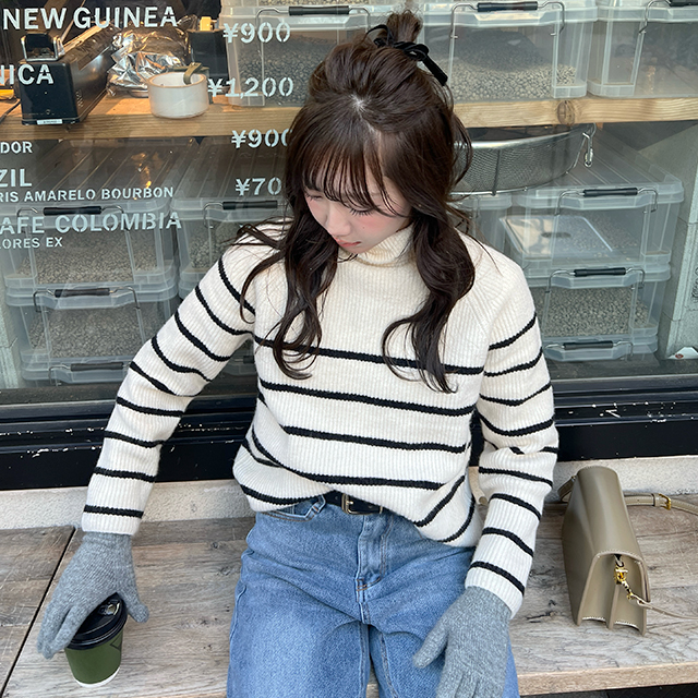 ボーダータートルネックニット
