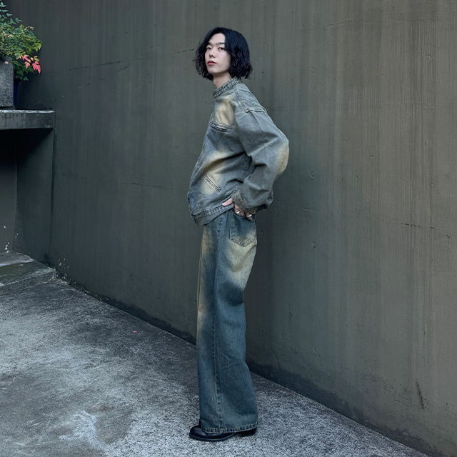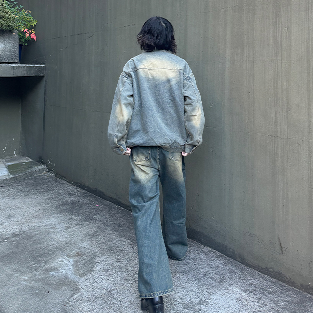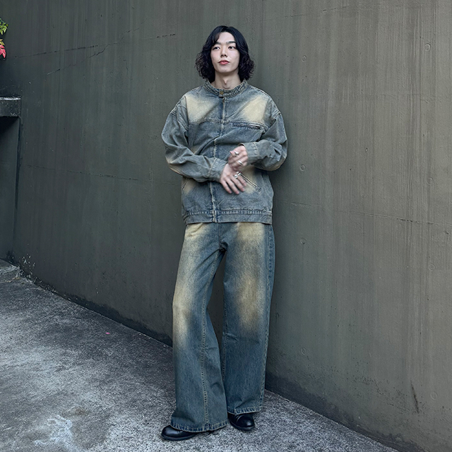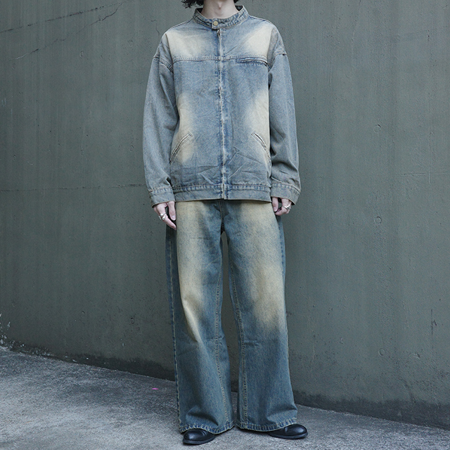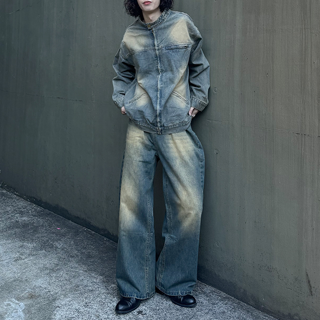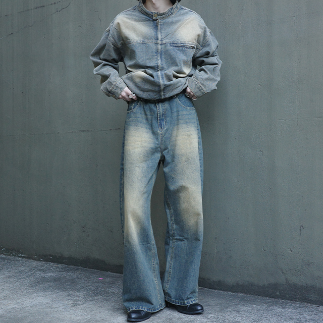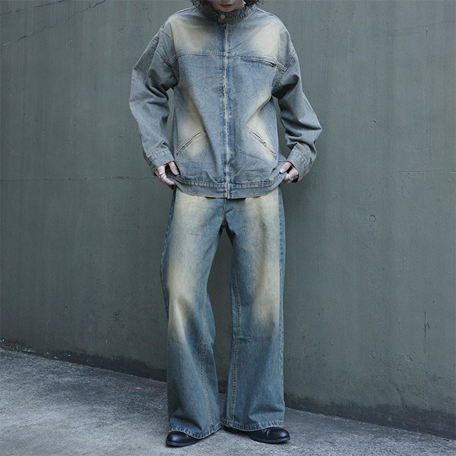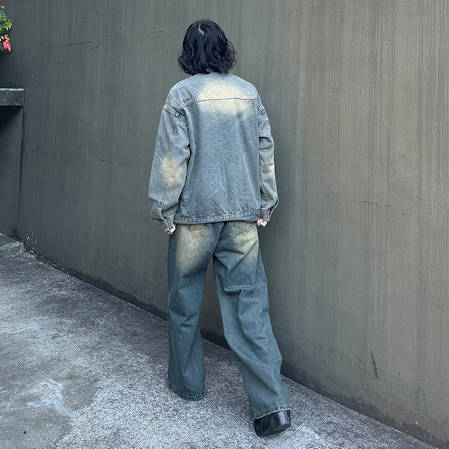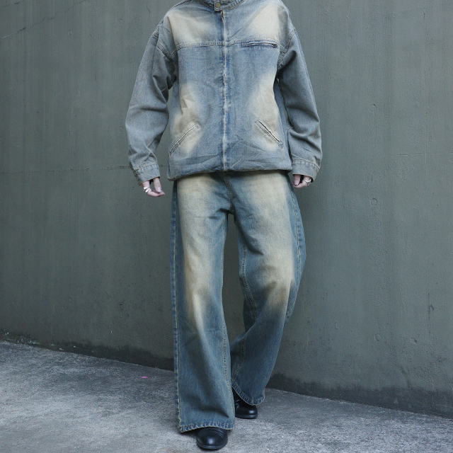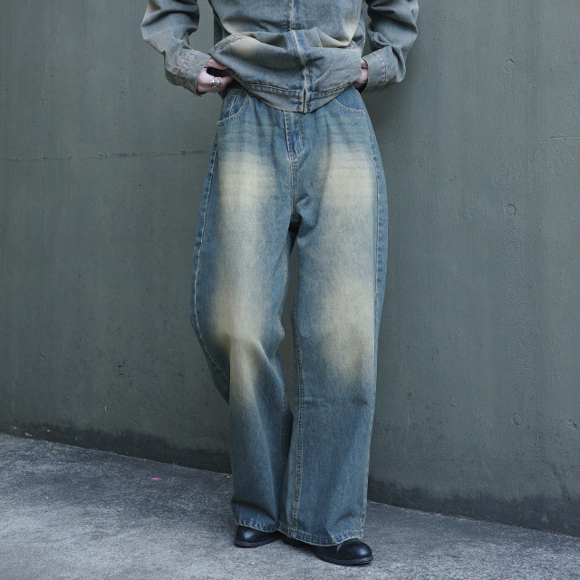 (ユニセックス)ウォッシュワイドデニムパンツ