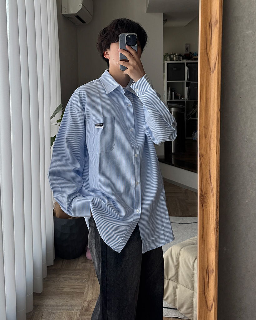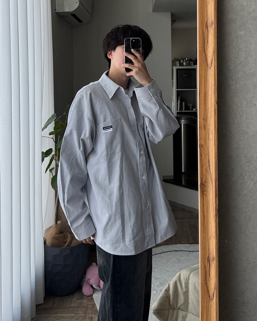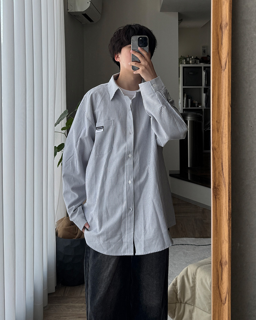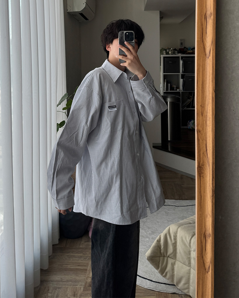 オックスフォードストライプパッチシャツ