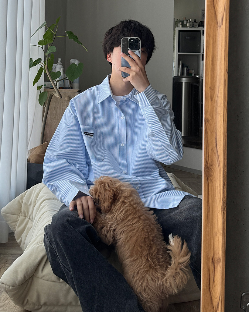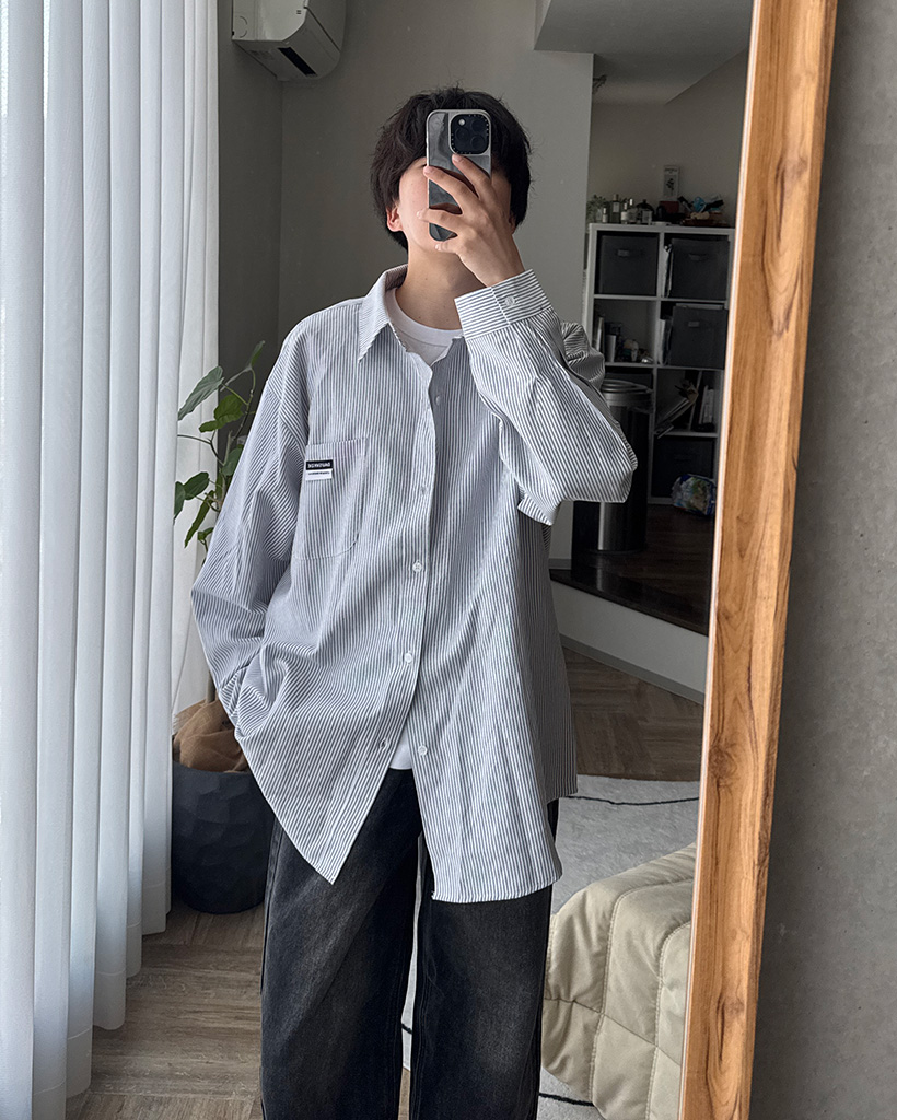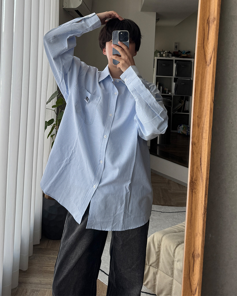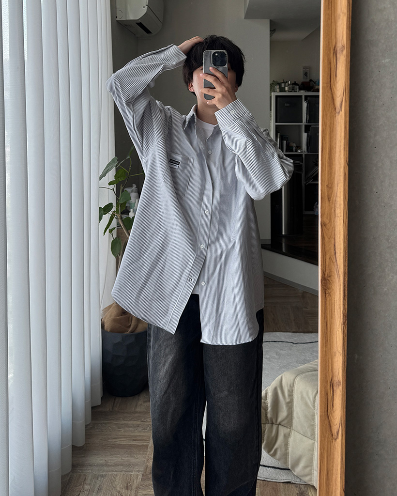 オックスフォードストライプパッチシャツ
