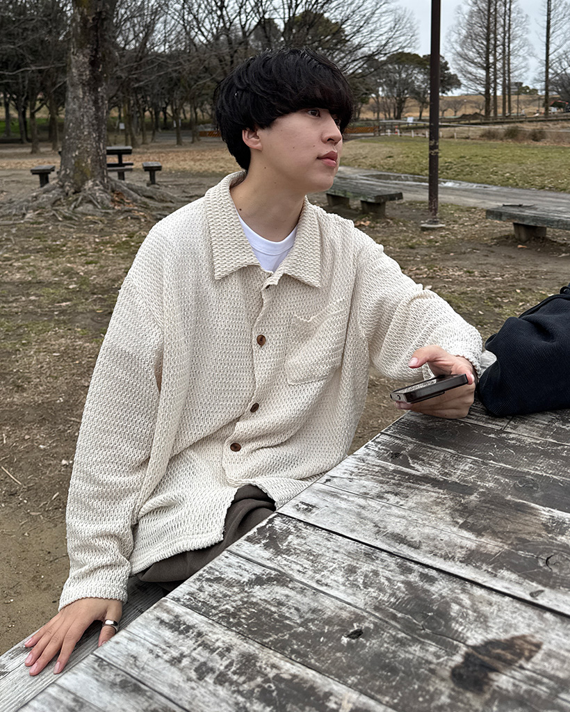 (ユニセックス)メッシュカラーカーディガン